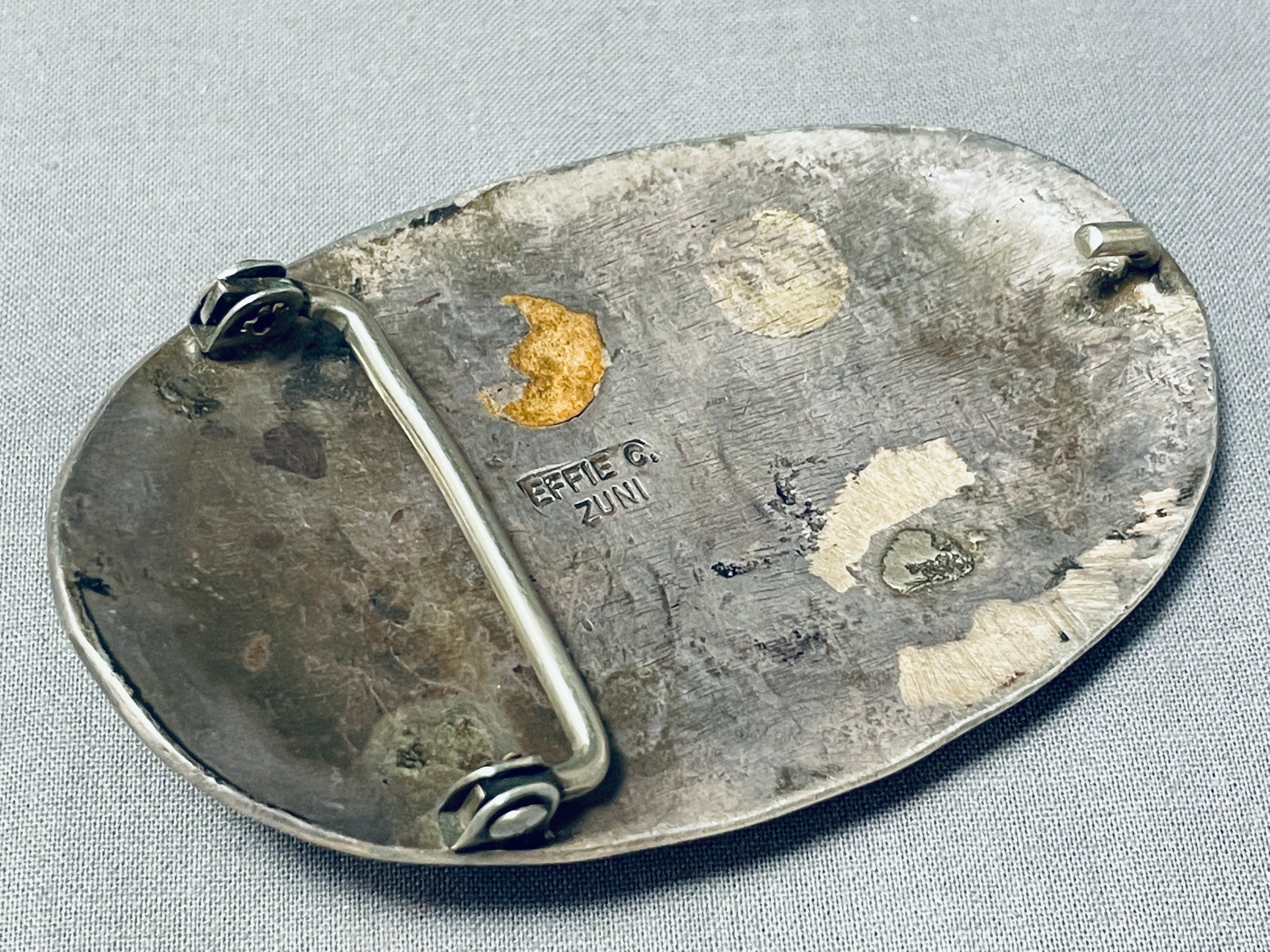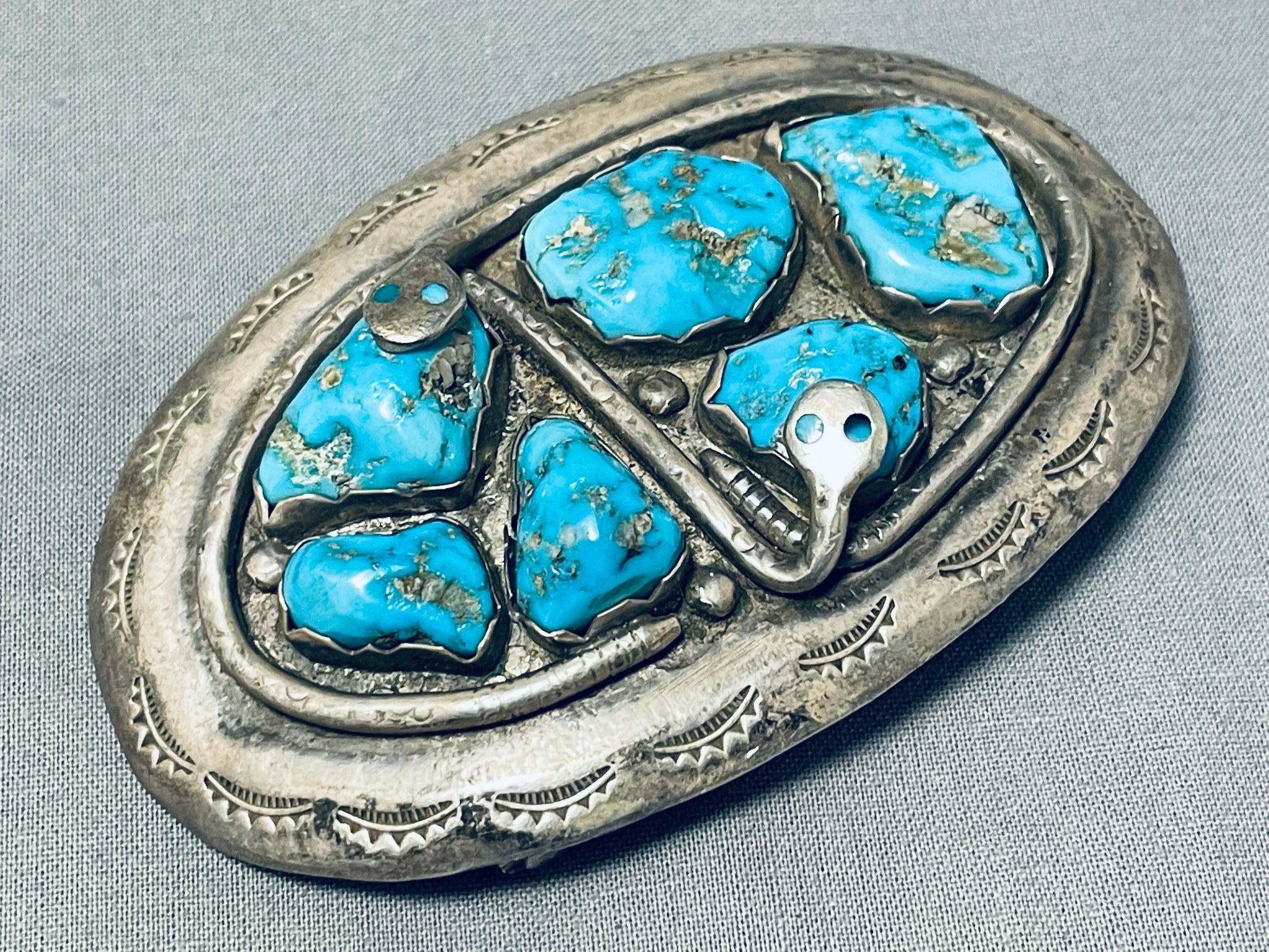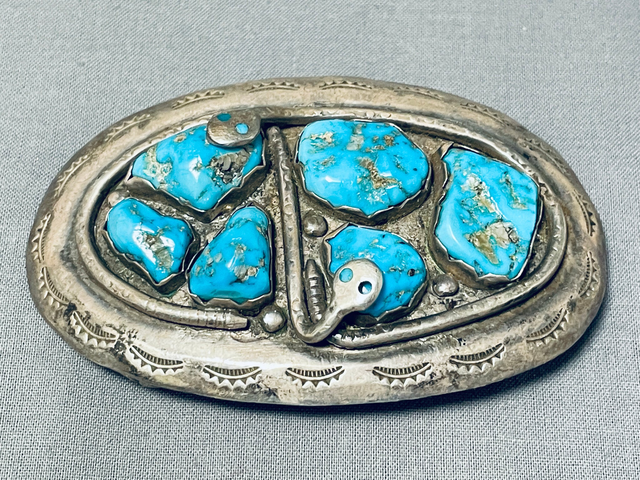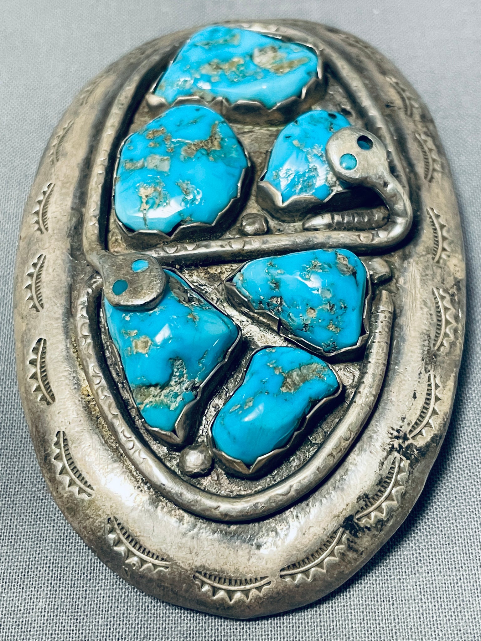Effie Calavaza Outstanding Vintage Native American Zuni Morenci Turquoise Sterling Silver Buckle