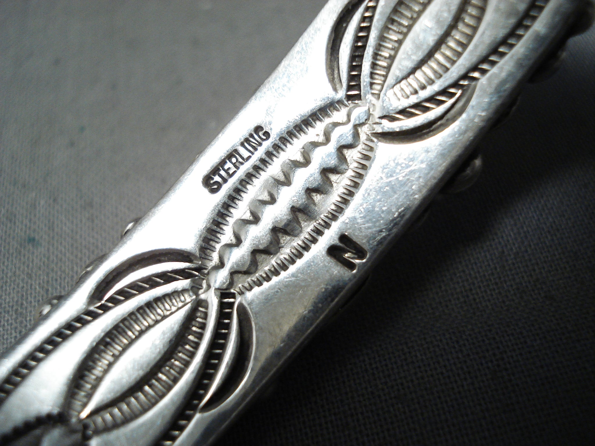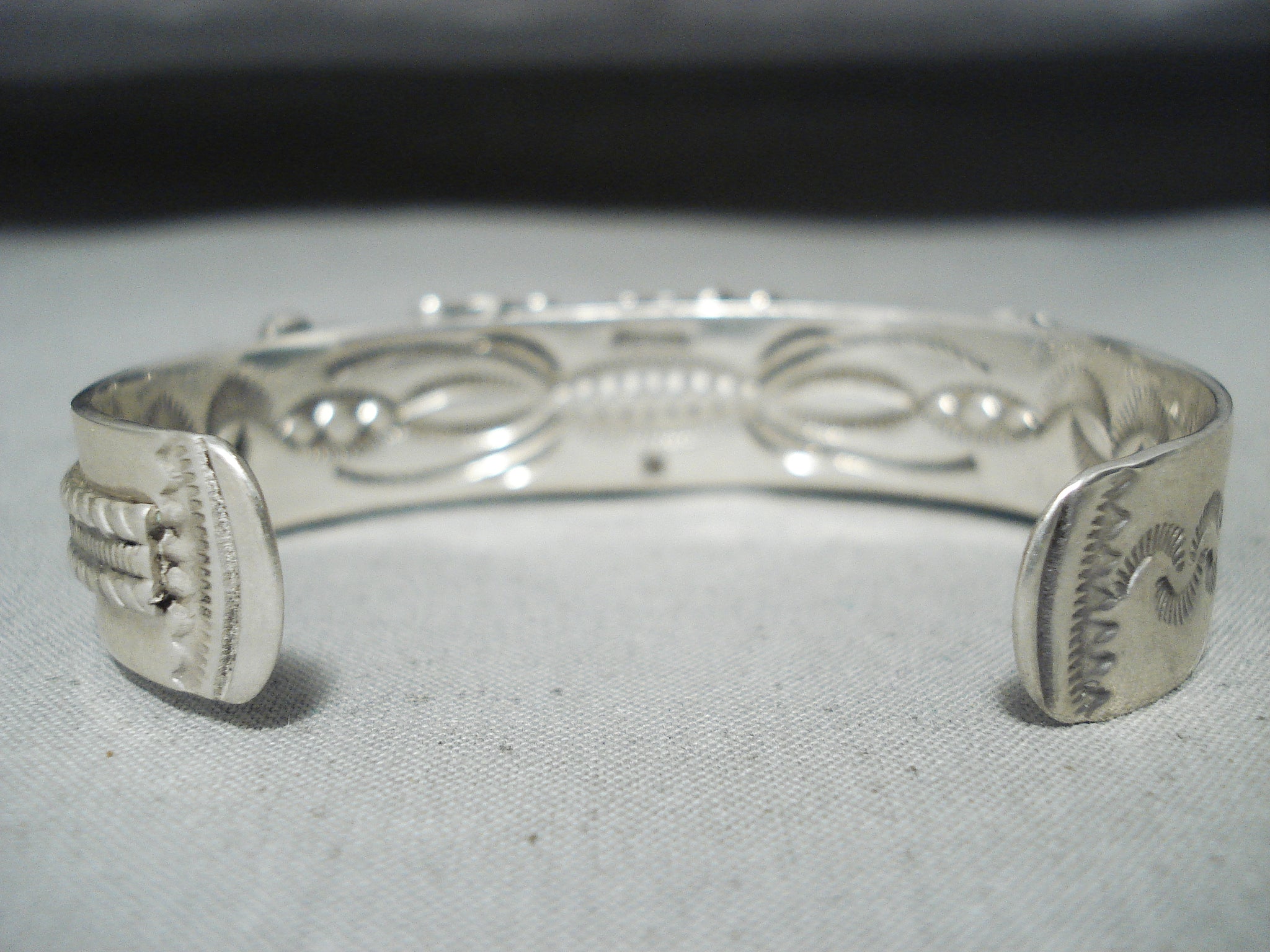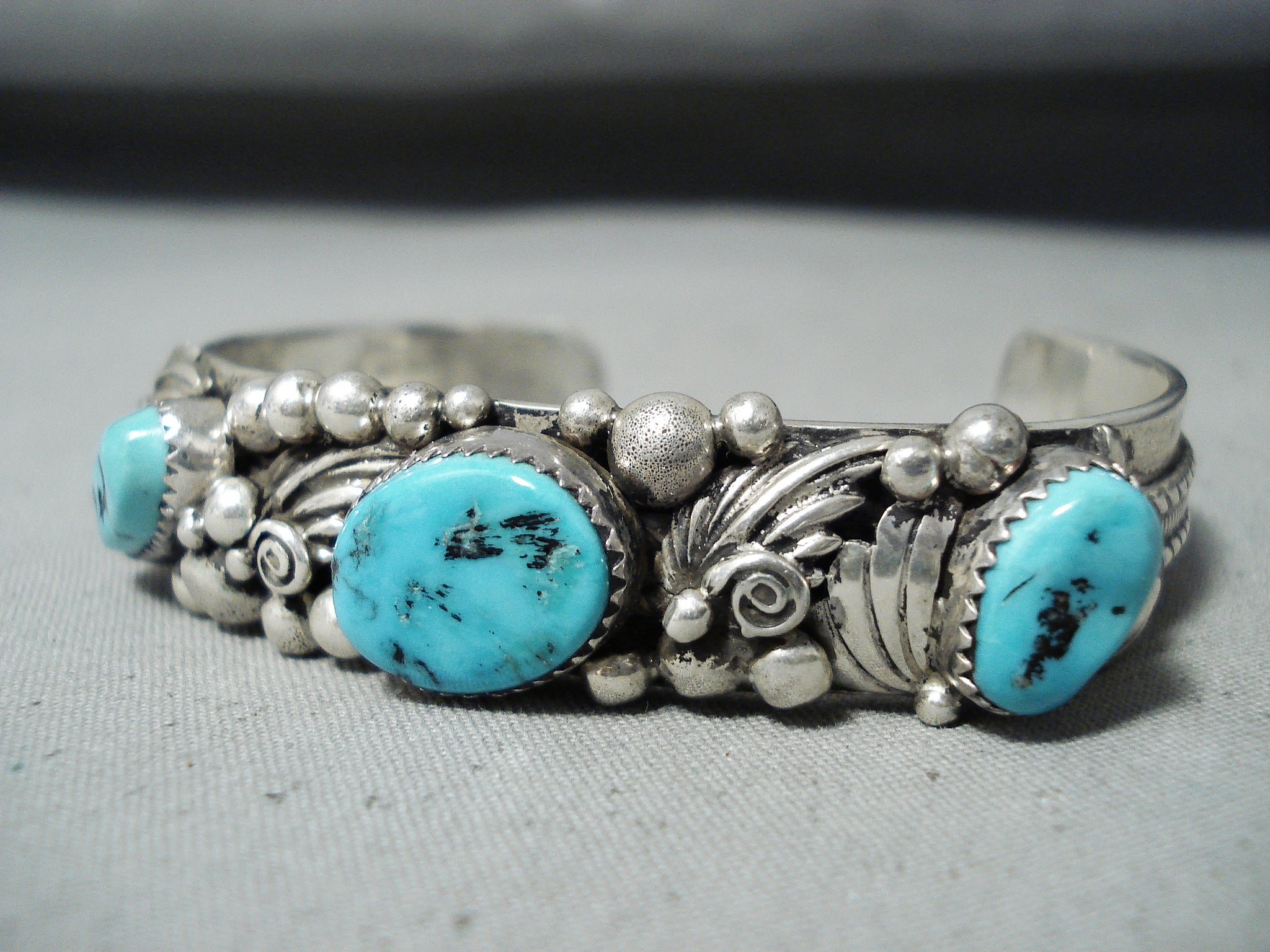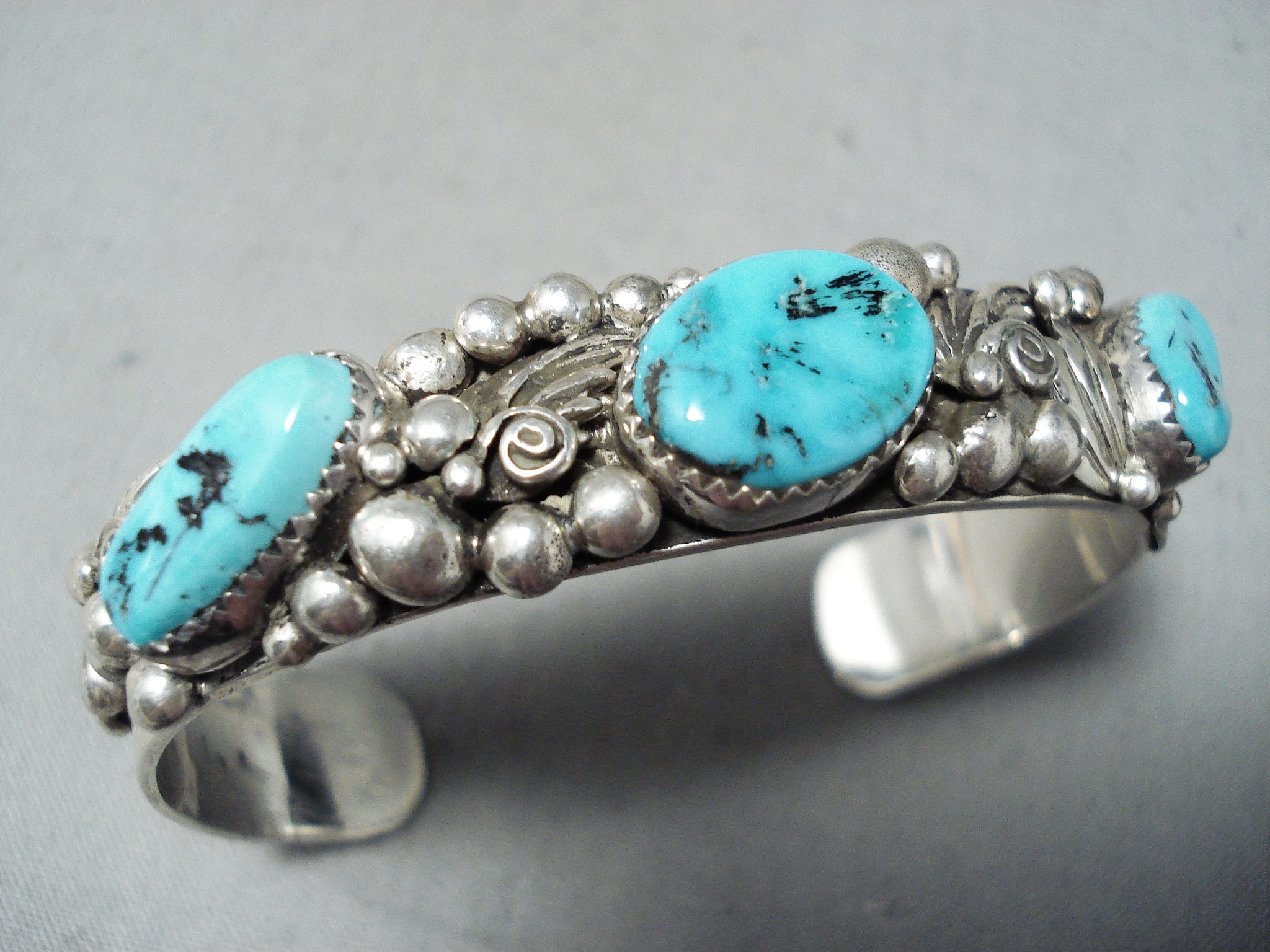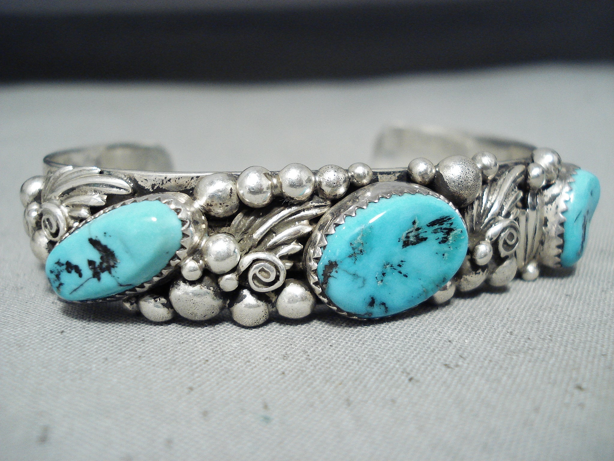 Elaborate Vintage Native American Navajo Morenci Turquoise Sterling Silver Bracelet Signed