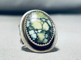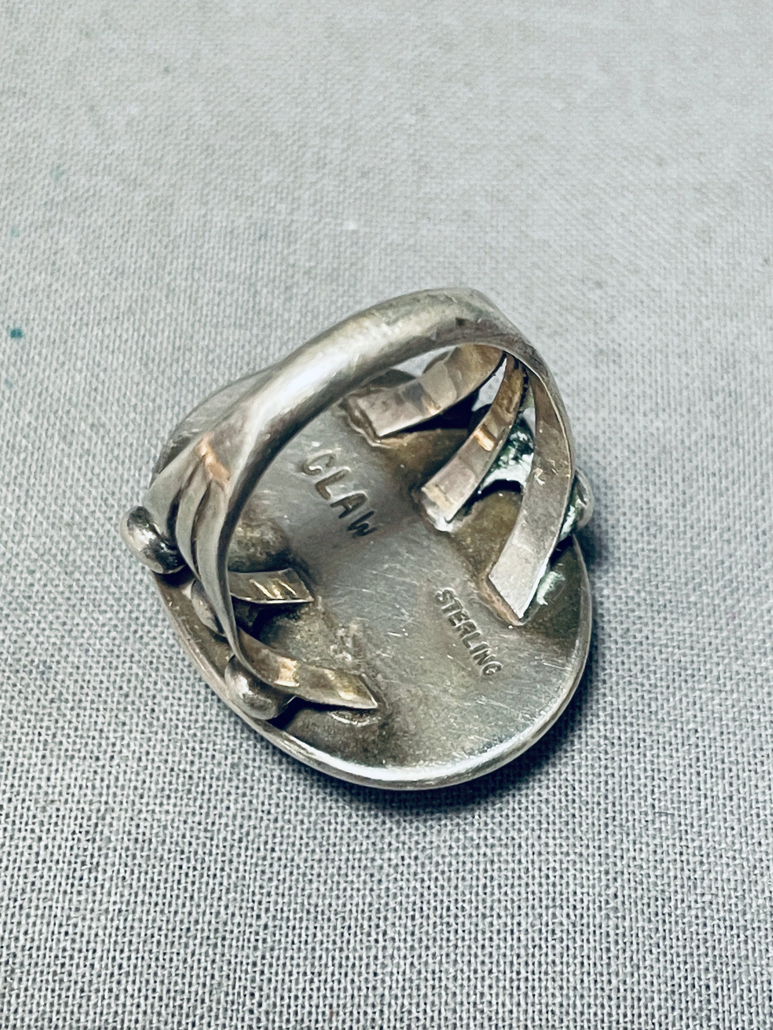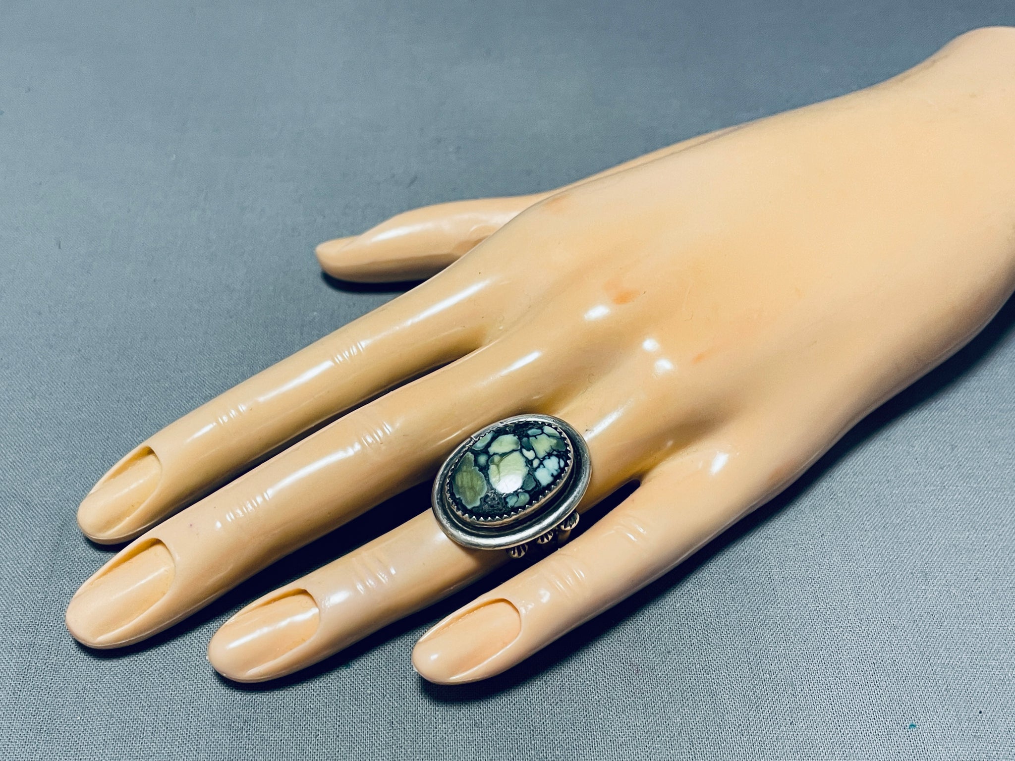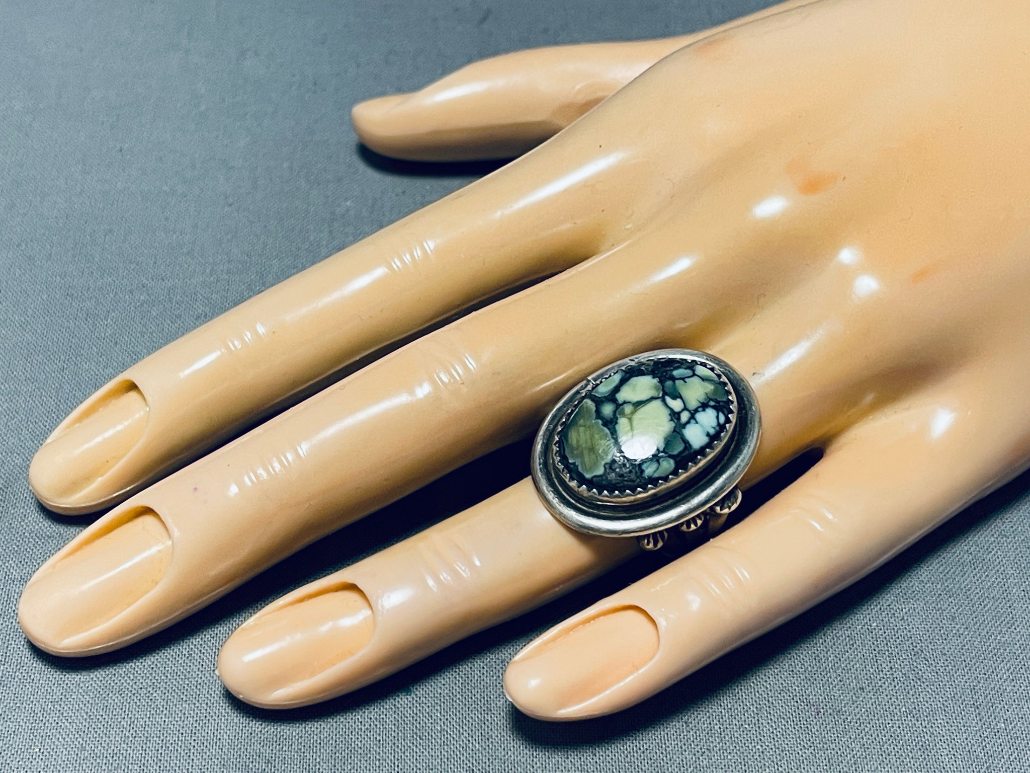 Electrifying Native American Navajo Frogskin Turquoise Sterling Silver Signed Ring