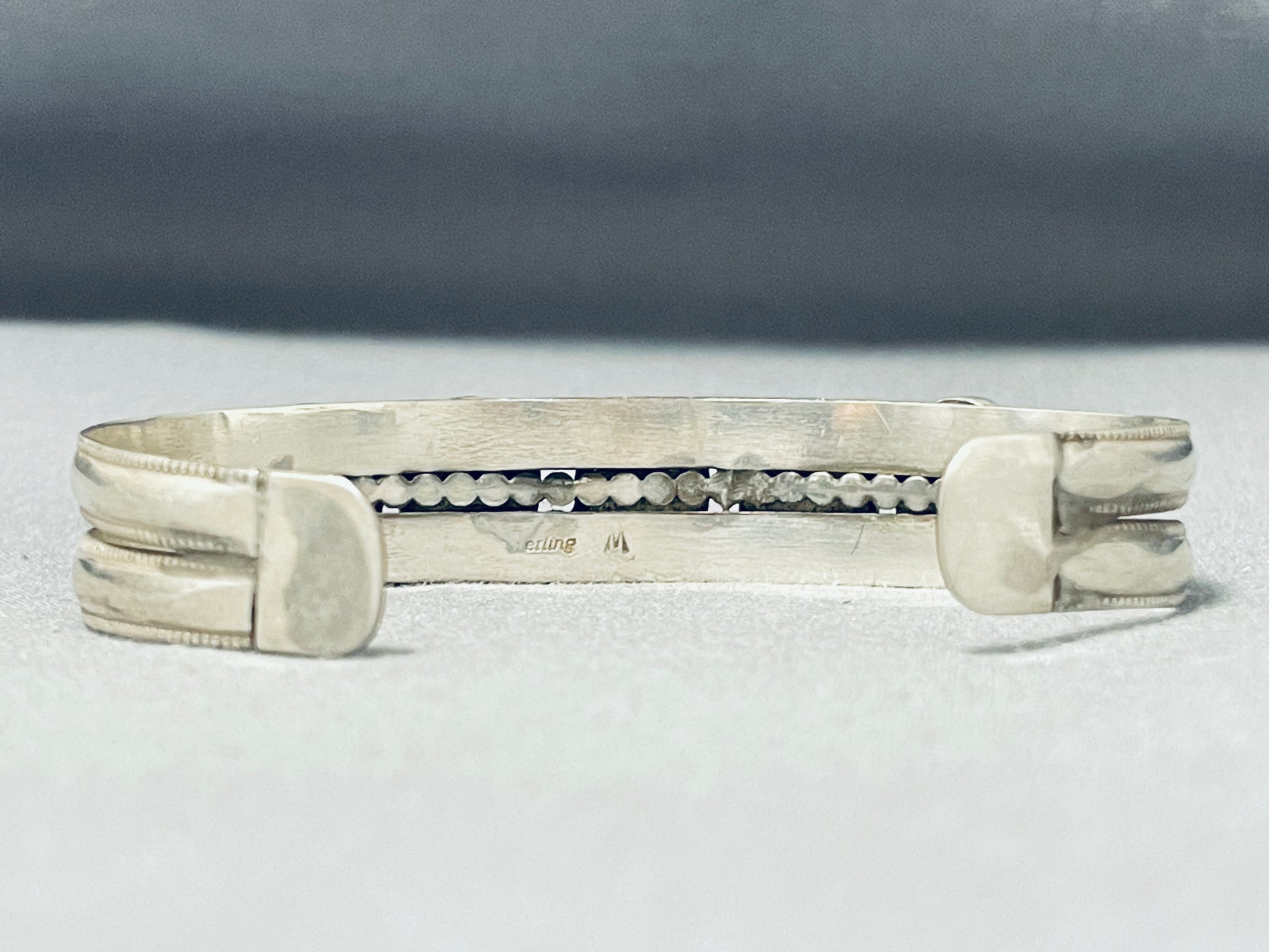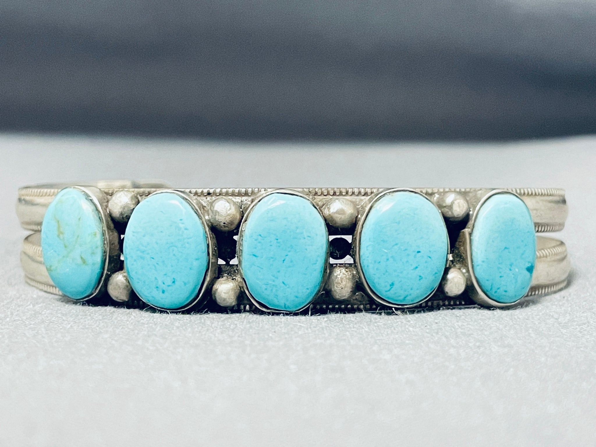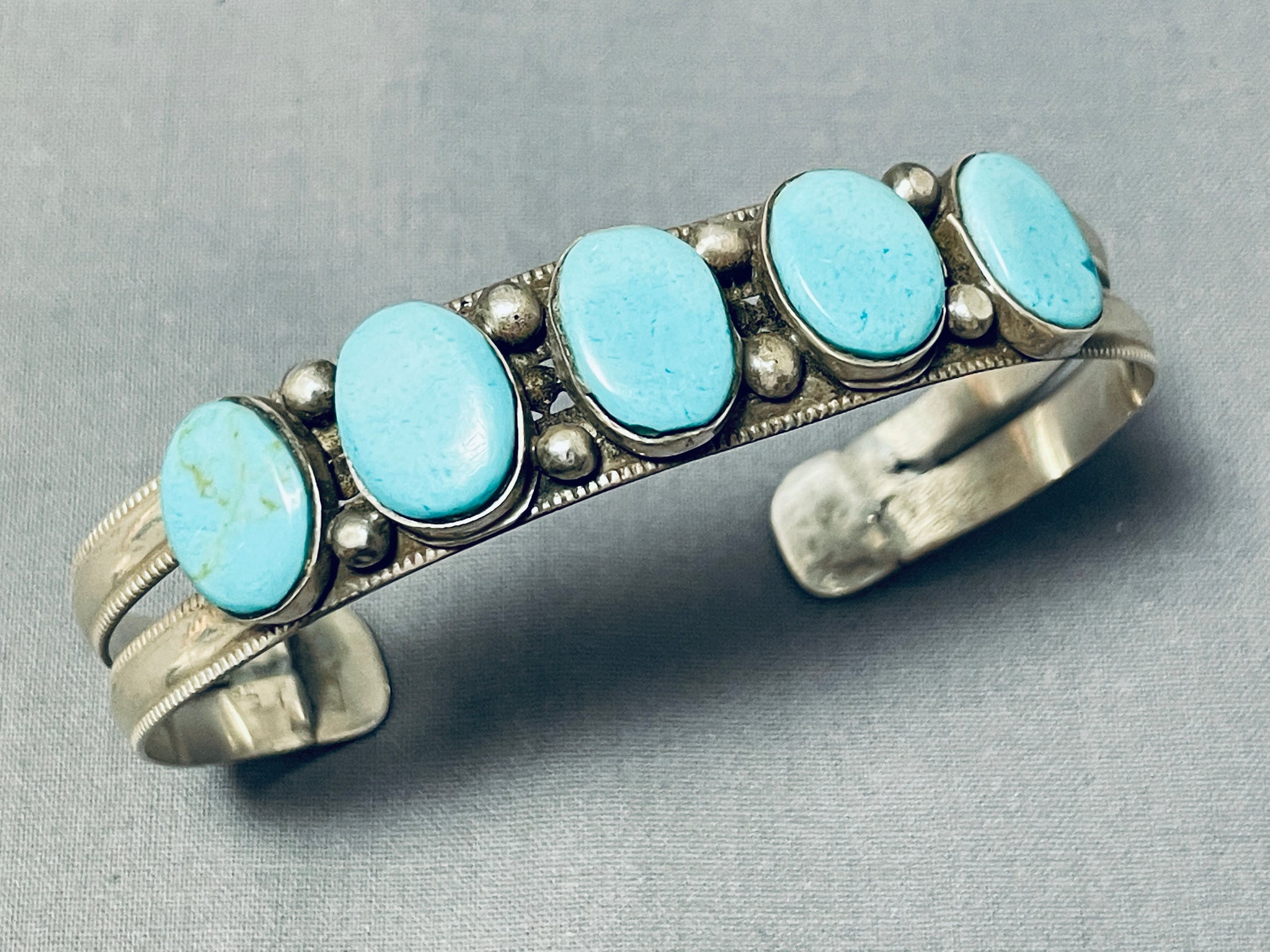Elegant Vintage Native American Navajo Blue Gem Turquoise Sterling Silver Bracelet