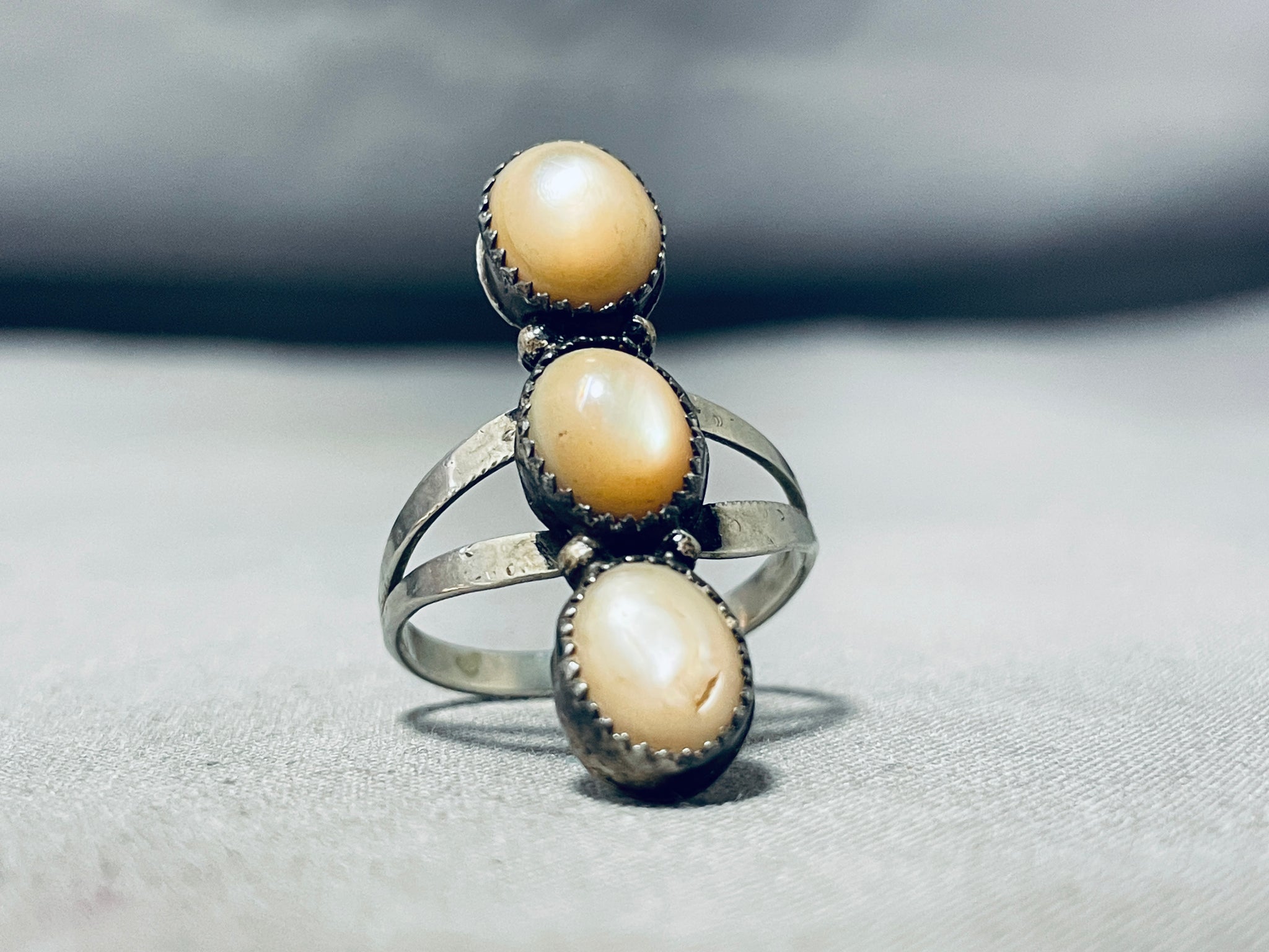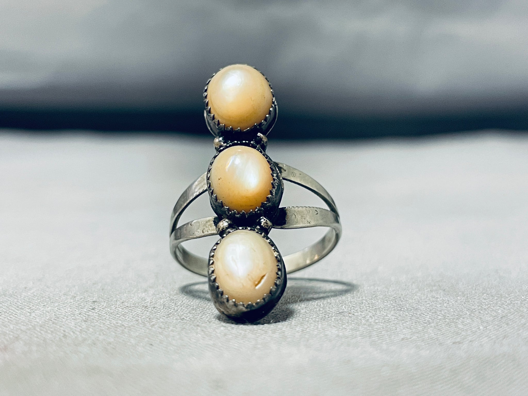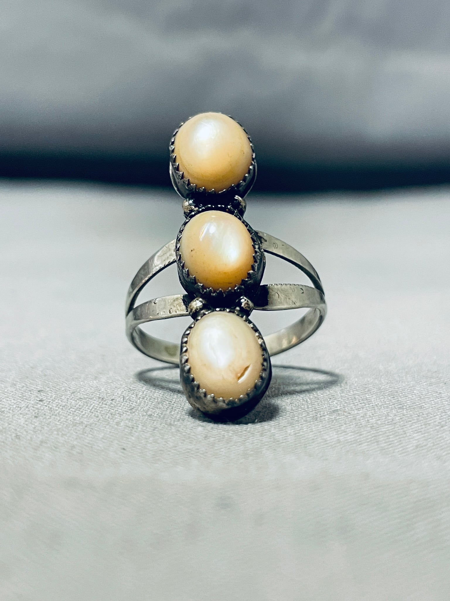 Elegant Vintage Native American Navajo Mother Of Pearl Sterling Silver Ring