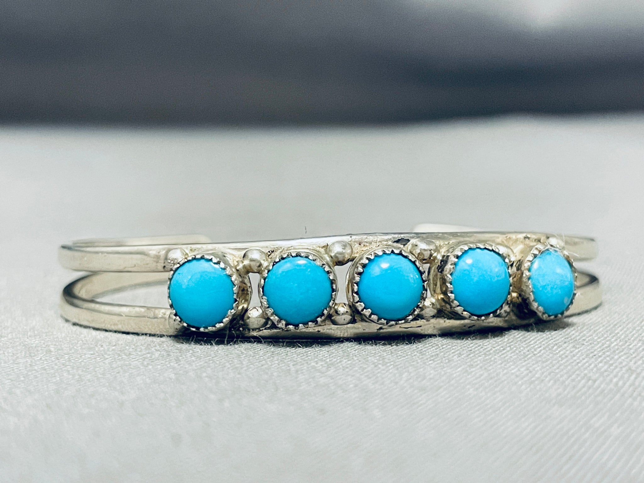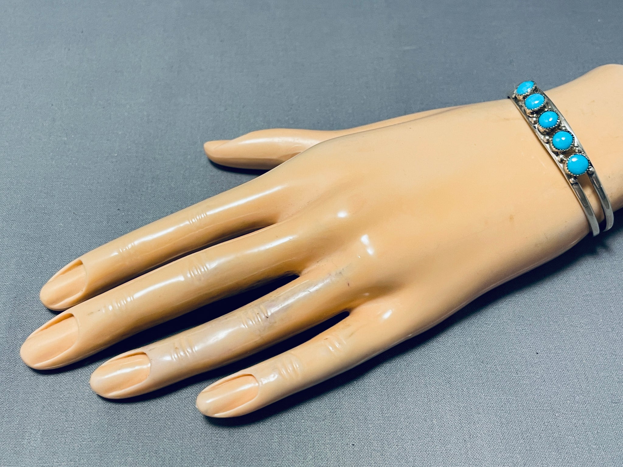 Elegant Vintage Native American Navajo Sleeping Beauty Turquoise Sterling Silver Bracelet