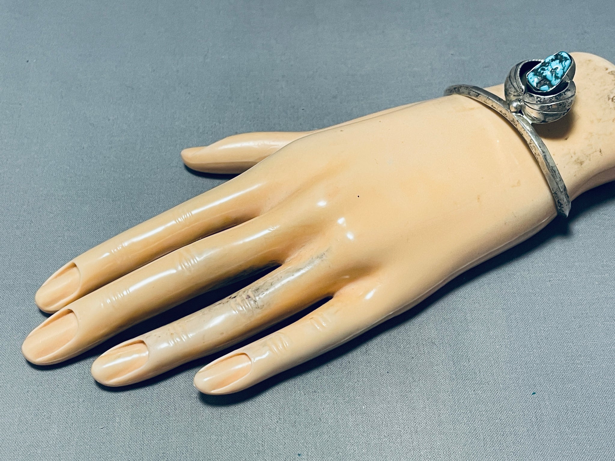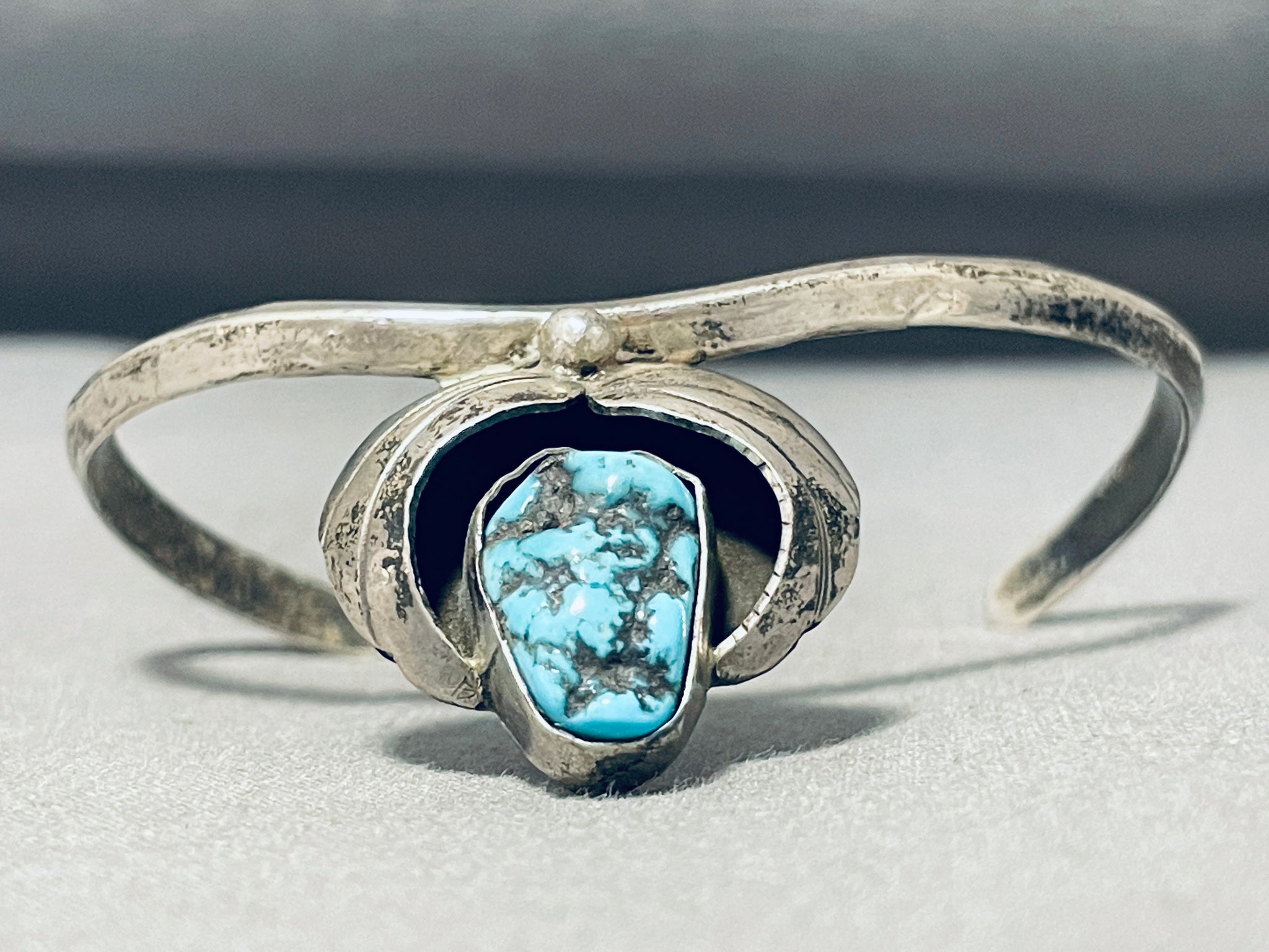 Elegant Vintage Native American Navajo Sleeping Beauty Turquoise Sterling Silver Bracelet