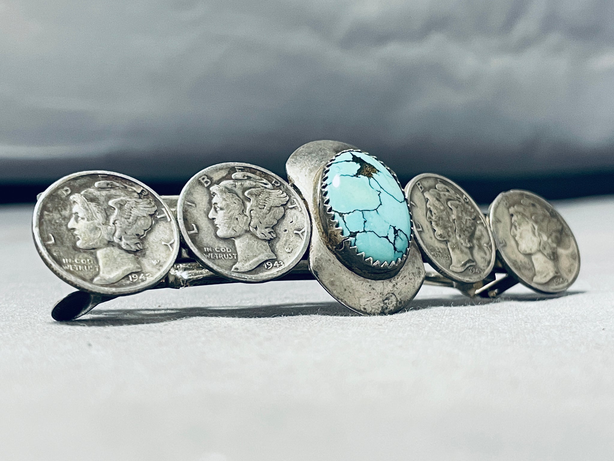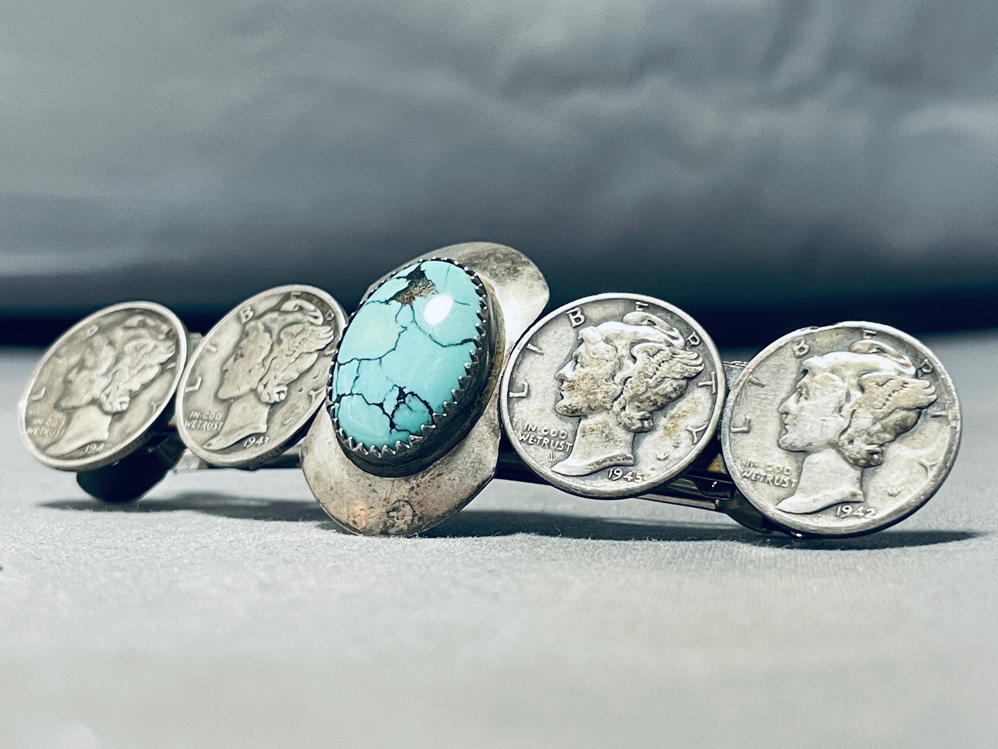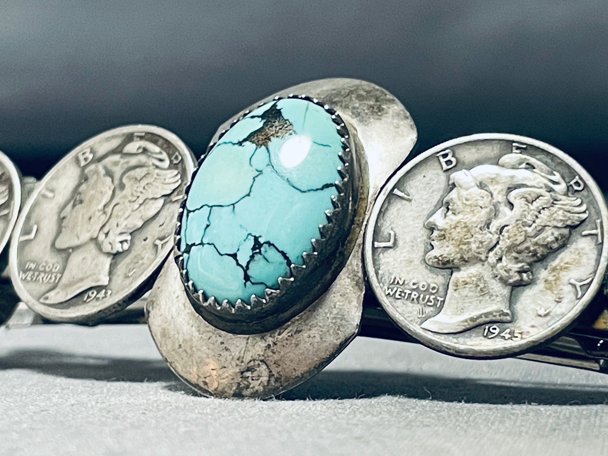 Enchanting Vintage Native American Navajo Spiderweb Turquoise Sterling Silver Dime Burette