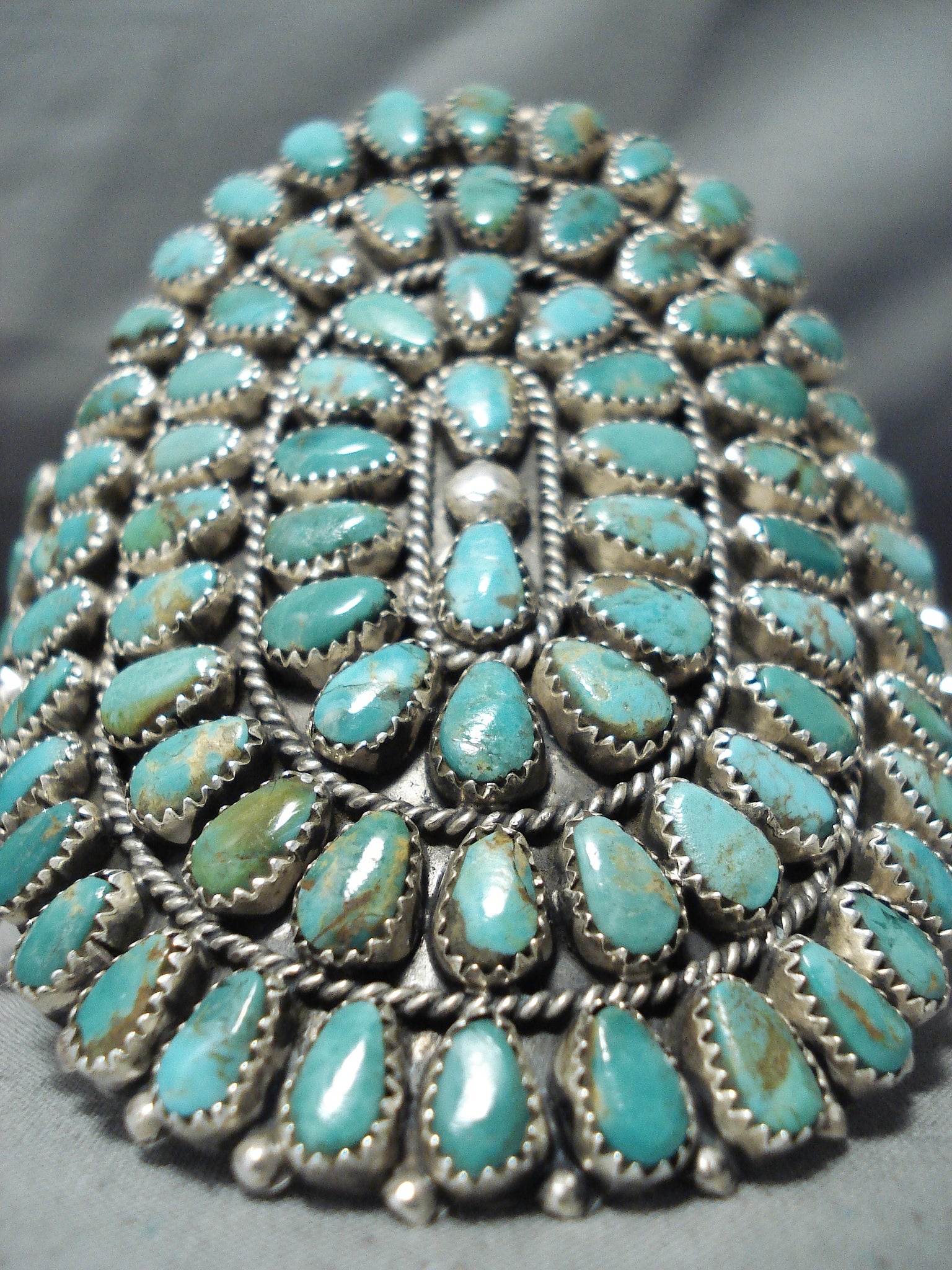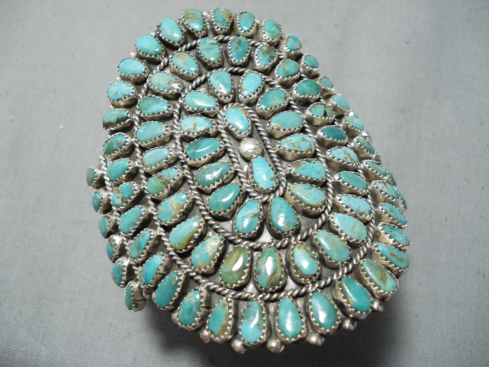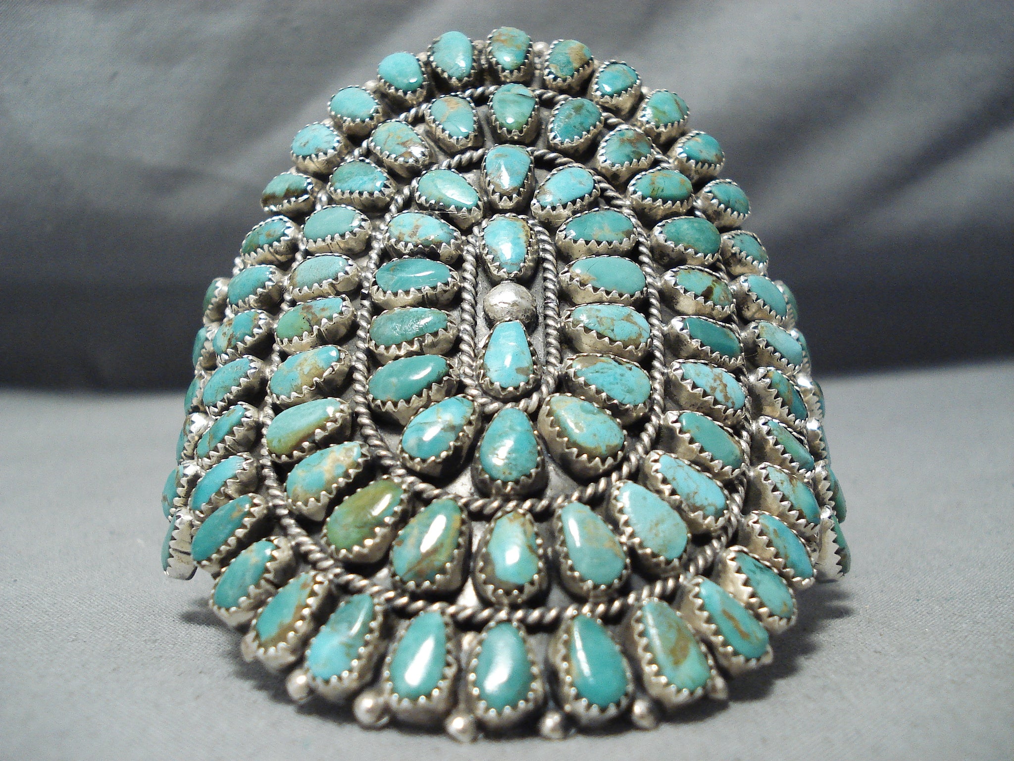 Enormous Native American Navajo Royston Turquoise Cluster Sterling Silver Bracelet