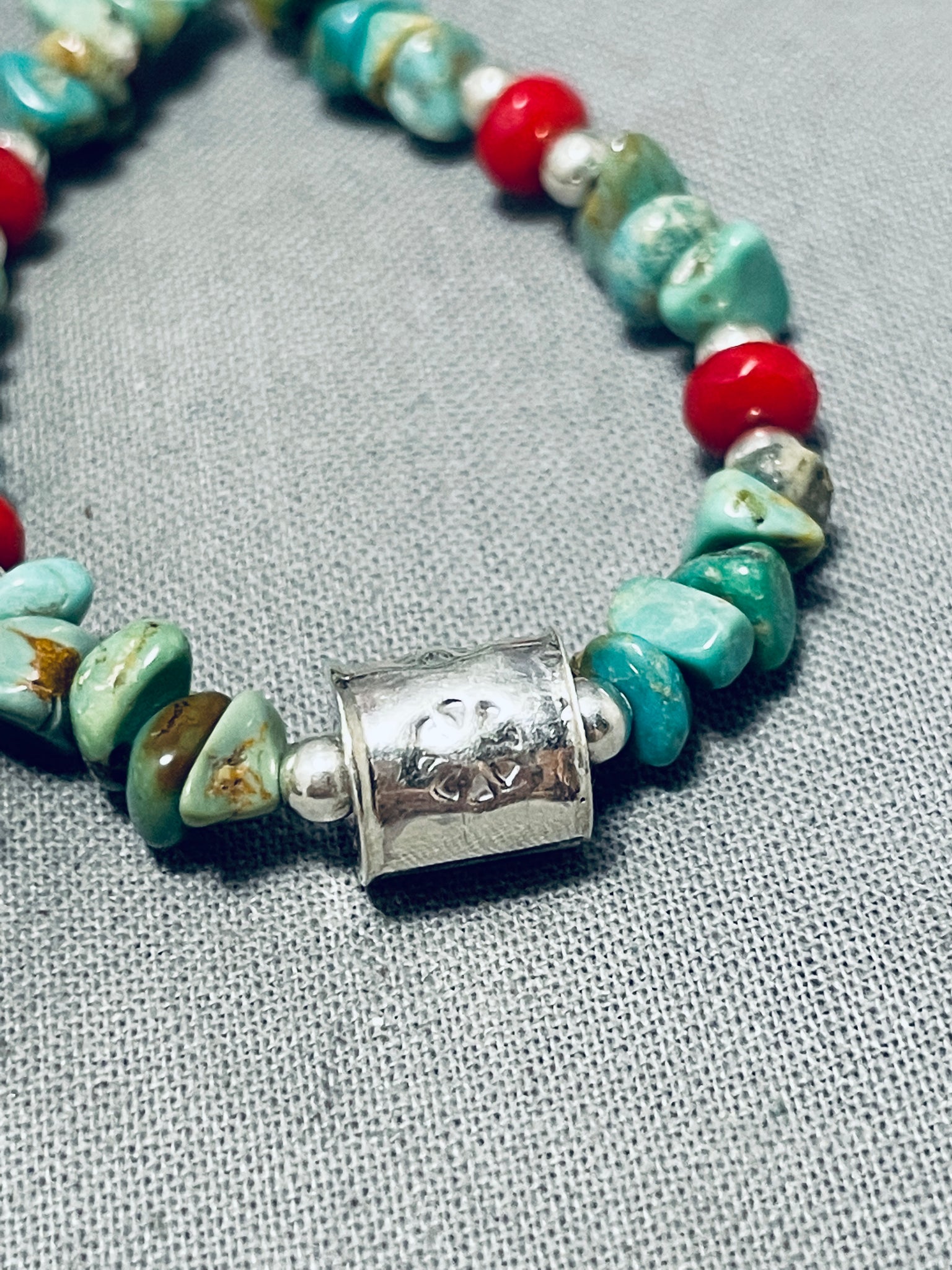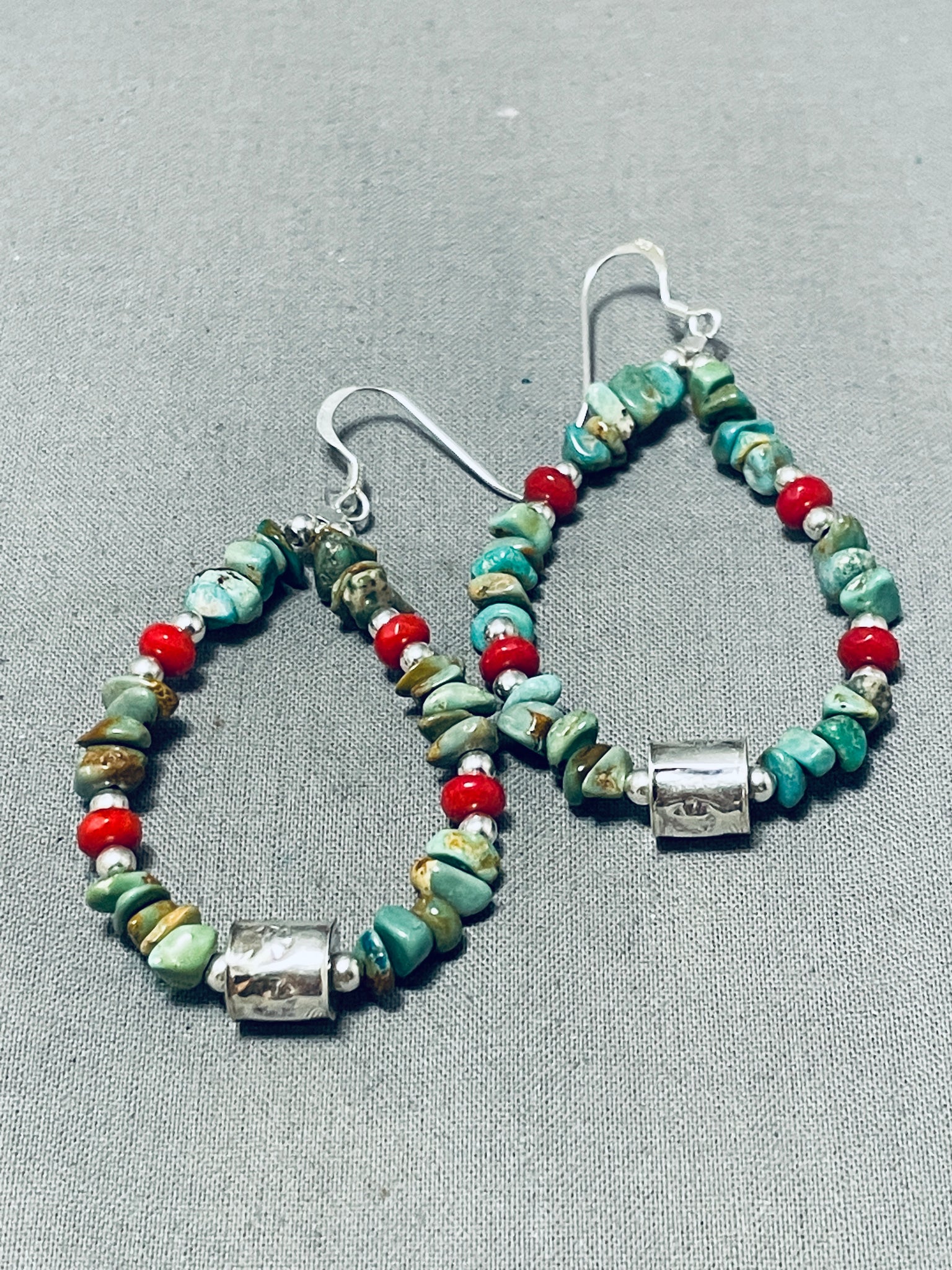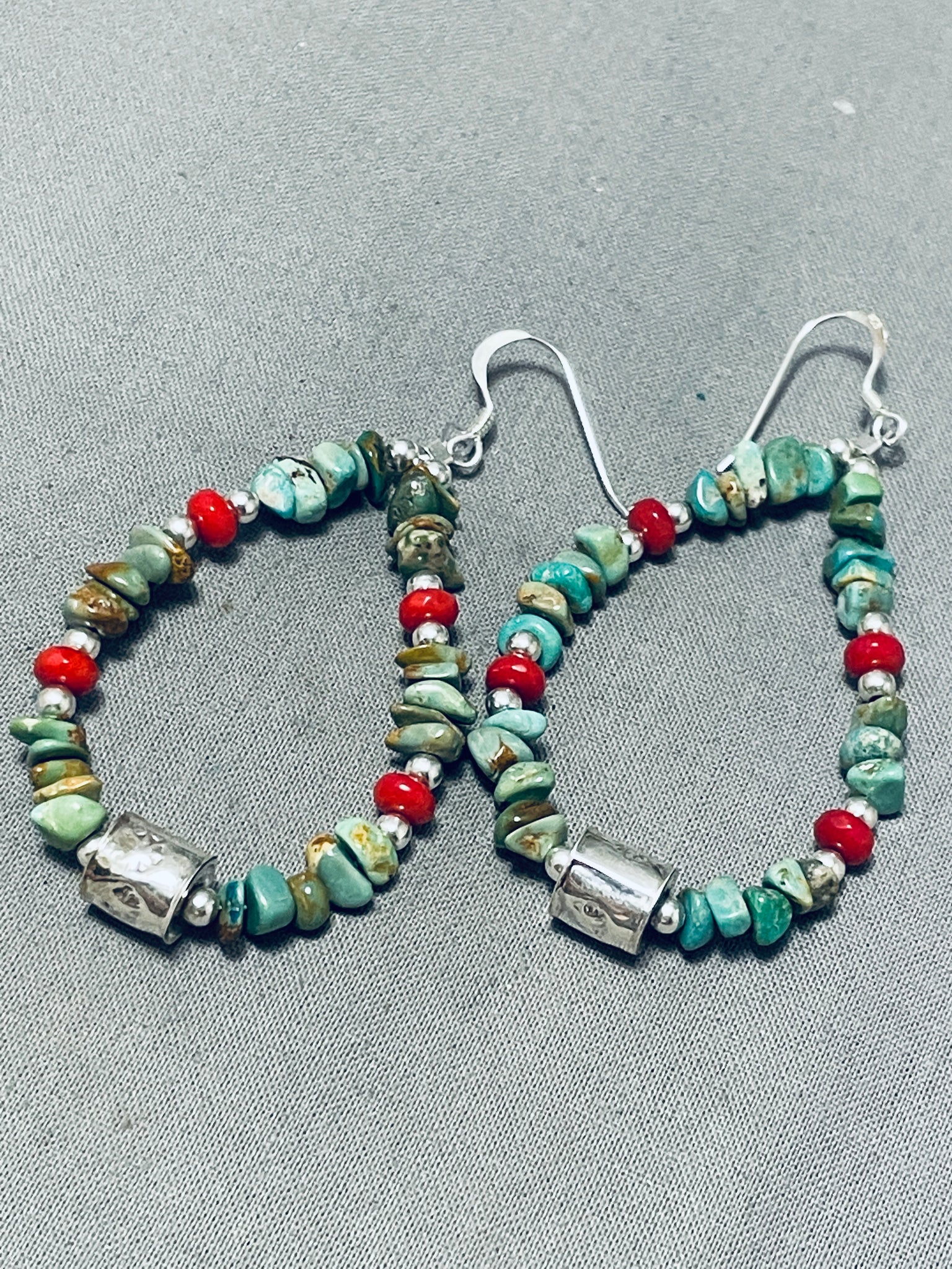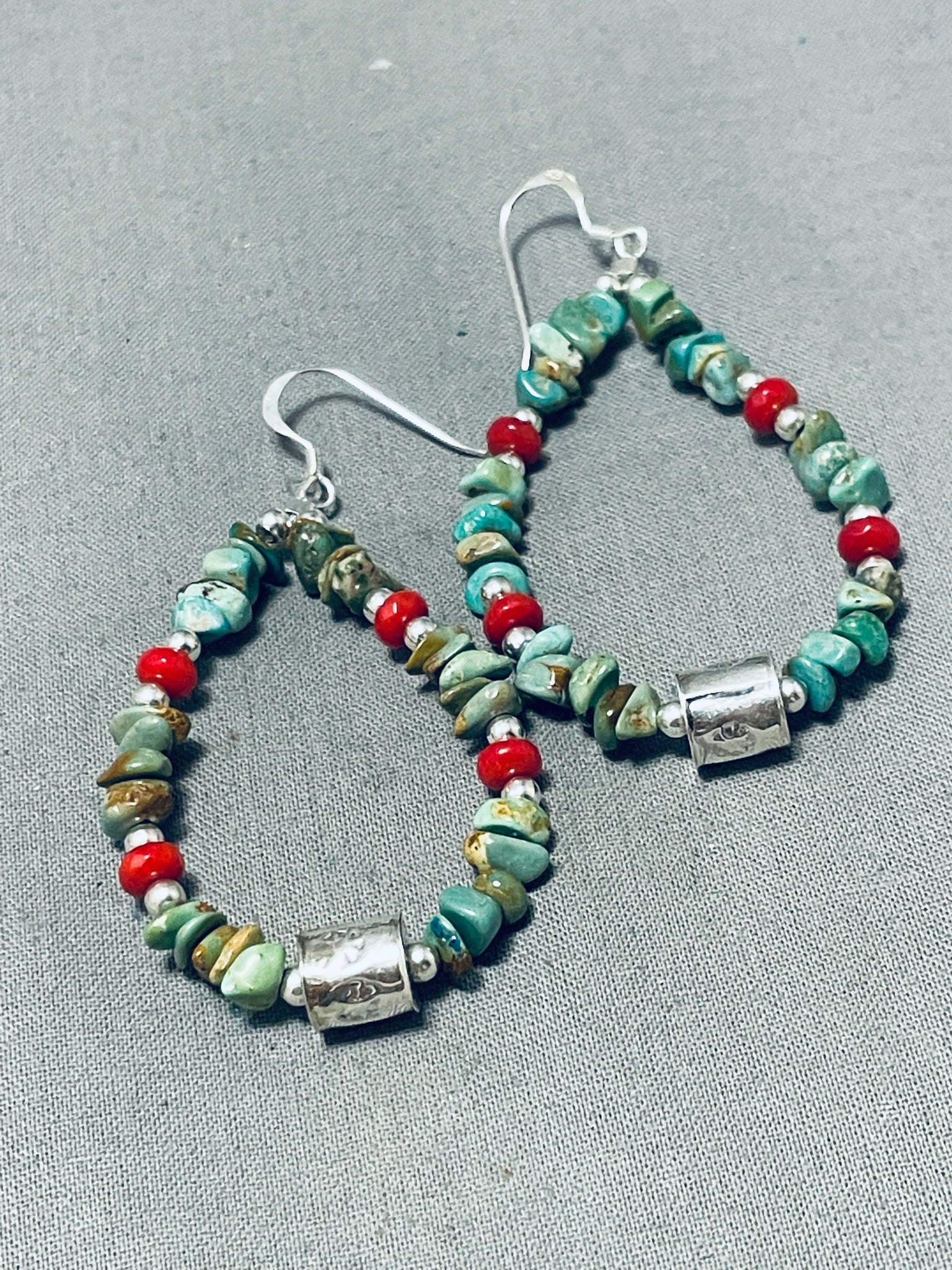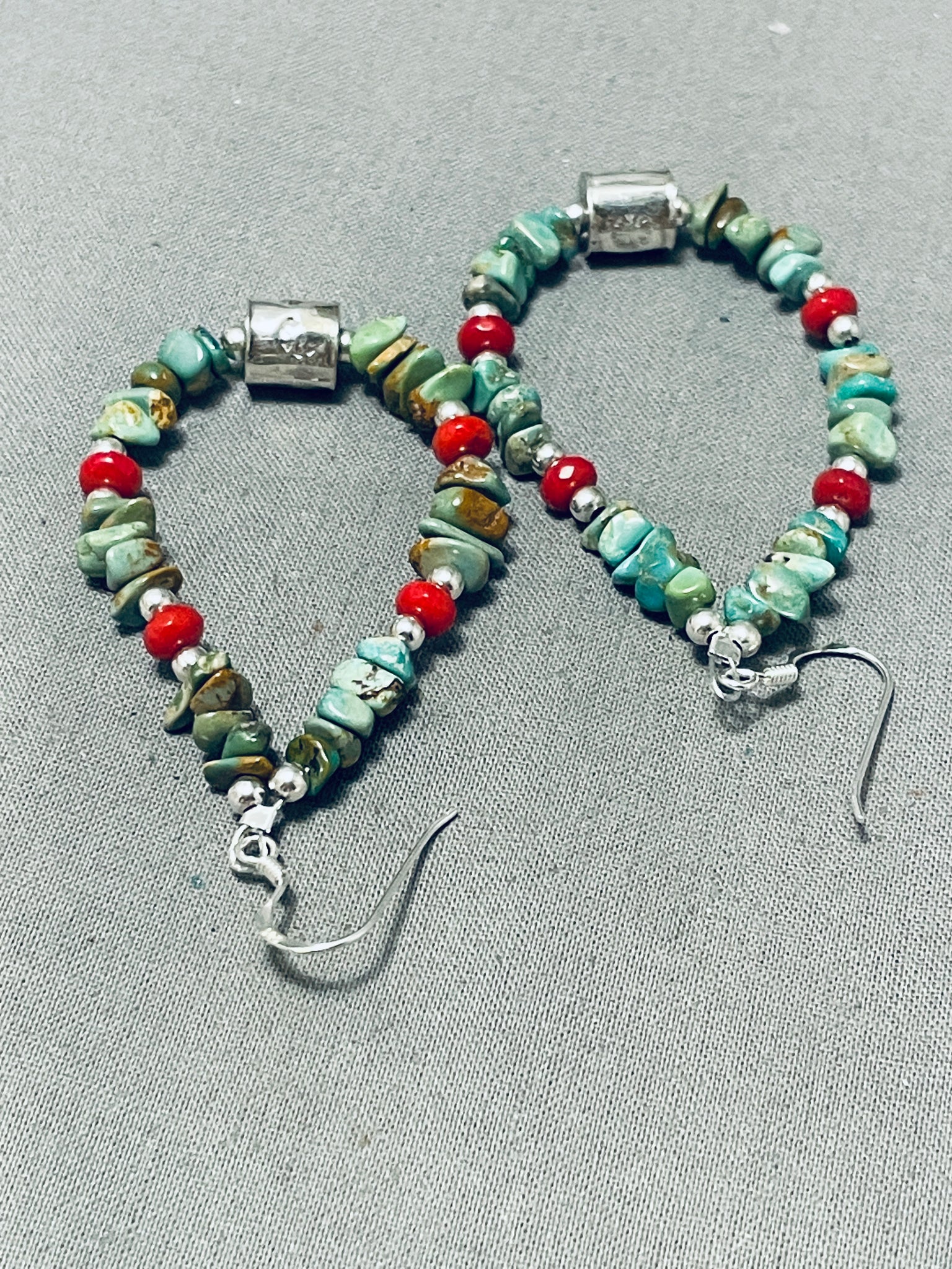 Enticing Native American Navajo Royston Turquoise Coral Sterling Silver Earrings