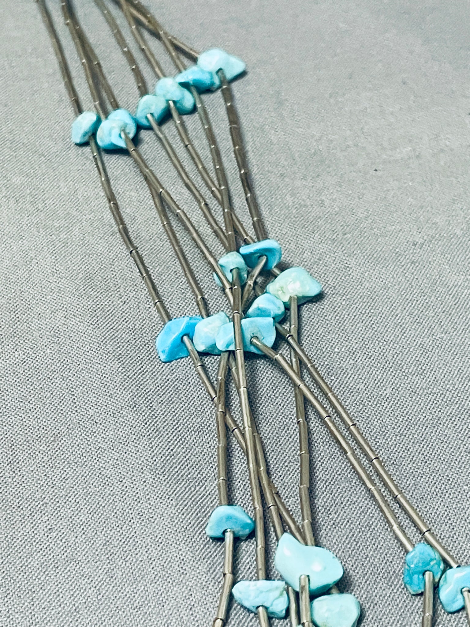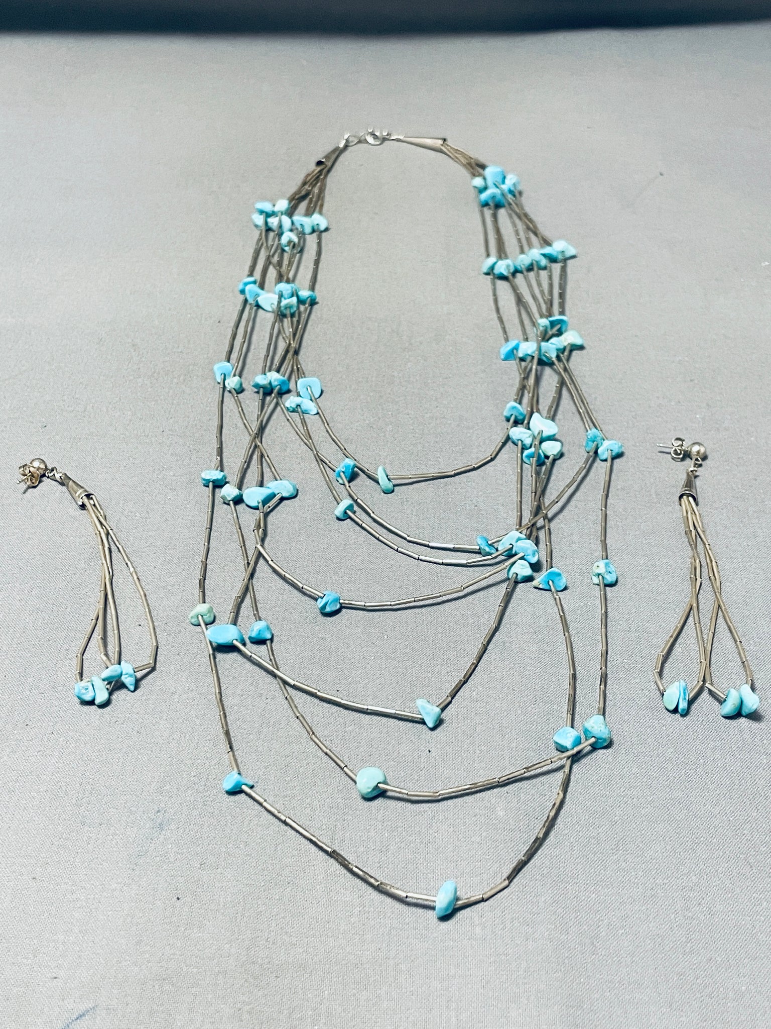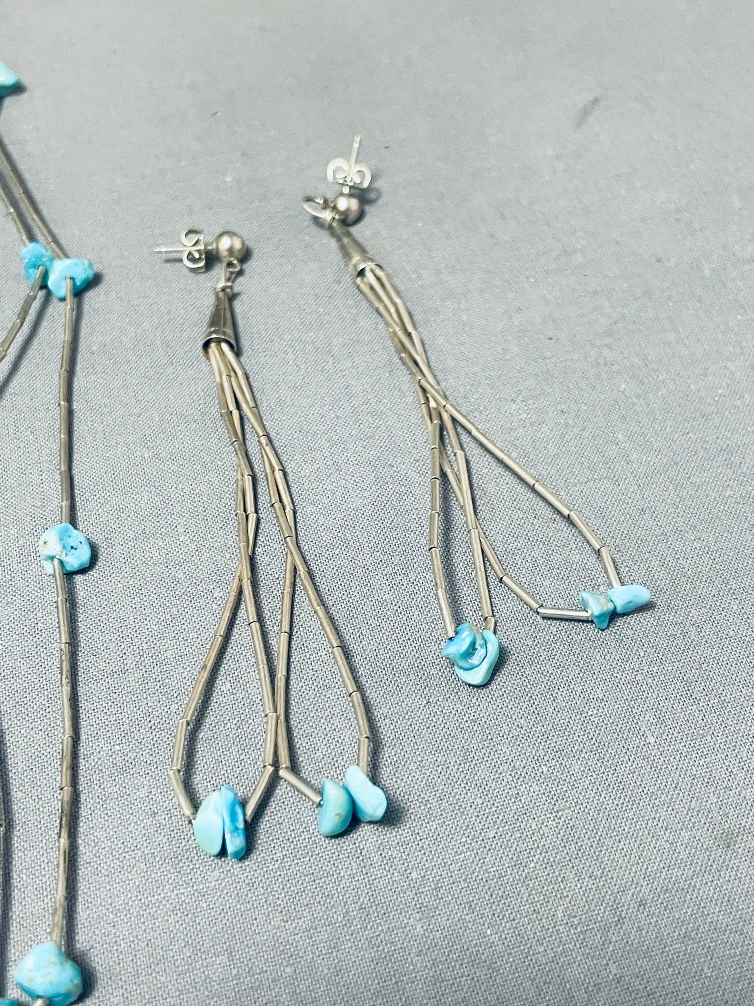 Enticing Vintage Native American Navajo Oldkingman Turquoise Sterlingsilver Necklace Earring Set