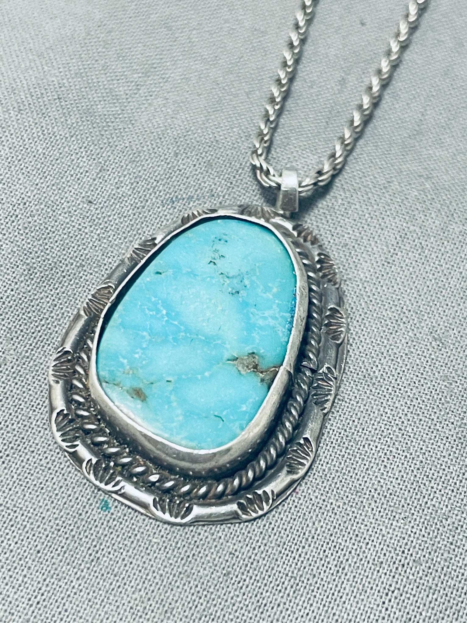 Enticing Vintage Native American Navajo Royston Turquoise Sterling Silver Necklace