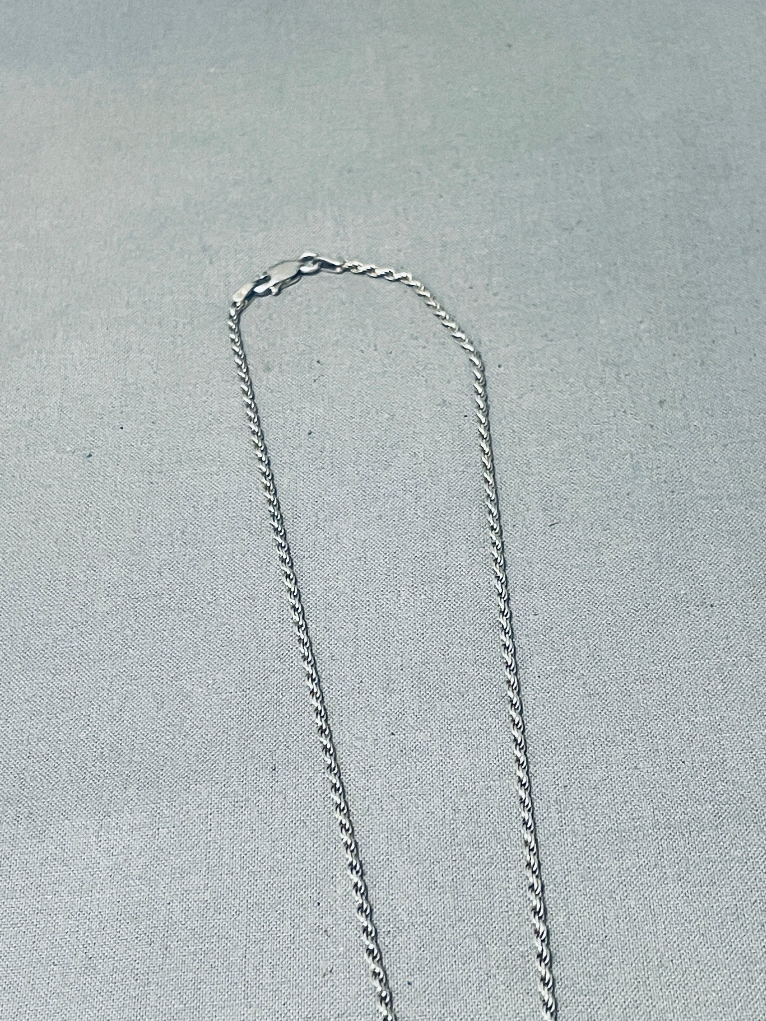 Up for offer is this important vintage Navajo necklace! It features a silver pendant with an oval Royston turquoise stone and handcarved silver rope, a silver chain, and a silver clasp! This necklace will make a perfect addition to your collection! Sterling silver. The length of the necklace measures around 21". Sturdy 13 grams.