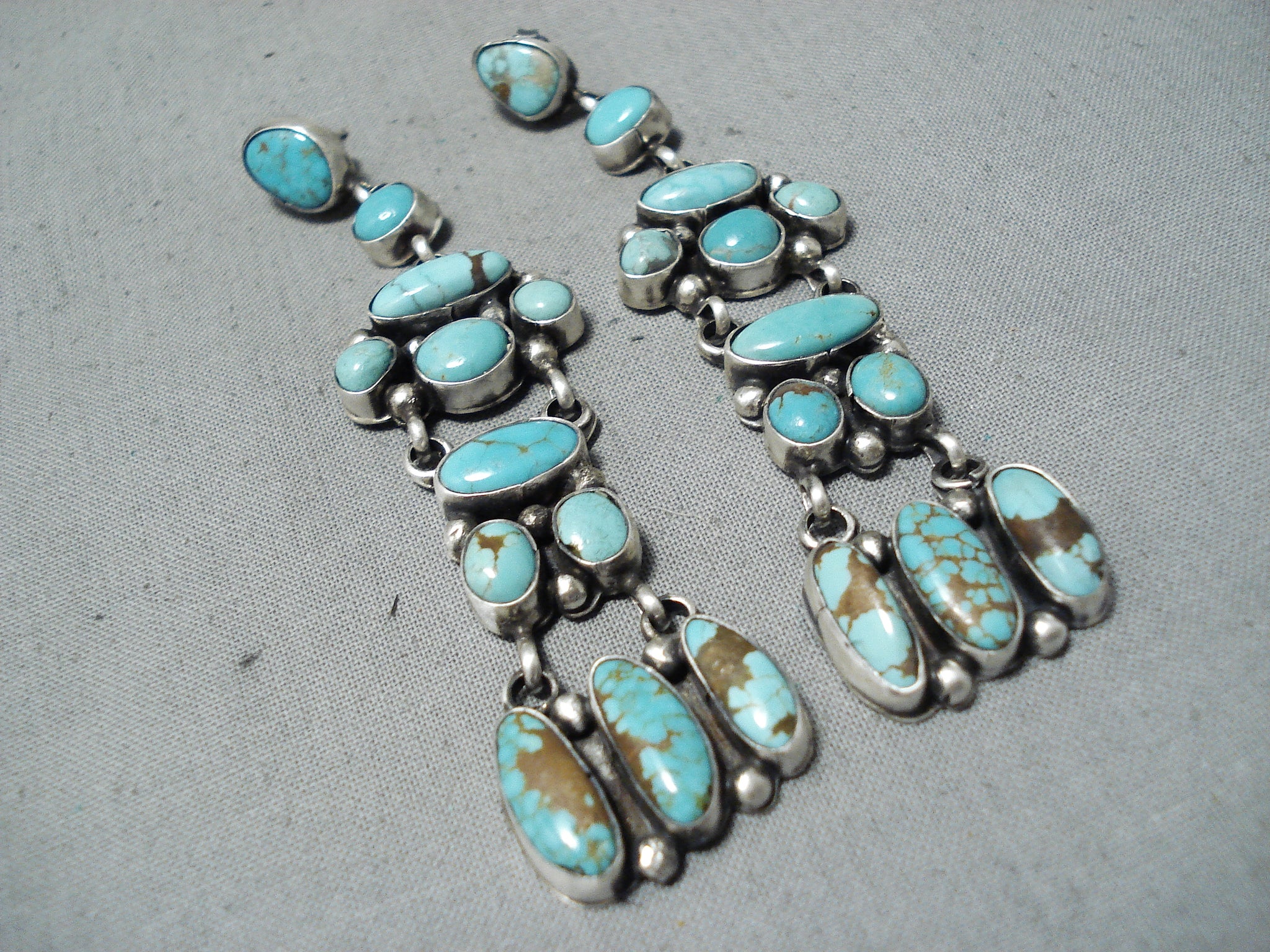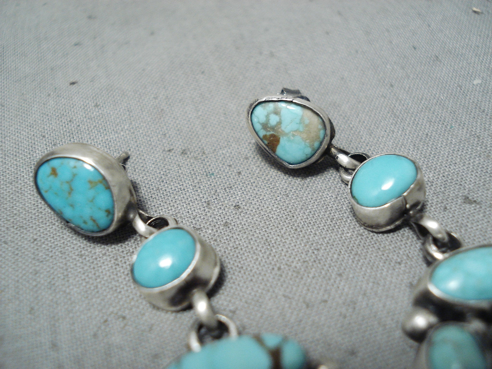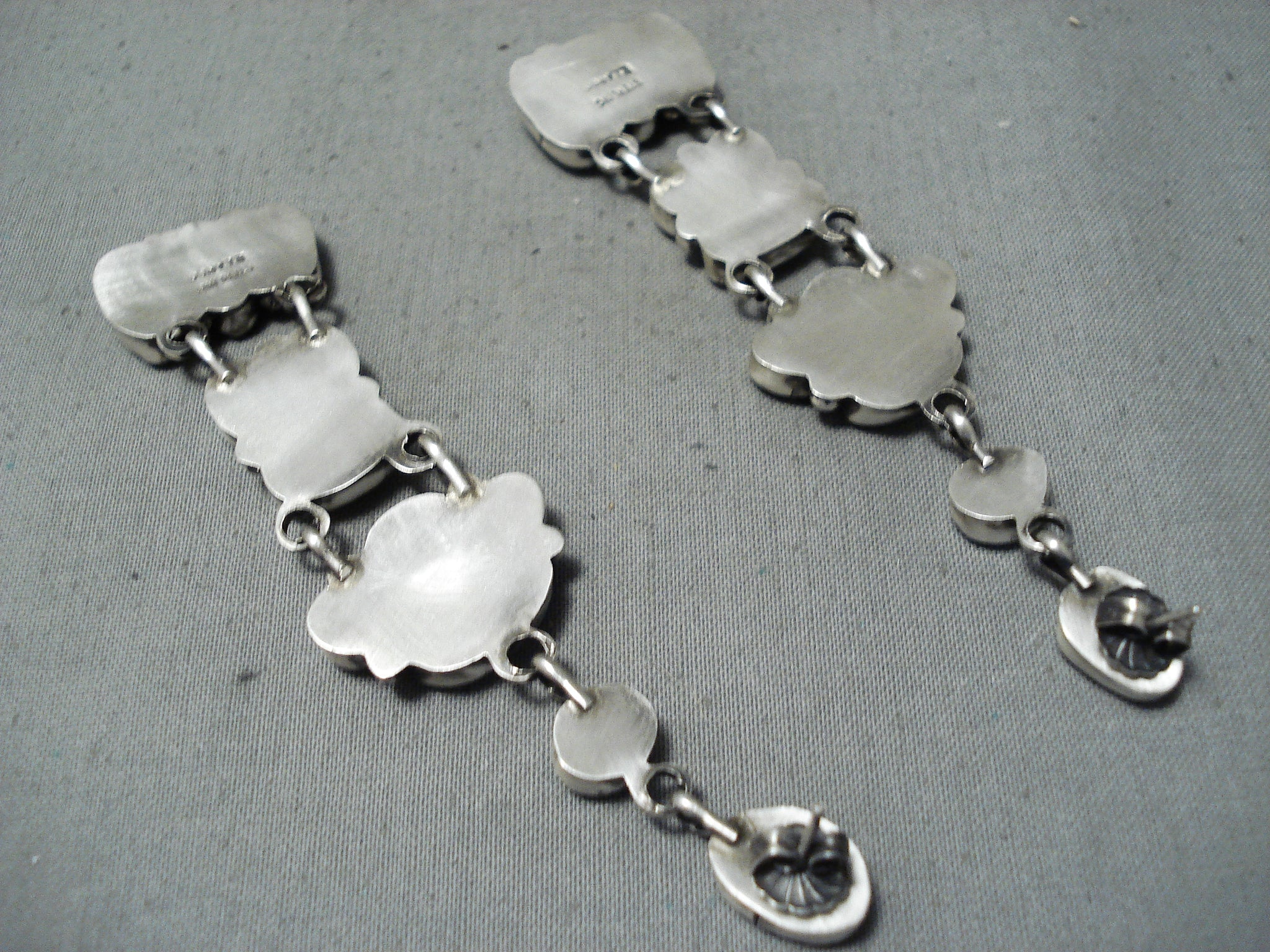 Ester Largo Native American Navajo Pilot Mountain Turquoise Sterling Silver Earrings