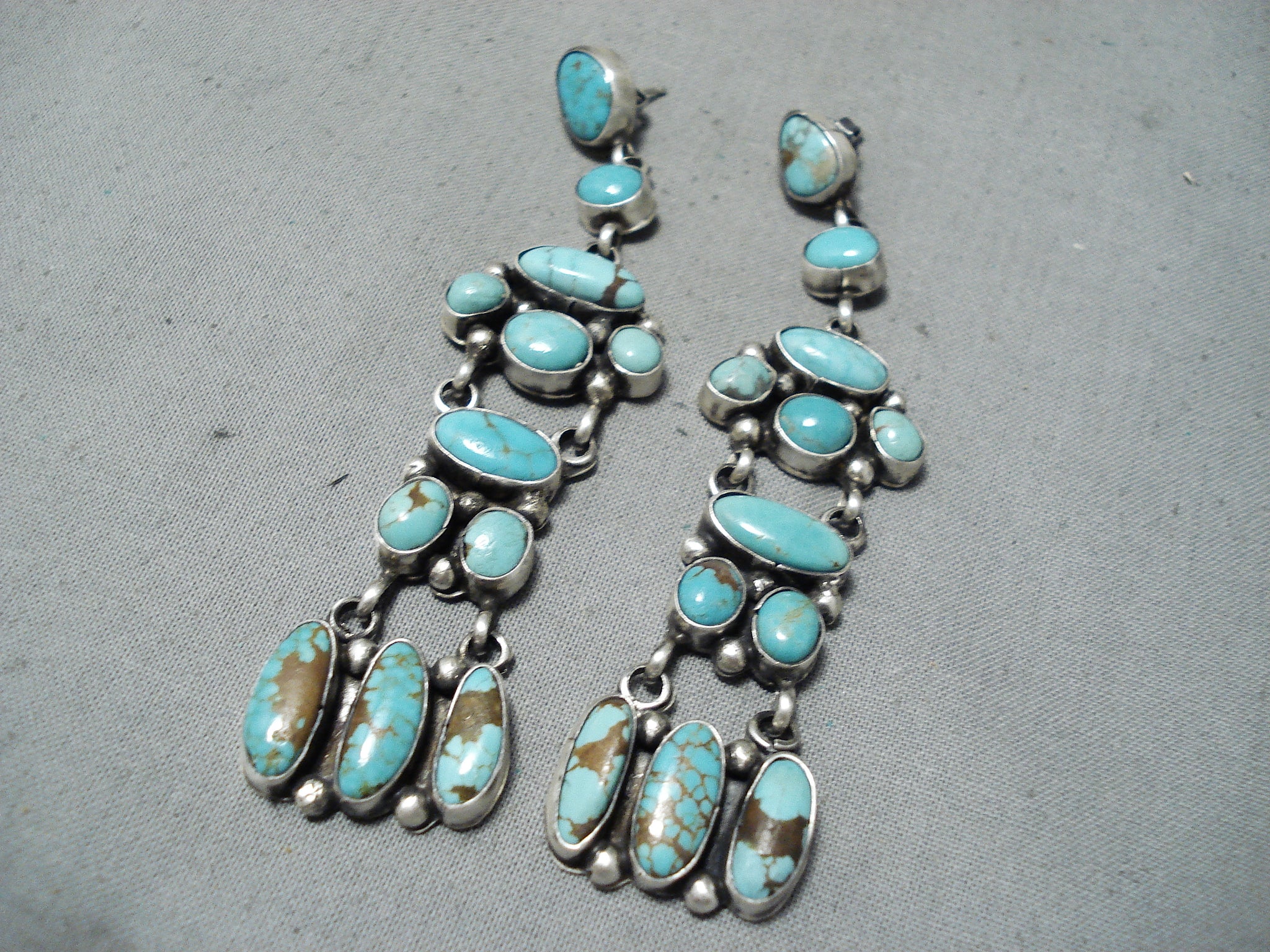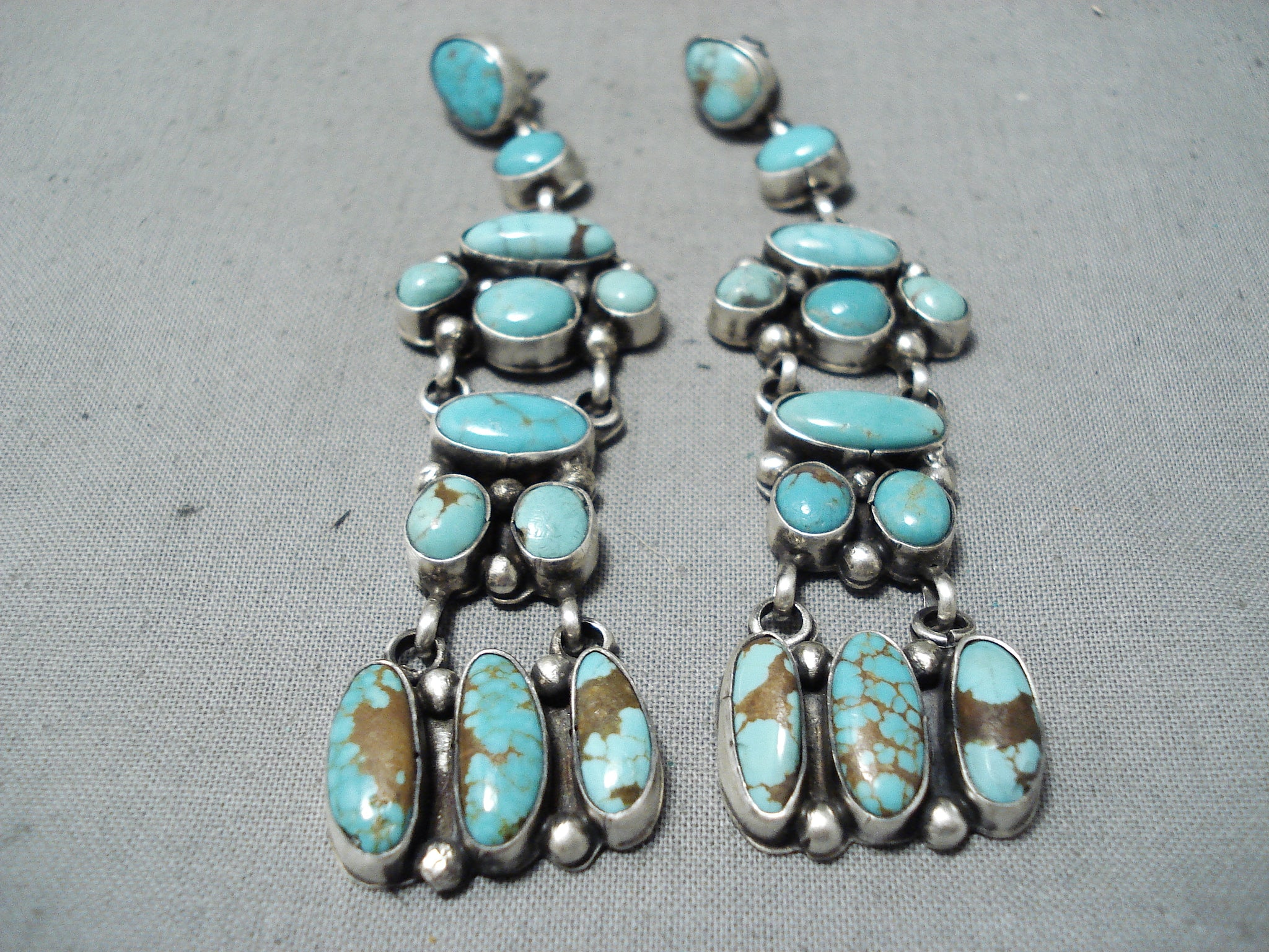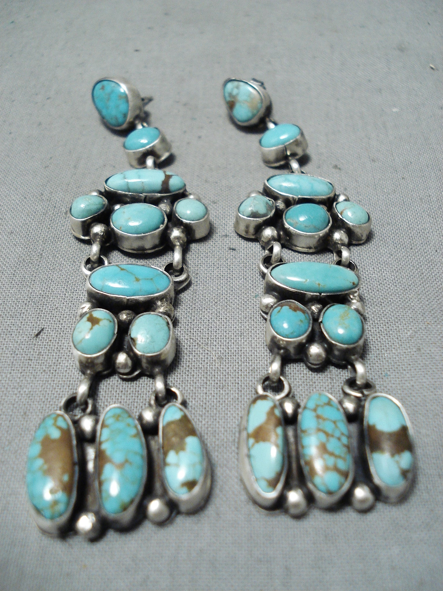 Ester Largo Native American Navajo Pilot Mountain Turquoise Sterling Silver Earrings