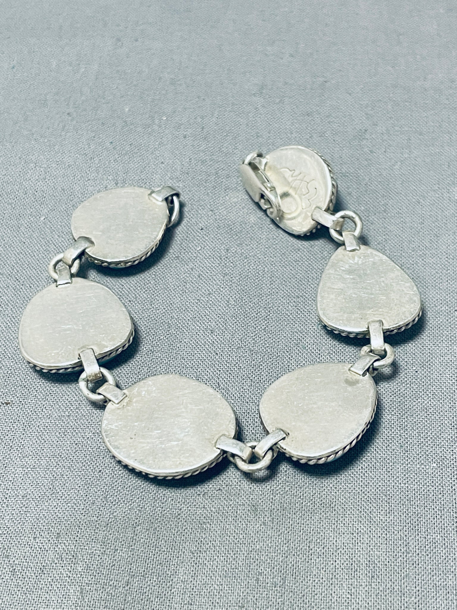 Esther Wood Vintage Native American Navajo Pilot Mountain Turquoise Sterling Silver Bracelet