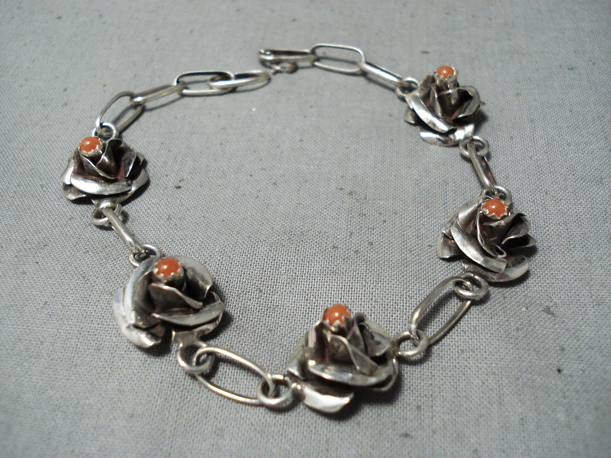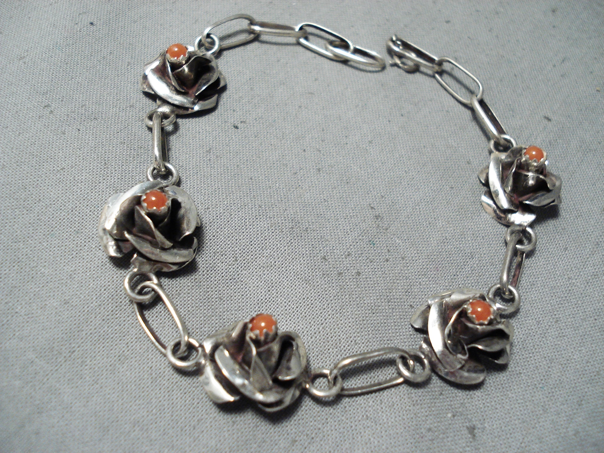 Excellent Navajo Coral Sterling Silver Rose Bracelet Native American