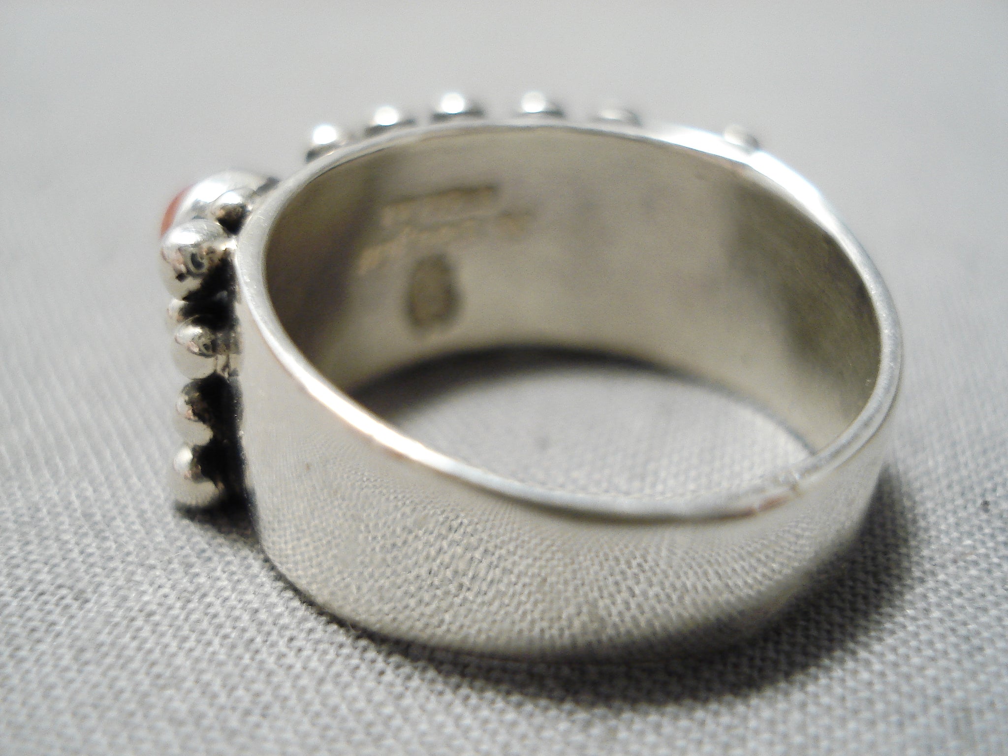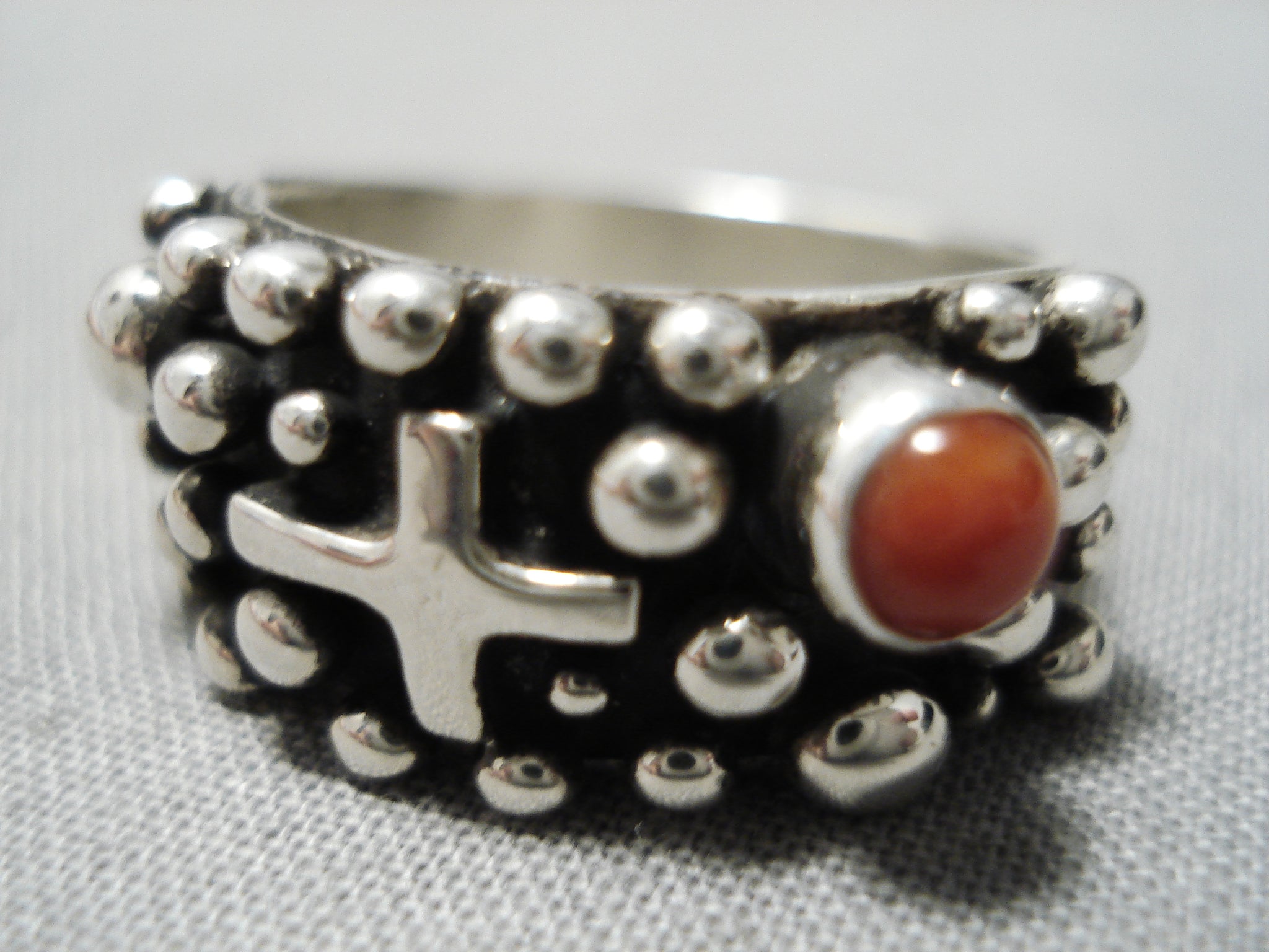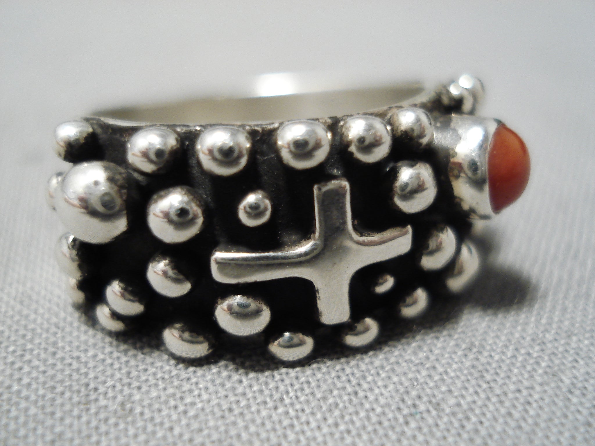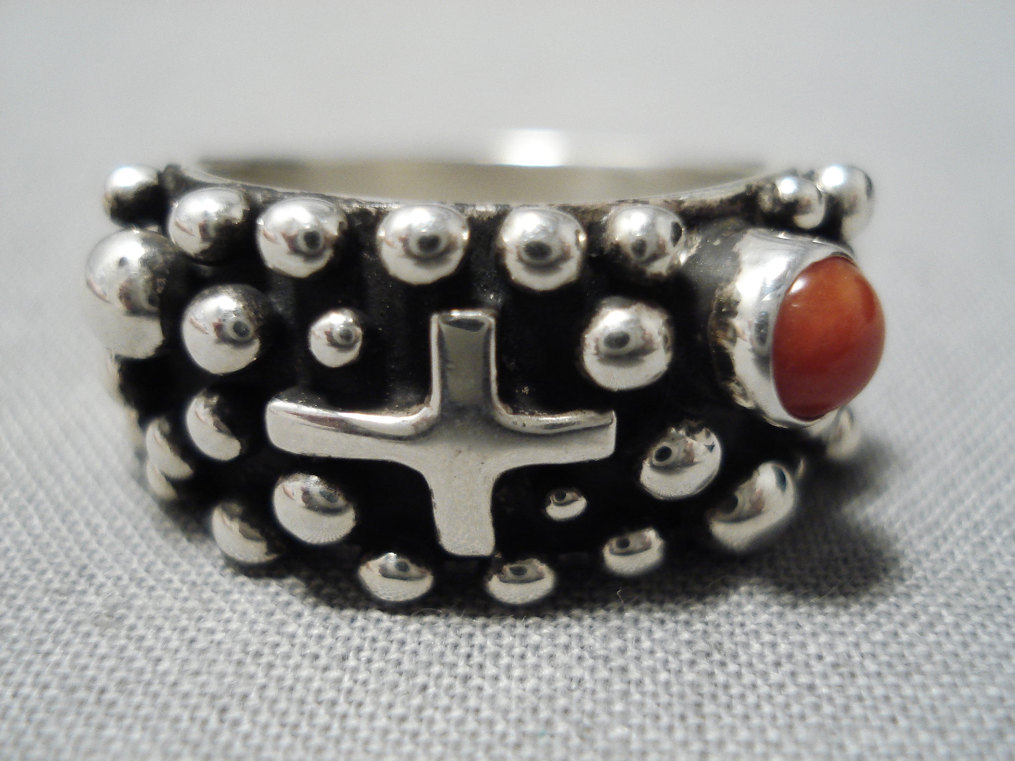 Excellent Navajo Coral Sterling Silvercross Ring Native American