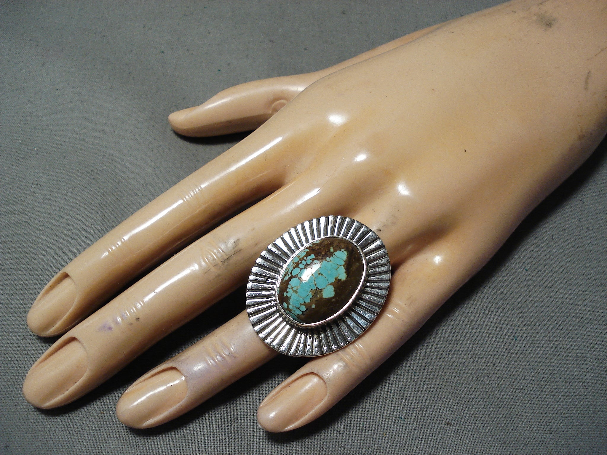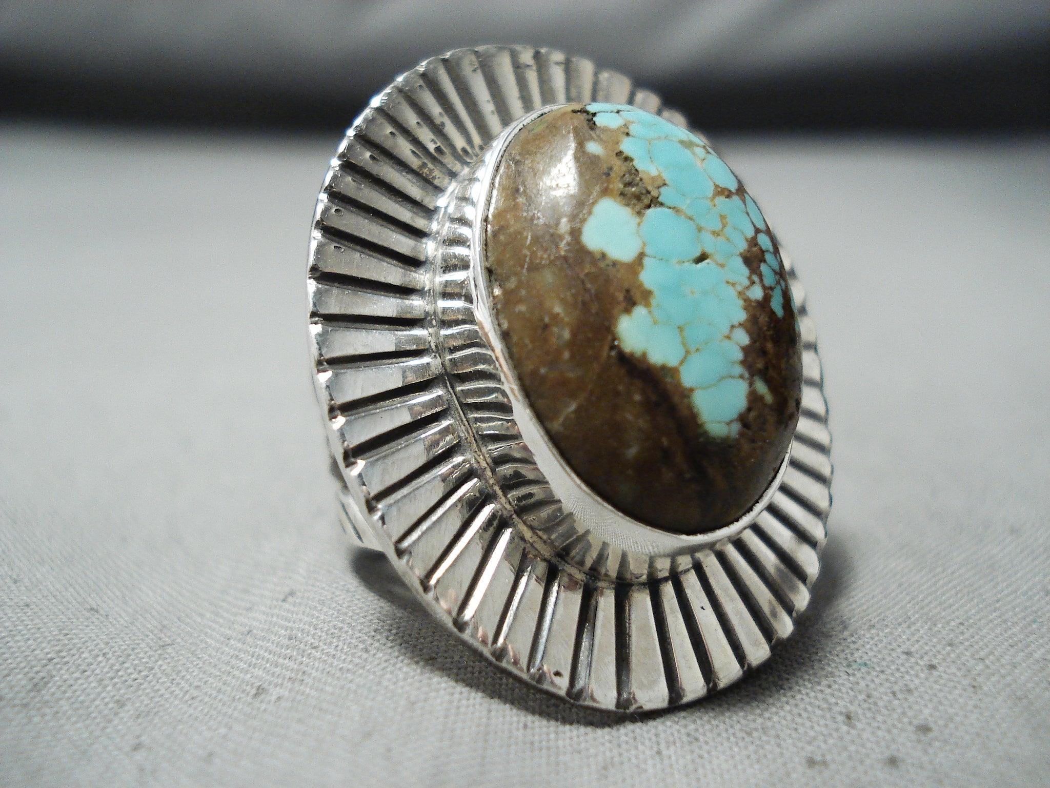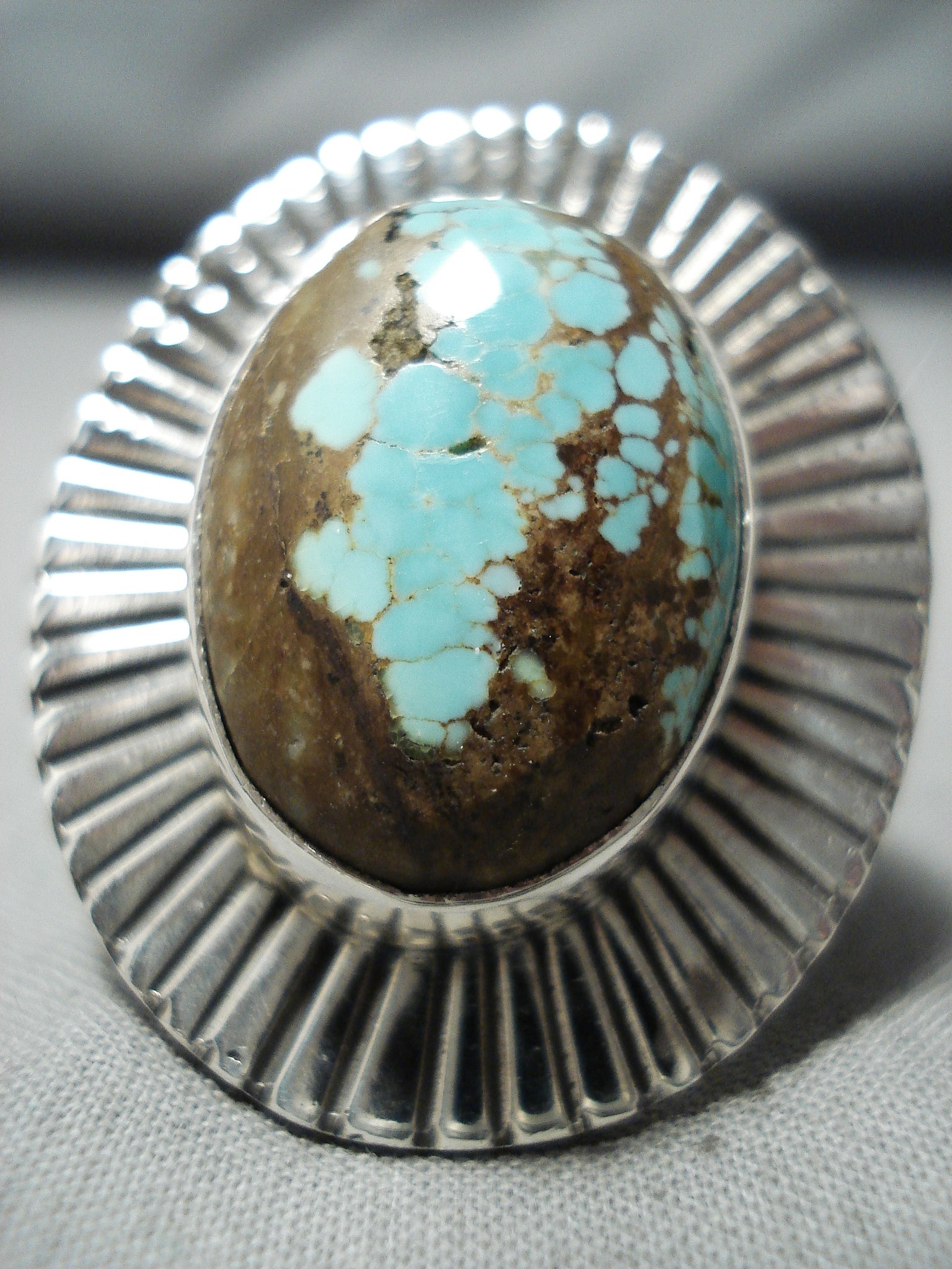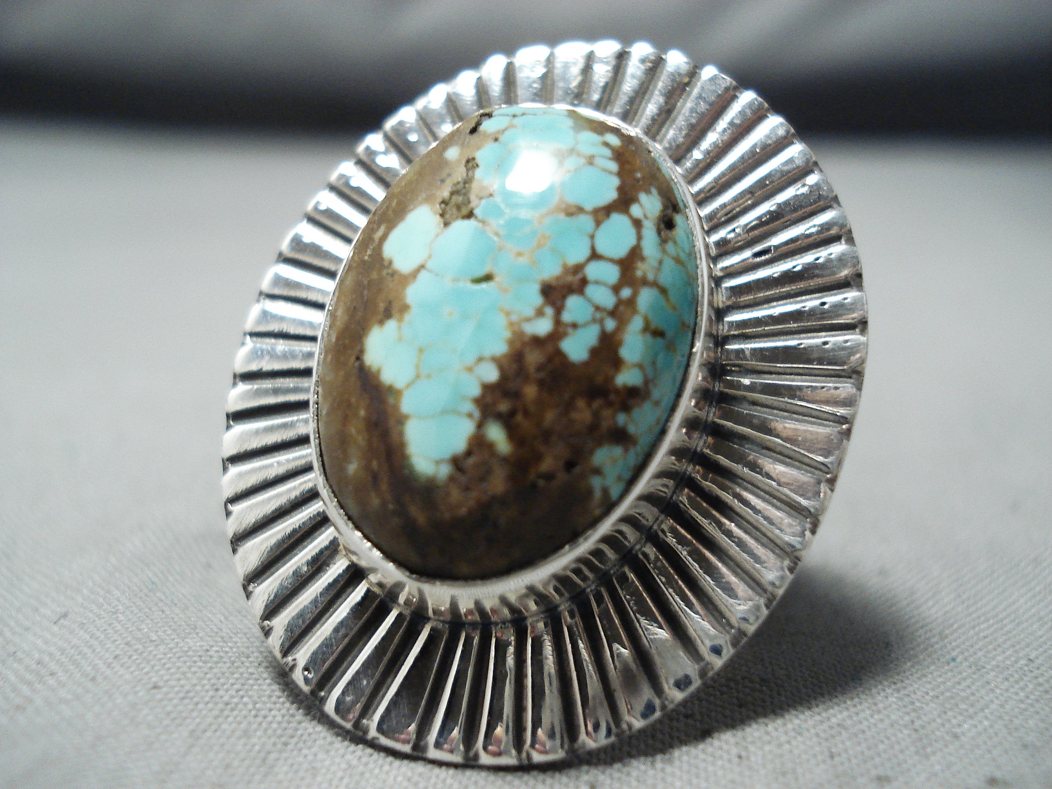 Excellent Navajo Native American 8 Turquoise Sterling Silver Ring