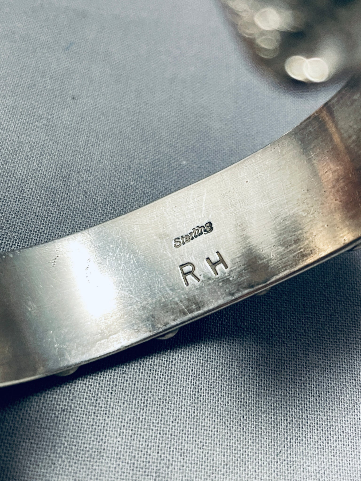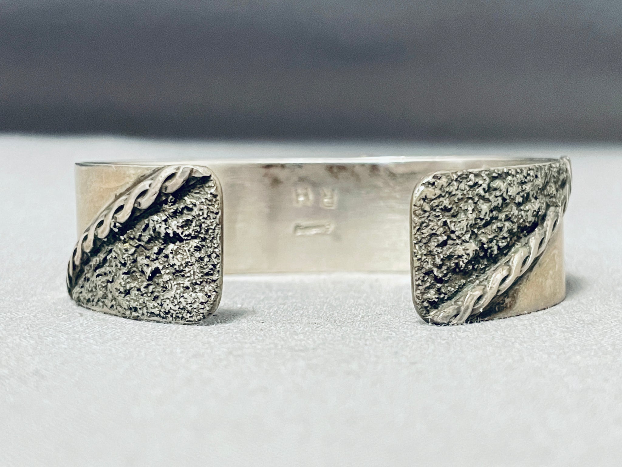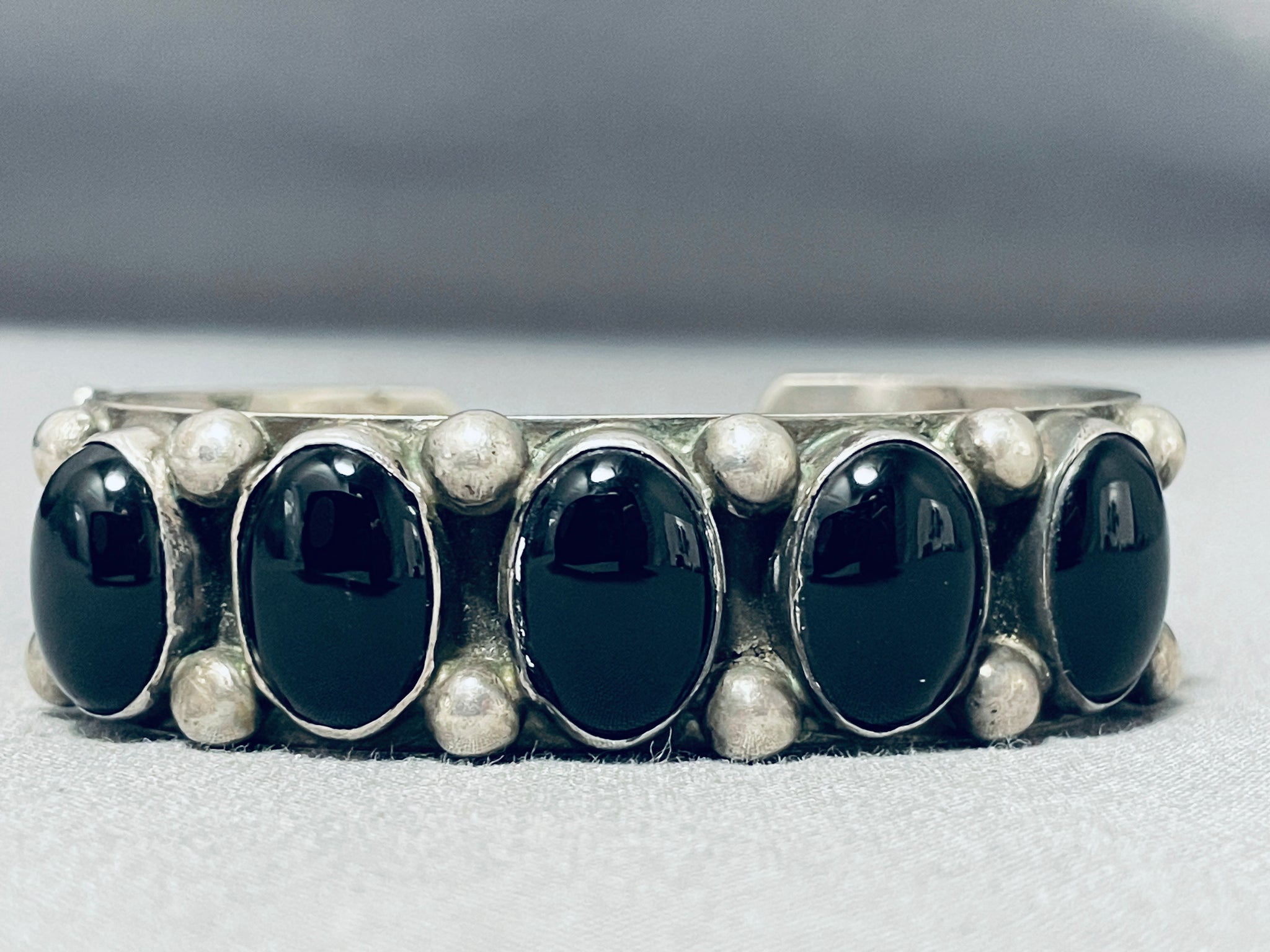 Excellent Signed Vintage Native American Navajo Black Onyx Sterling Silver Bracelet