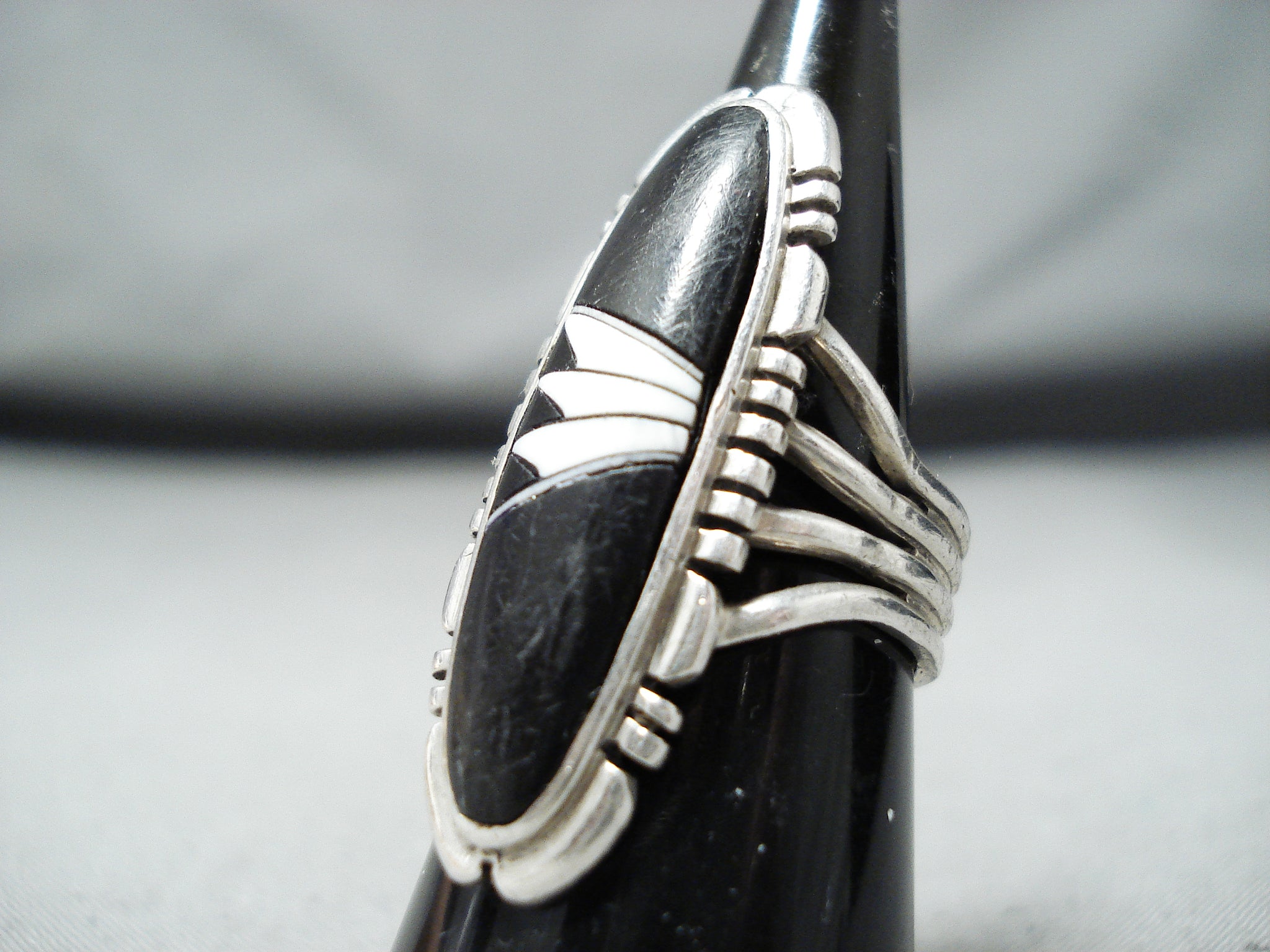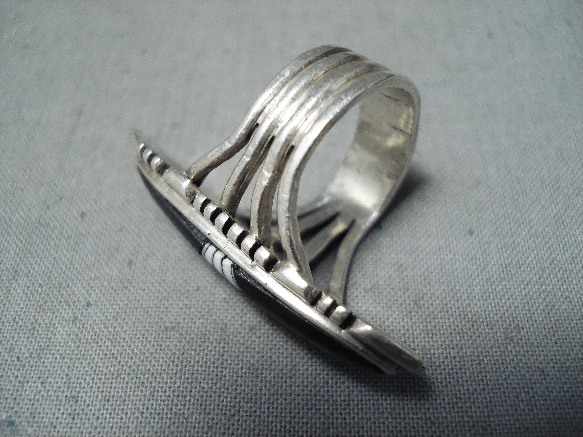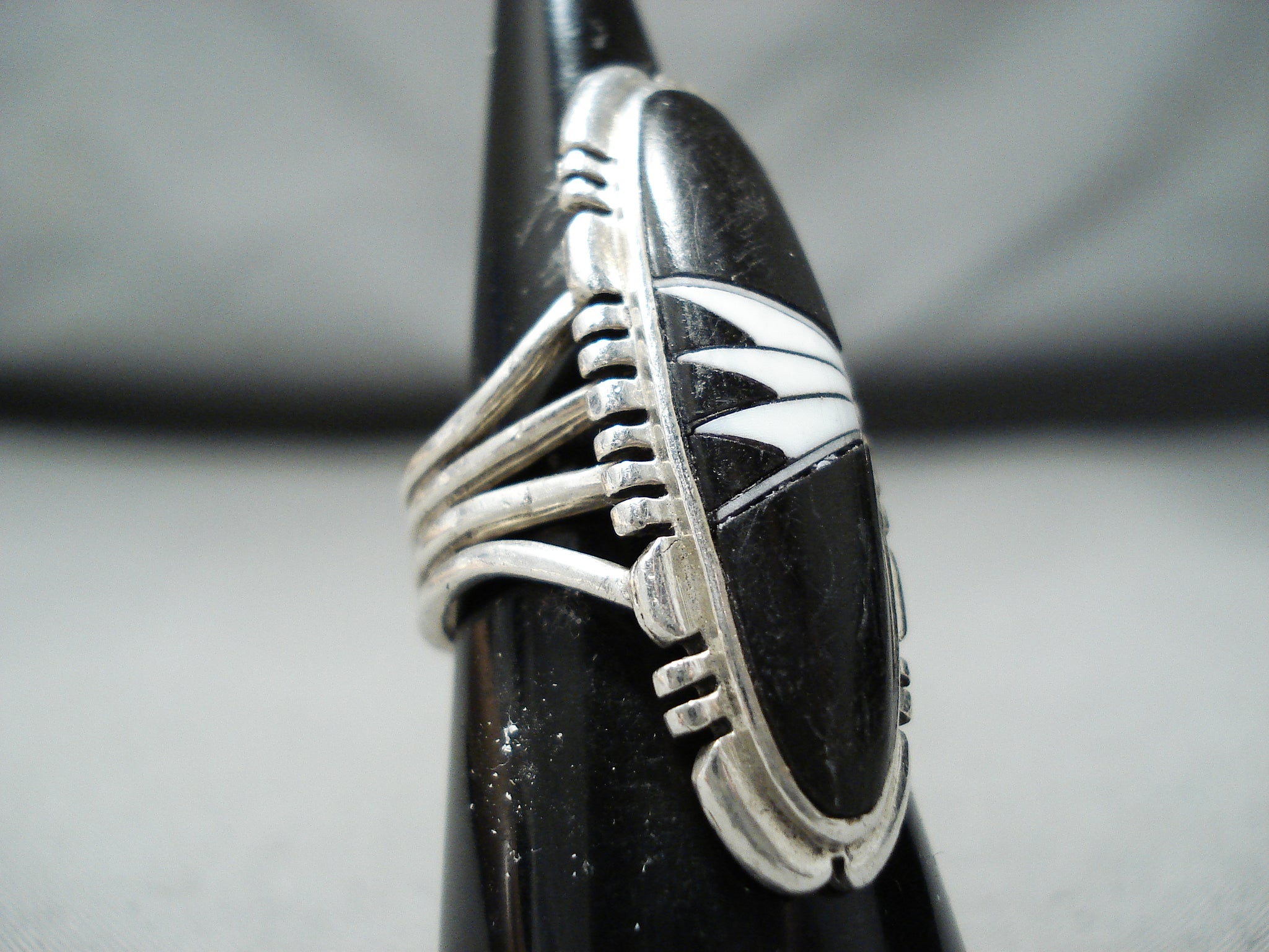 Excellent Vintage Native American Navajo Jet Stone Sterling Silver Ring