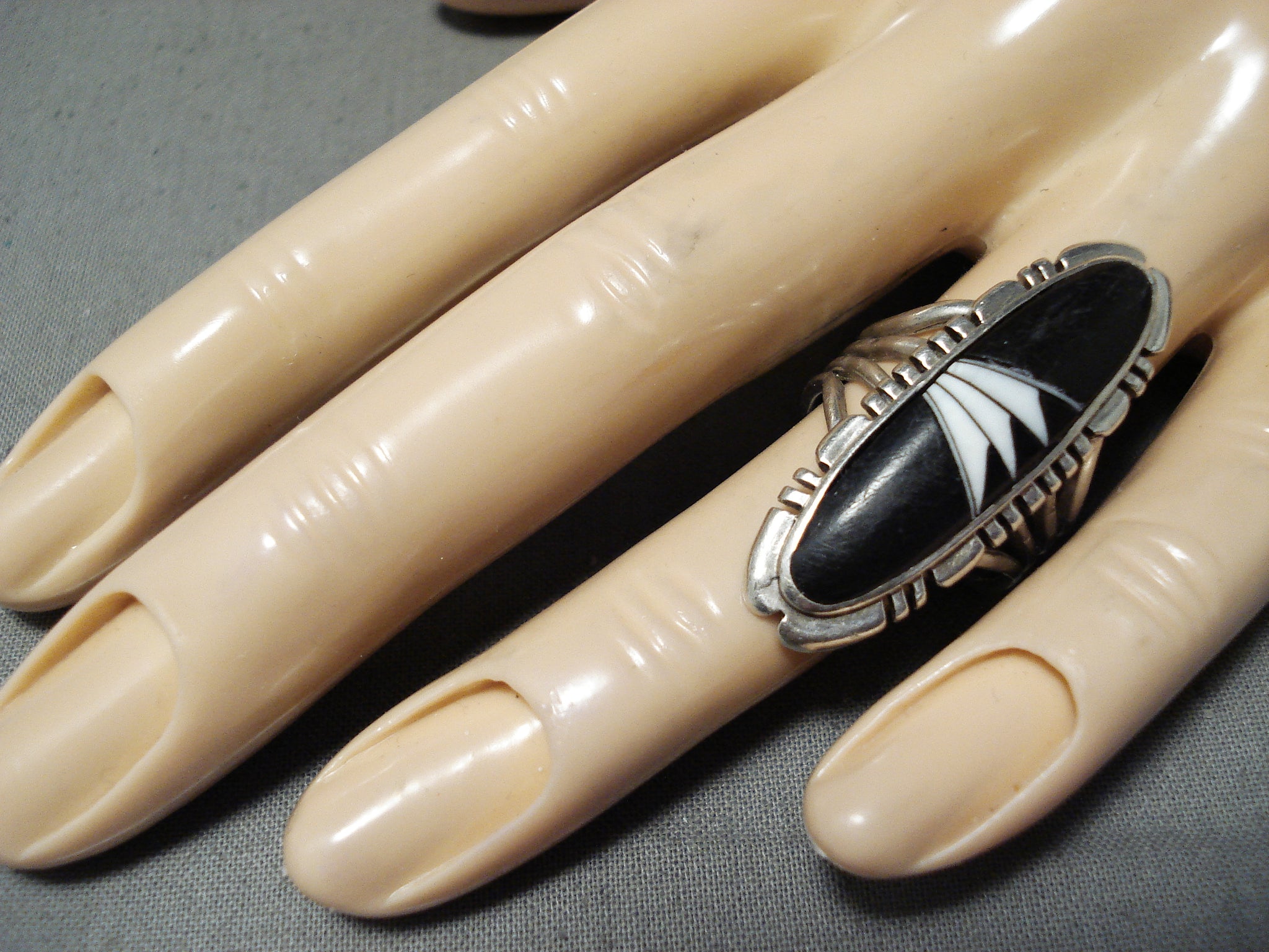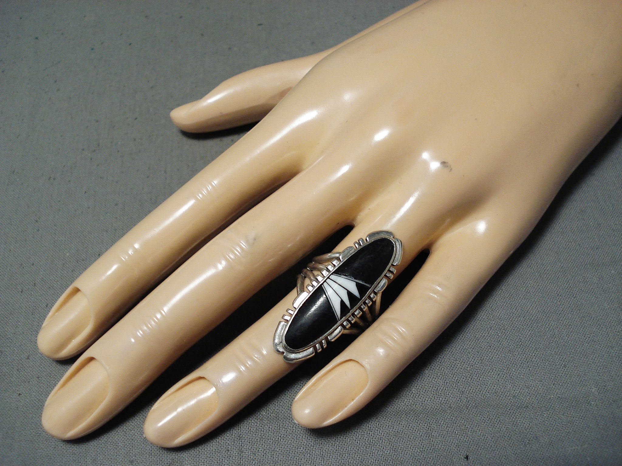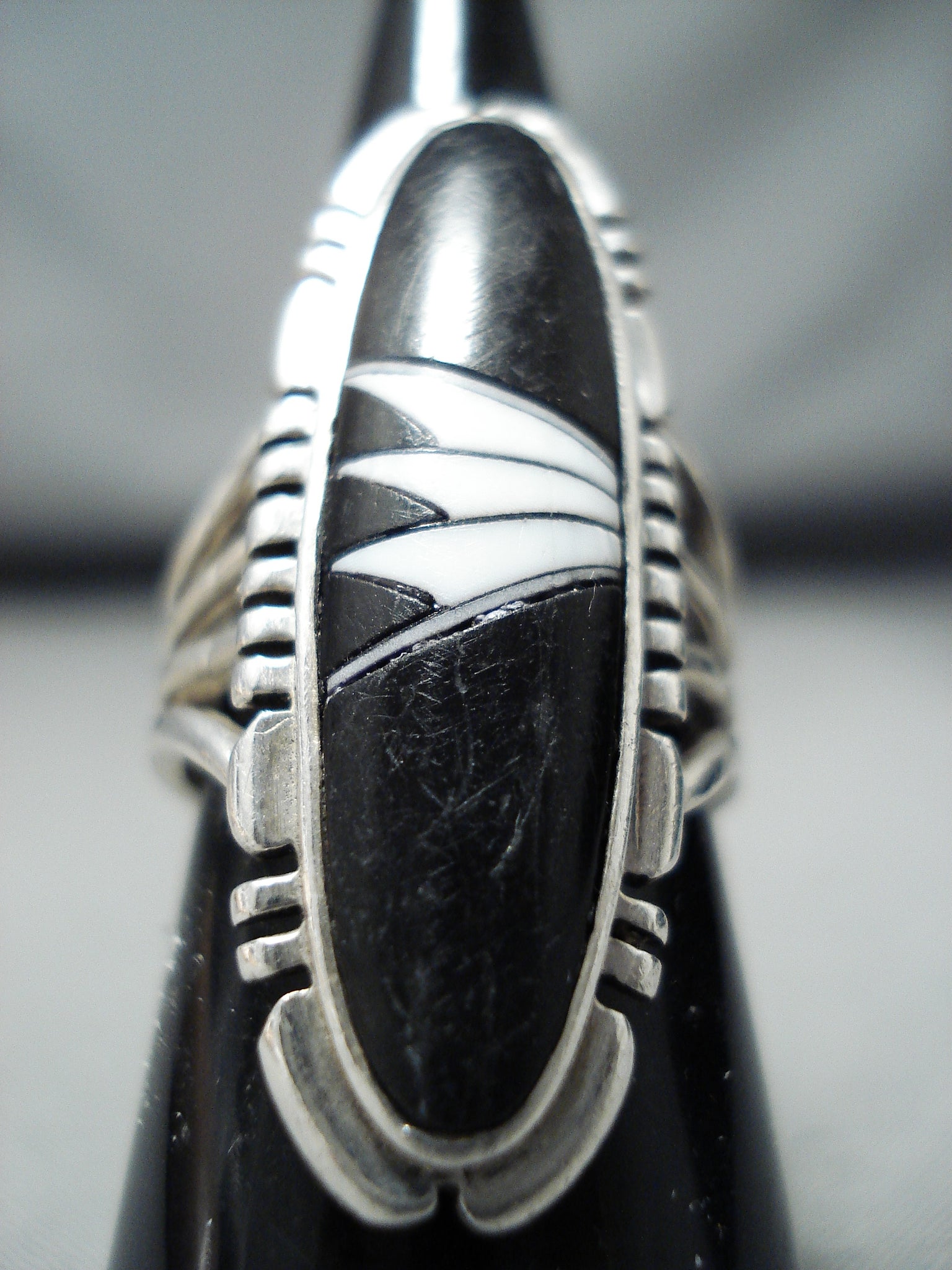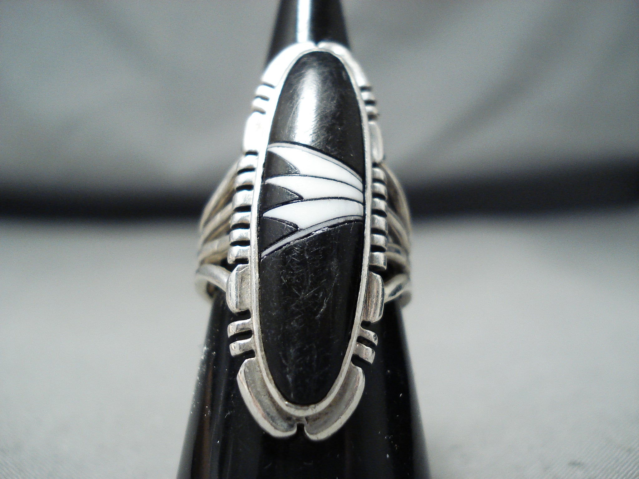 Excellent Vintage Native American Navajo Jet Stone Sterling Silver Ring