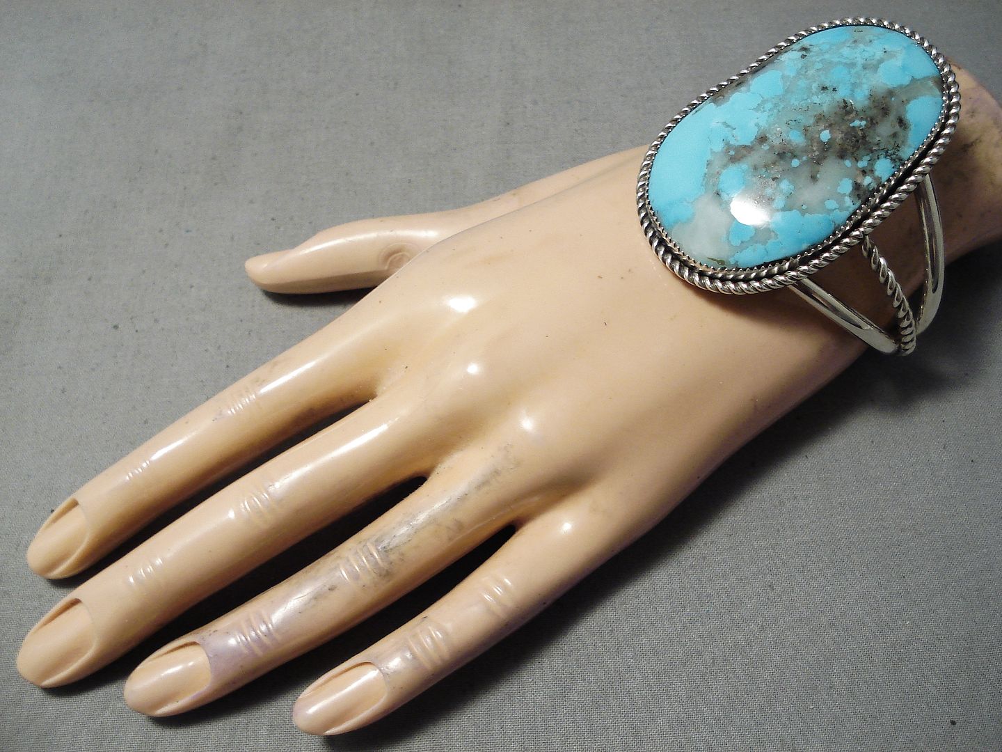 Excellent Vintage Native American Navajo Pilot Mountain Turquoise Sterling Silver Bracelet Old