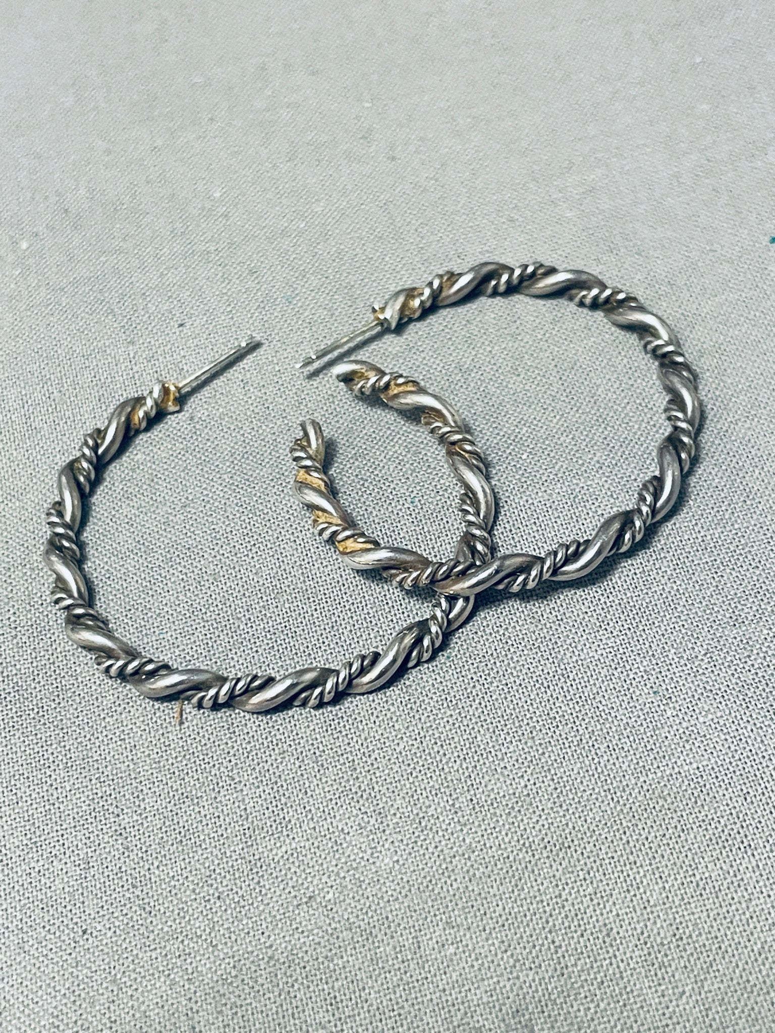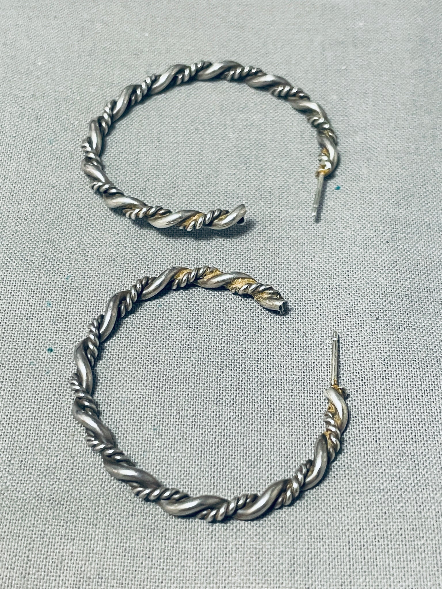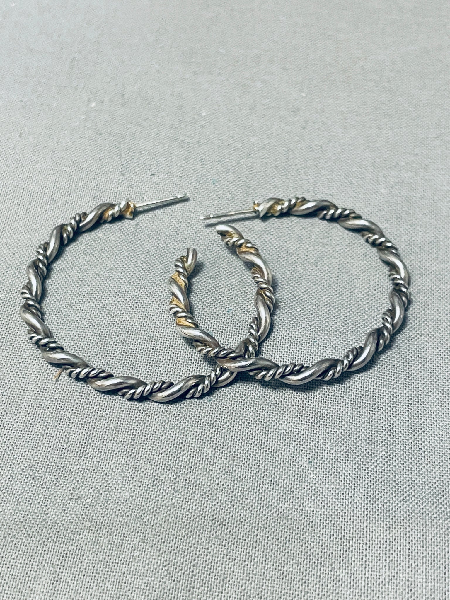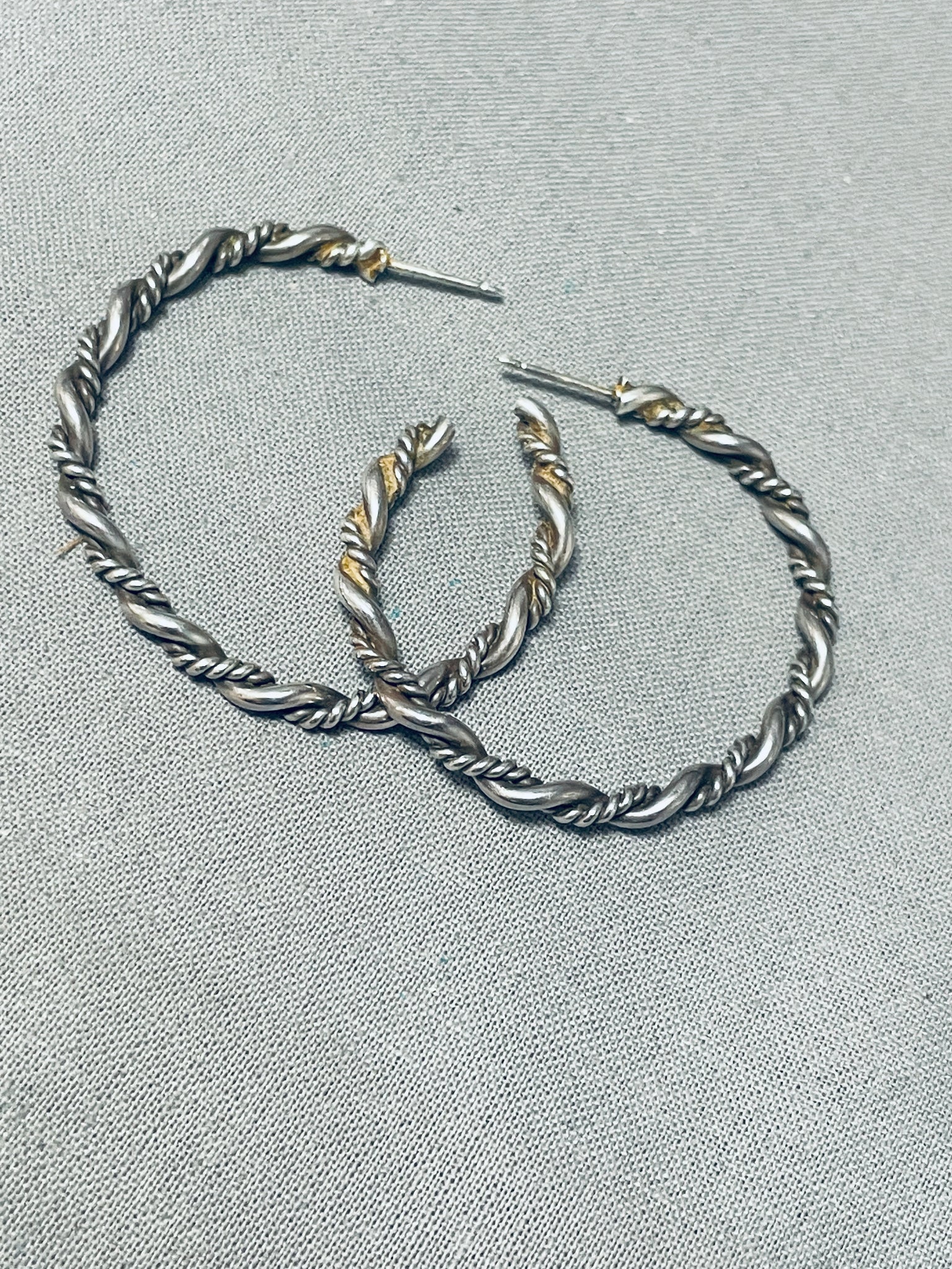Excellent Vintage Native American Navajo Sterling Silver Twist Rope Hoop Earrings