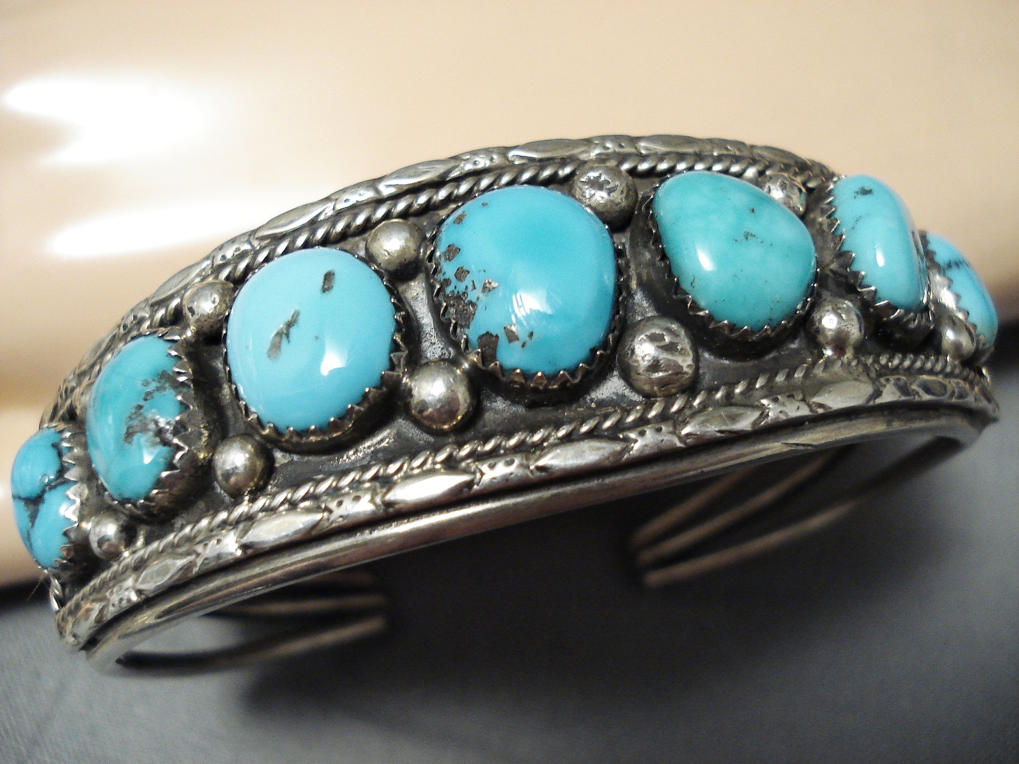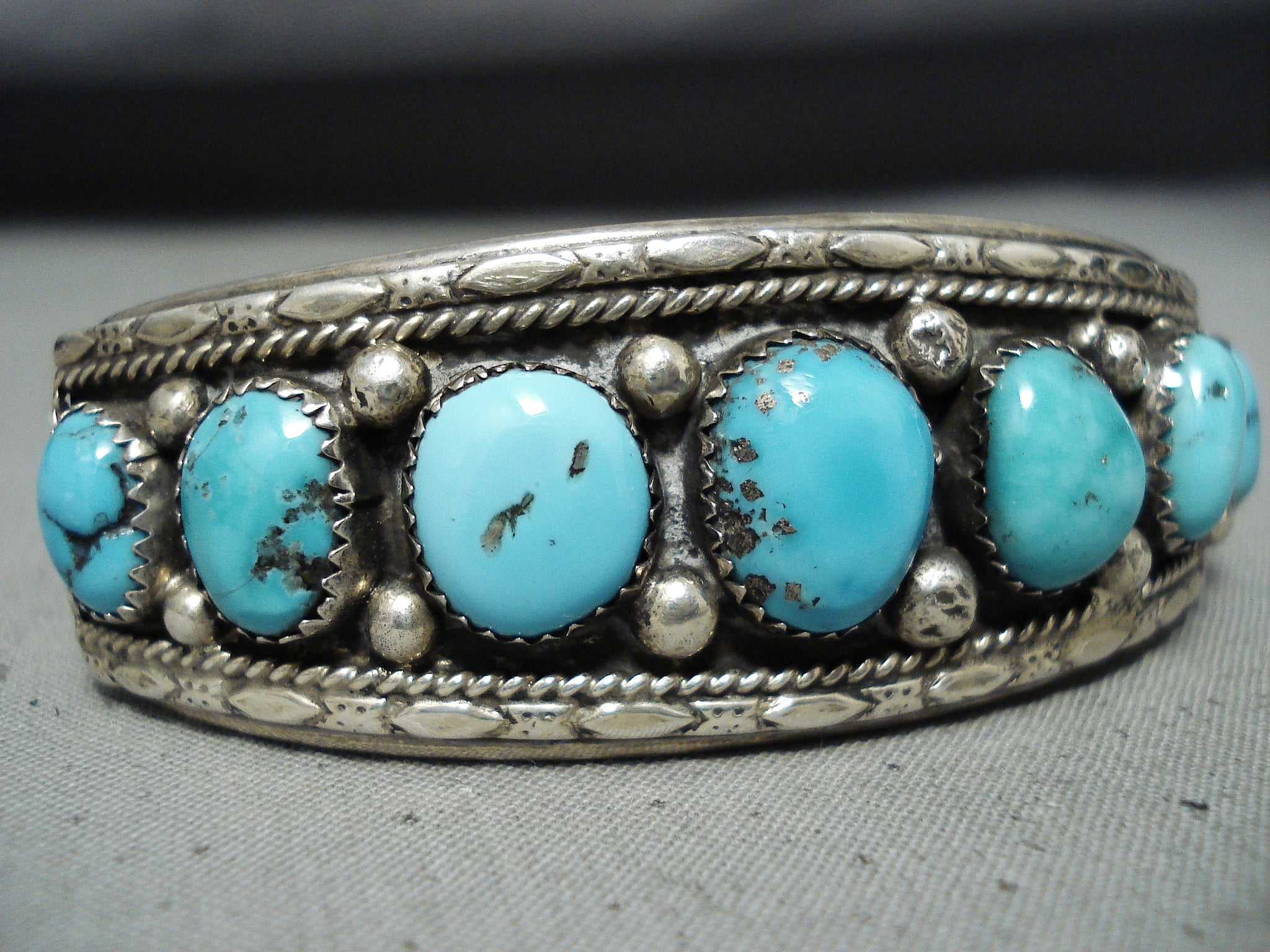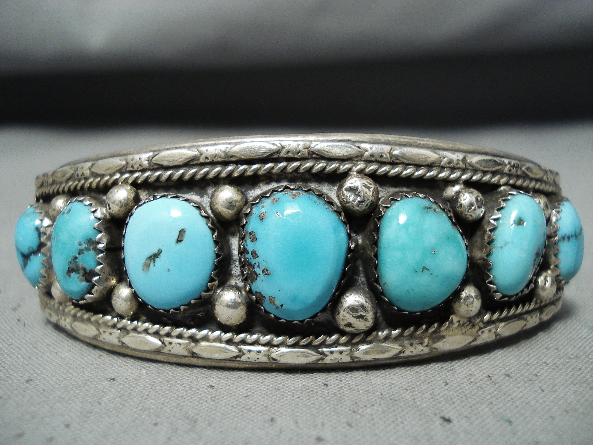 Exceptional Native American Navajo Kingman Turquoise Sterling Silver Bracelet