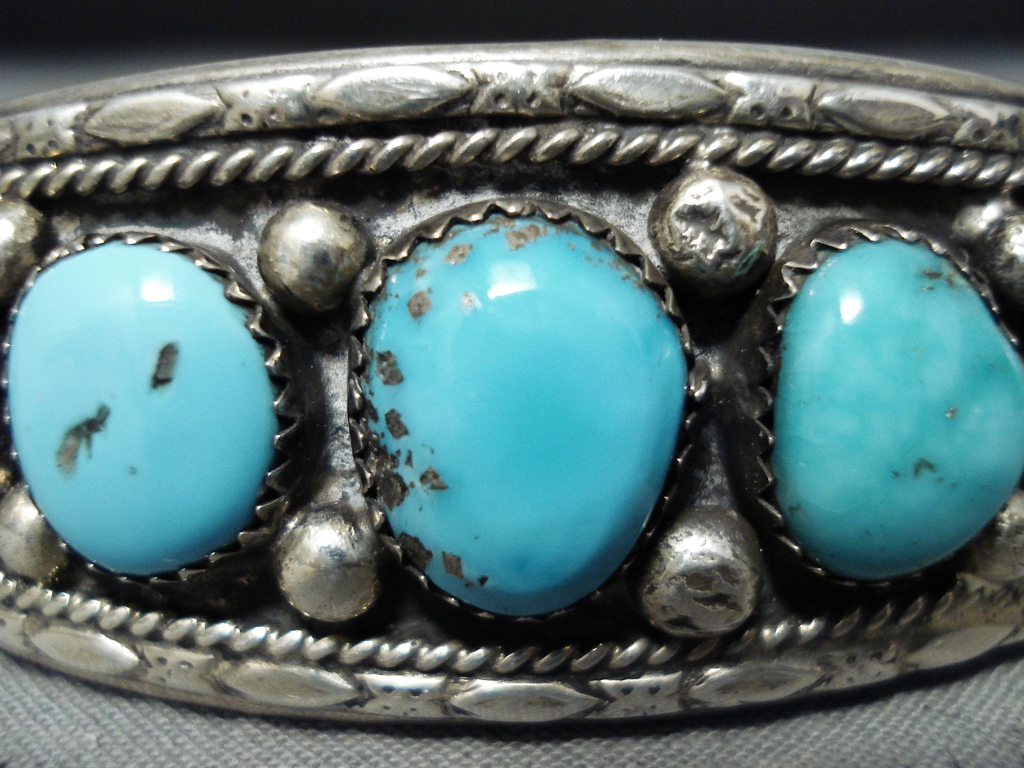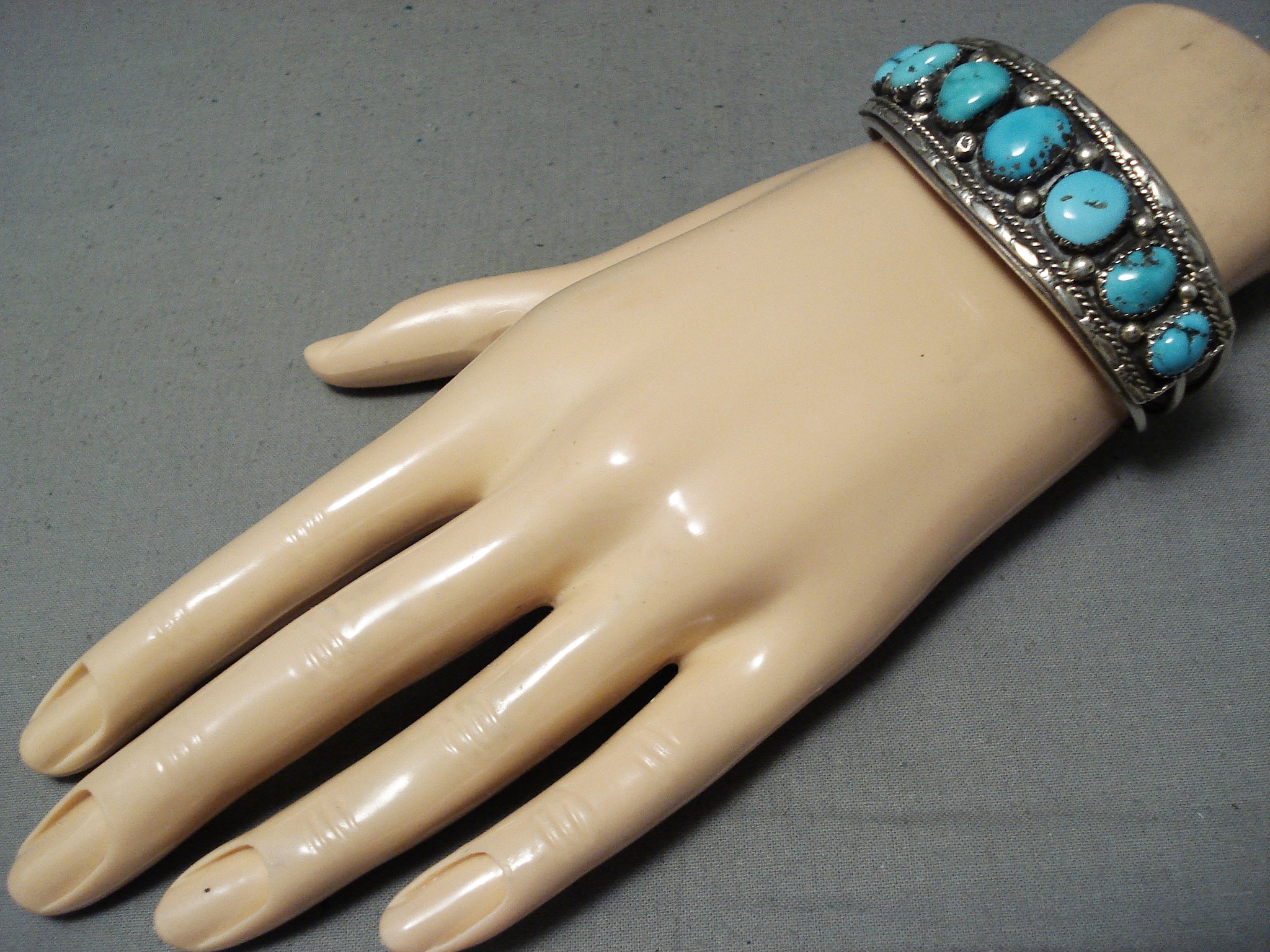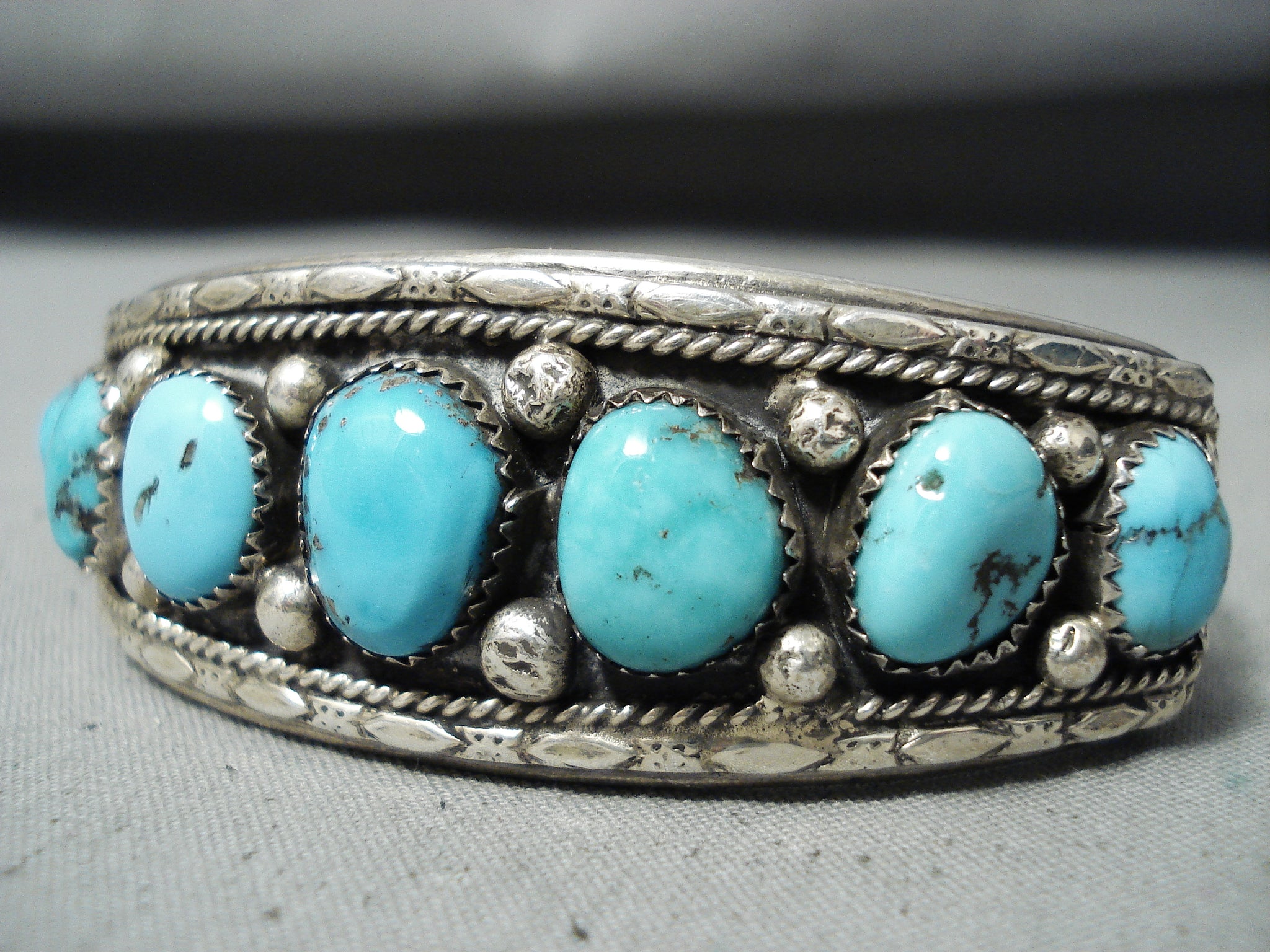 Exceptional Native American Navajo Kingman Turquoise Sterling Silver Bracelet