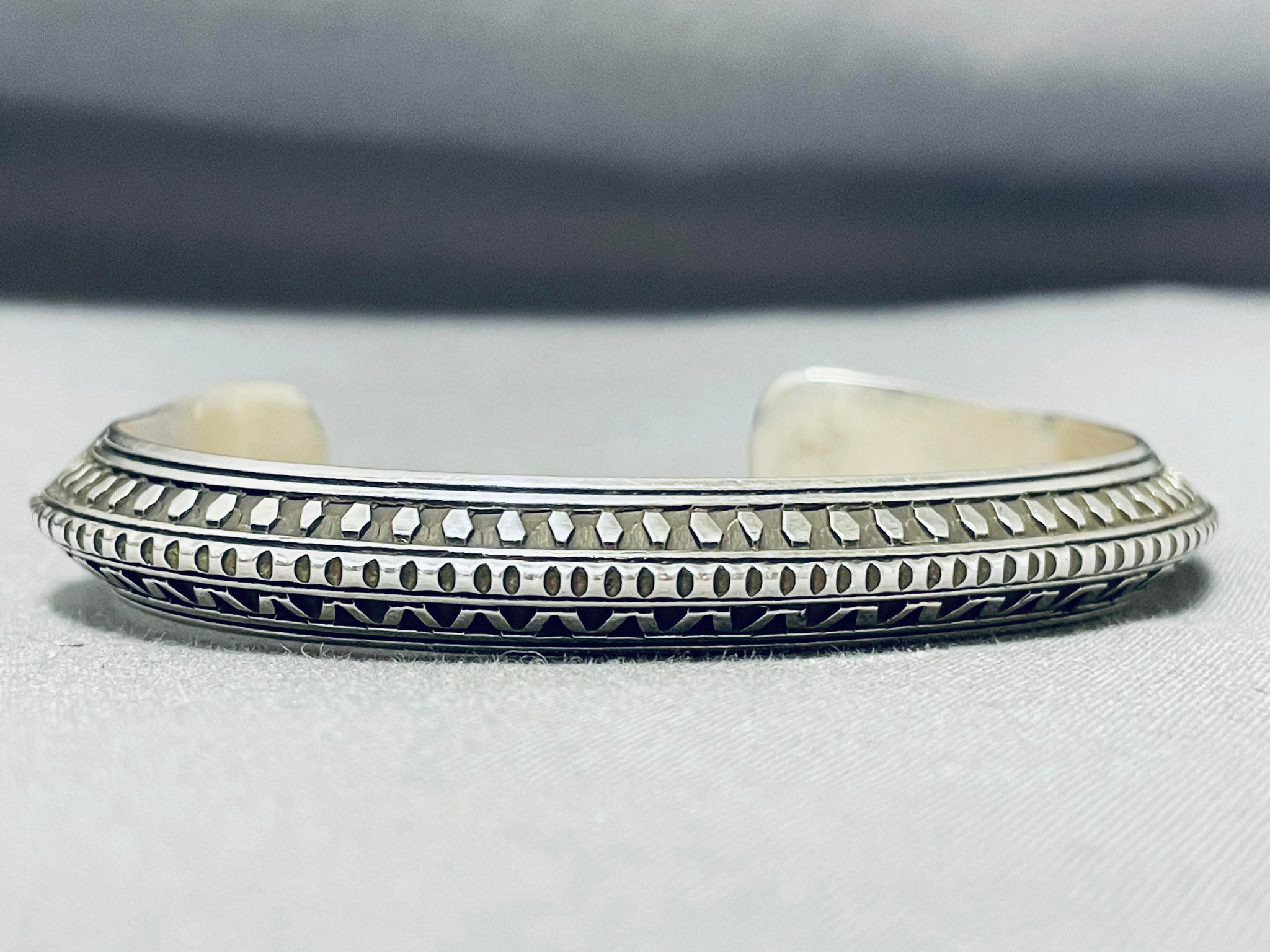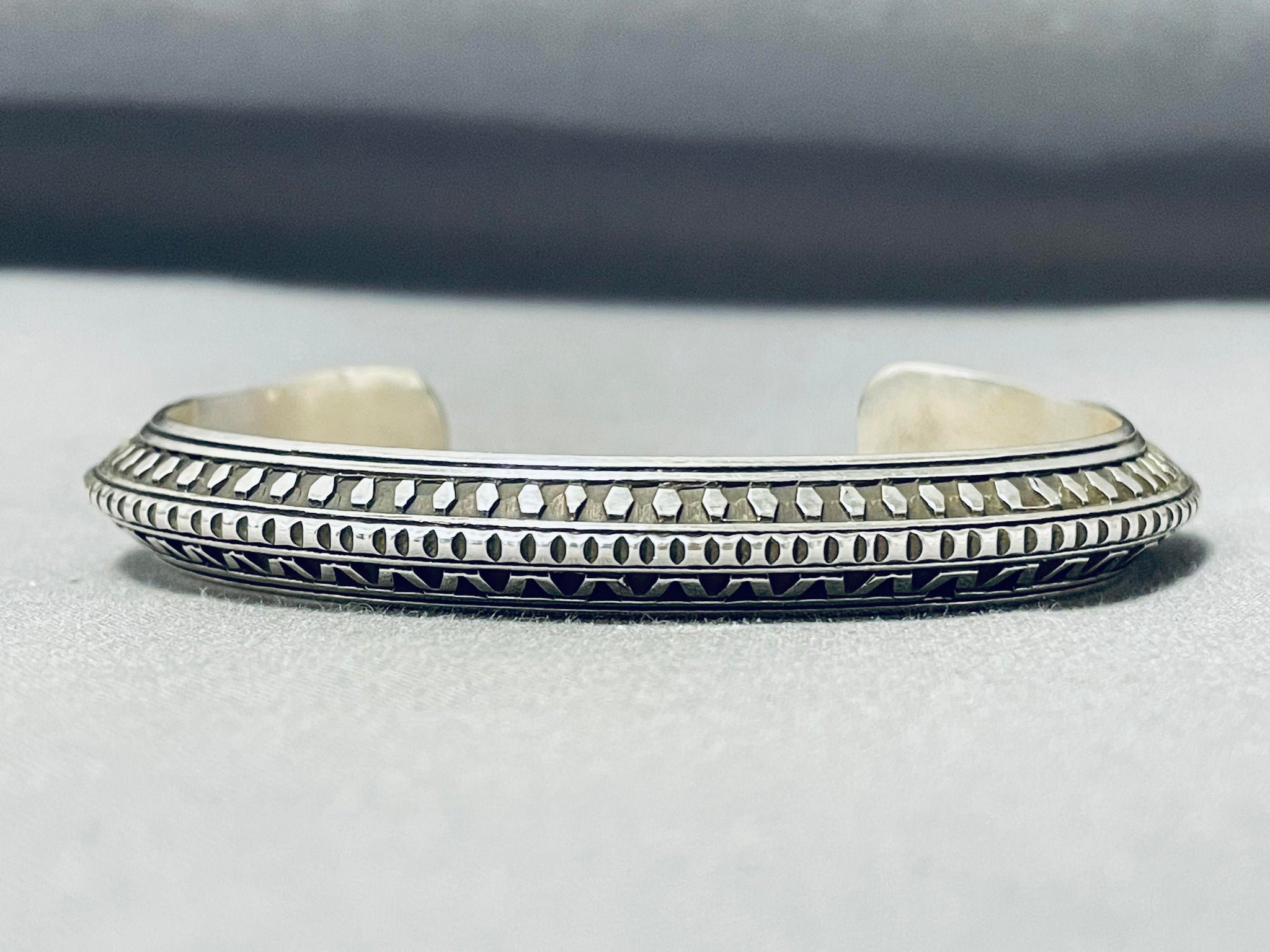 Exceptional Native American Navajo Sterling Silver Bracelet Signed