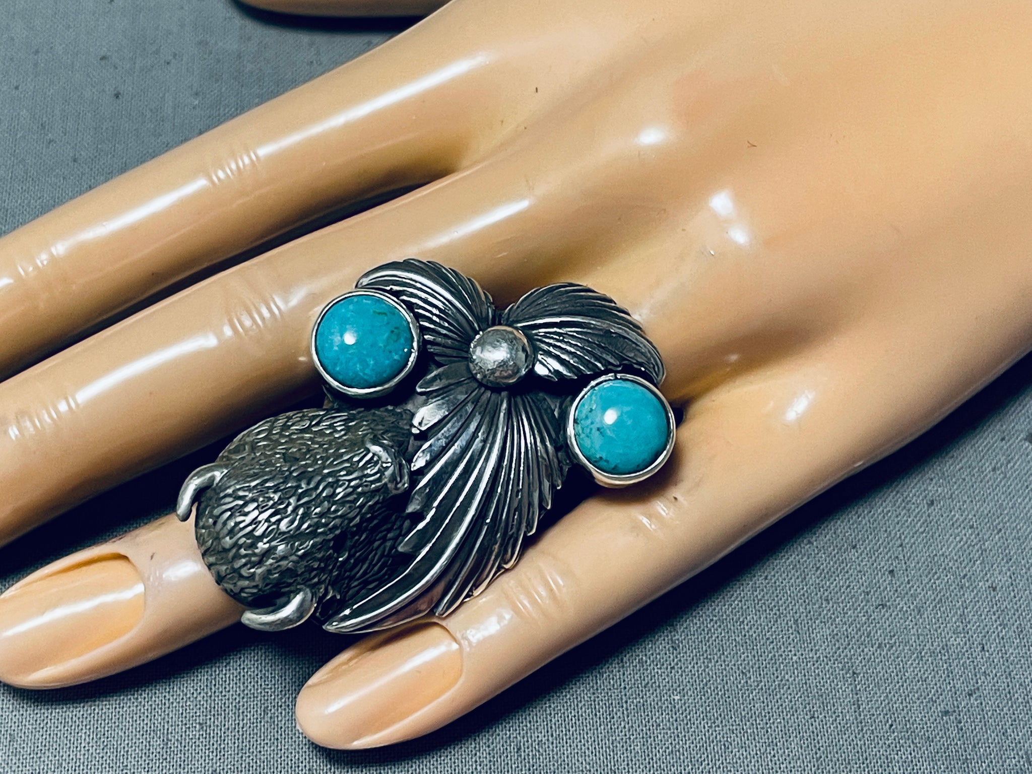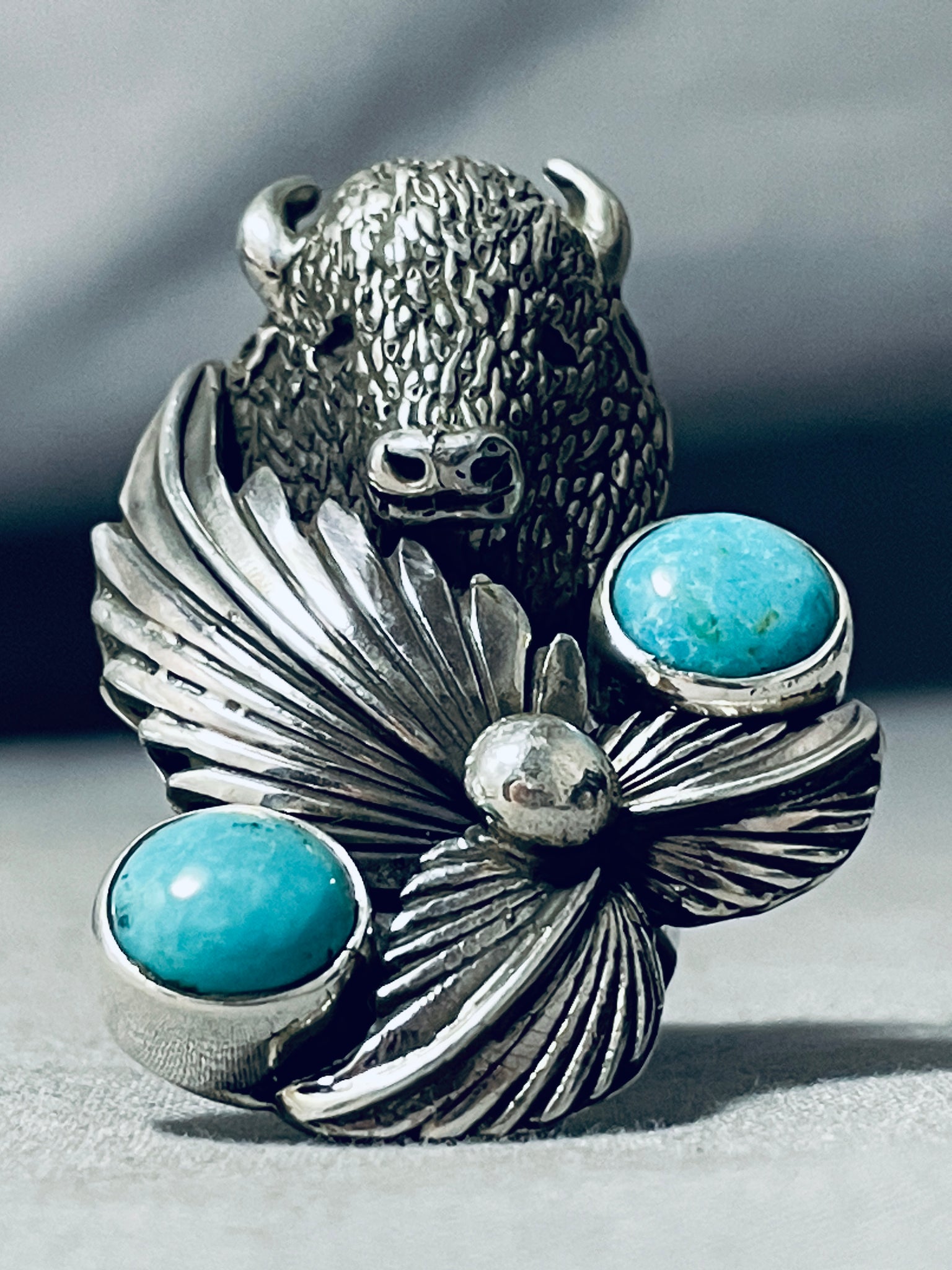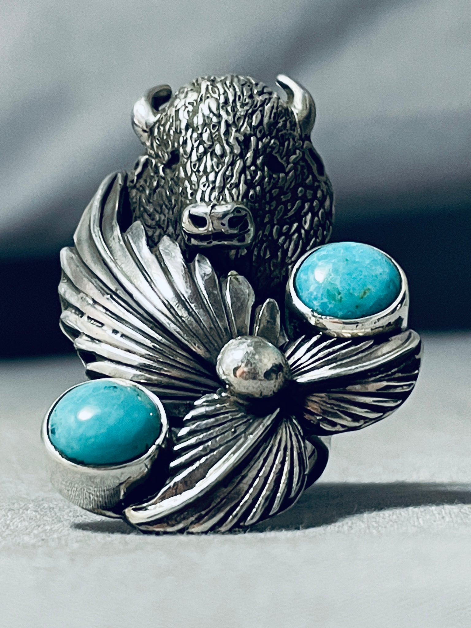 Exceptional San Felipe Blue Gem Turquoise Sterling Silver Buffalo Ring