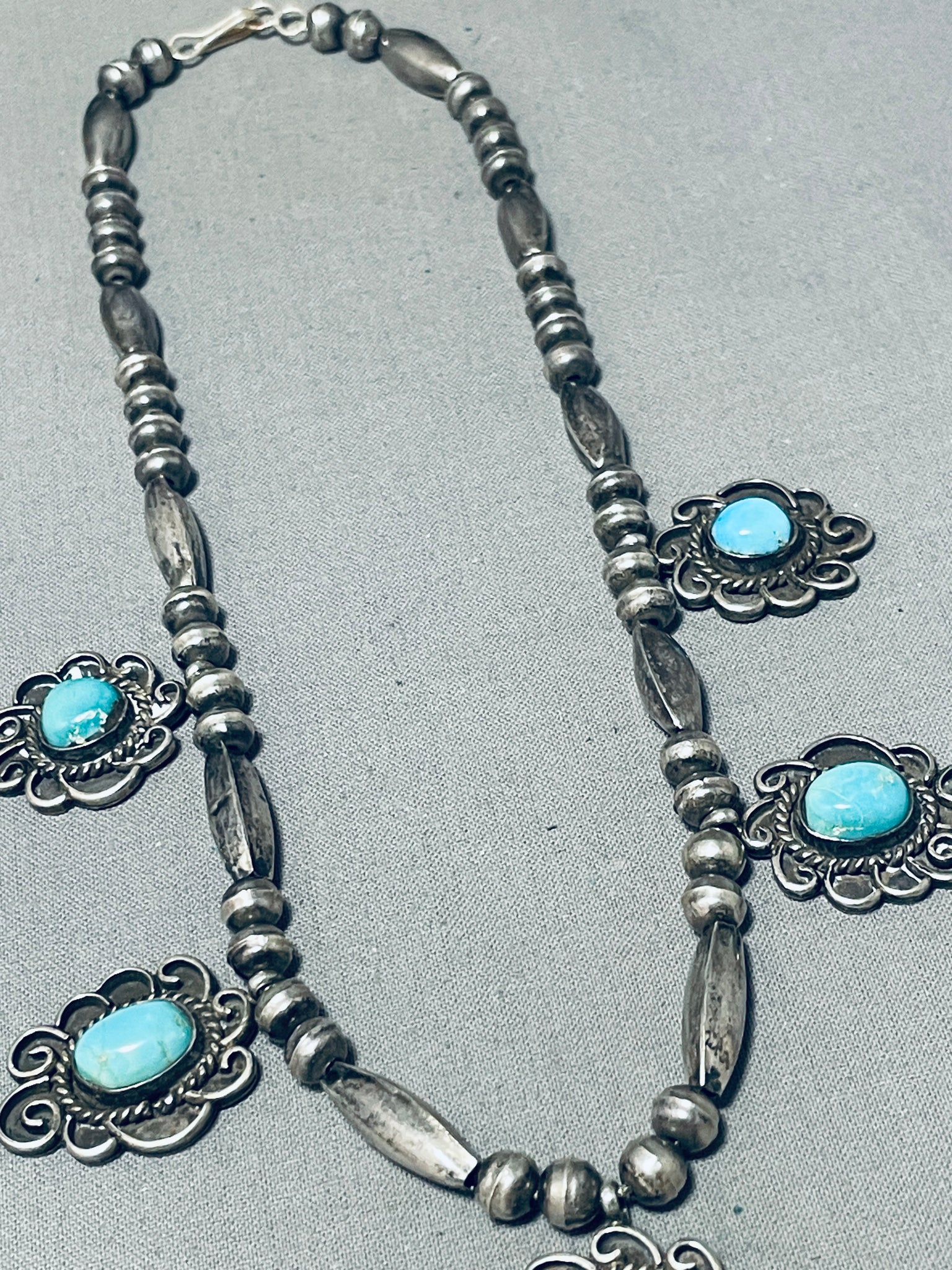 Exceptional Vintage Native American Navajo Bisbee+ Turquoise Sterling Silver Necklace