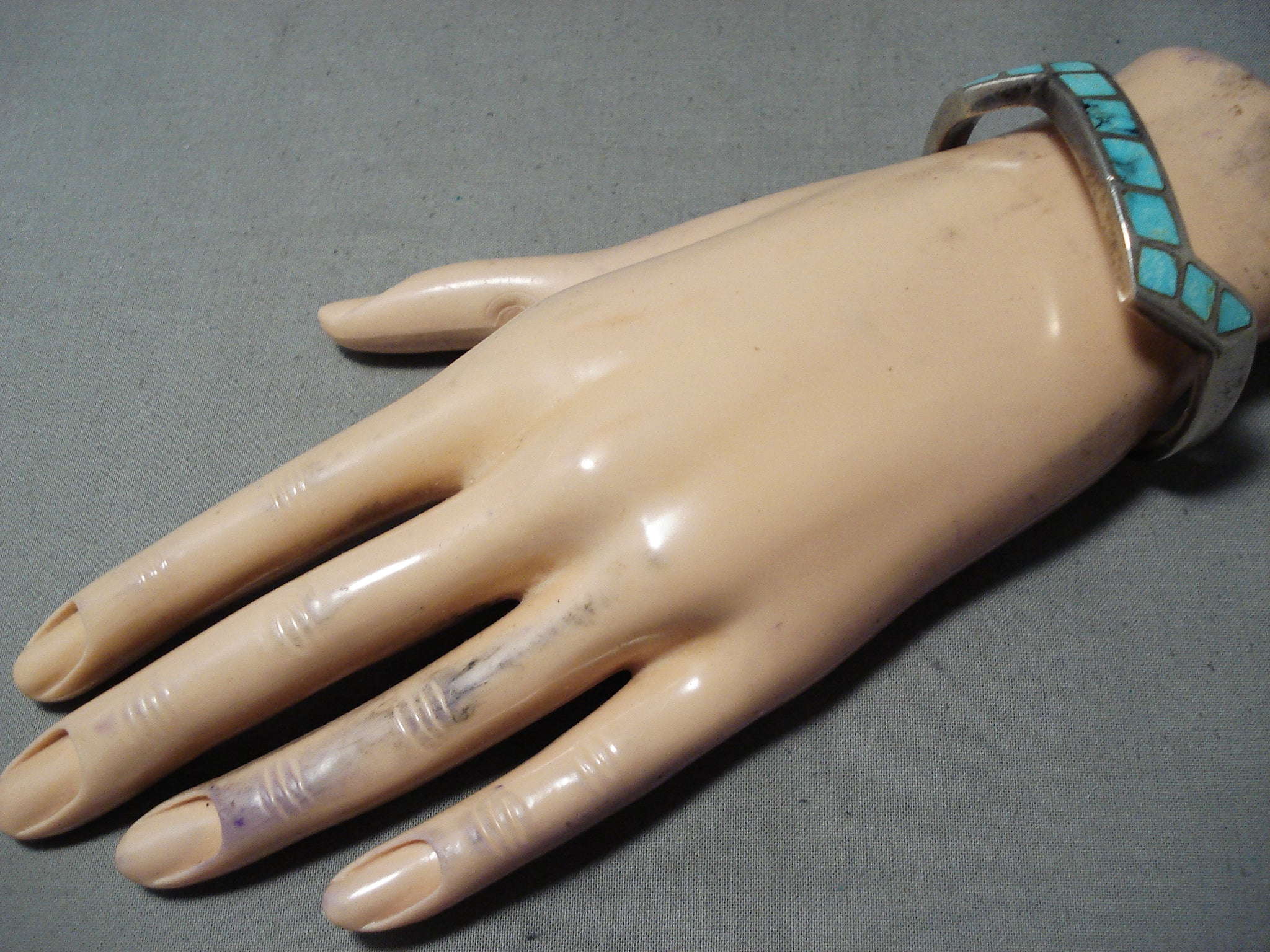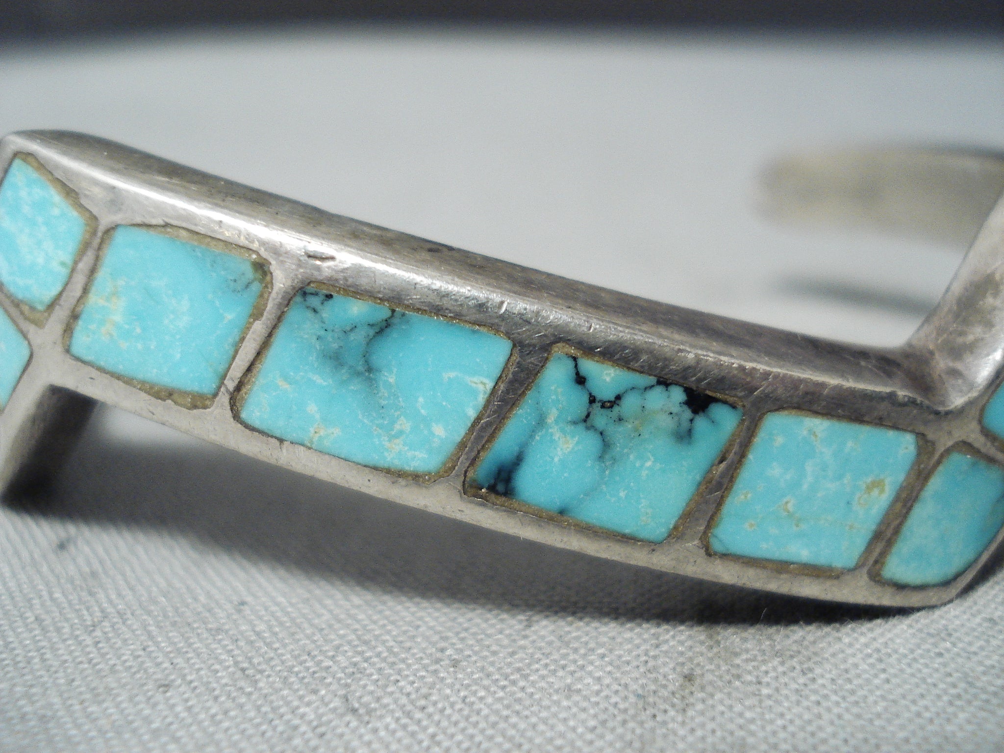 Exceptional Vintage Native American Navajo Blue Diamond Turquoise Sterling Silver Bracelet Old