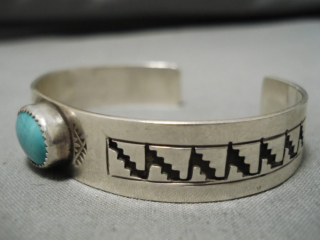 Exceptional Vintage Native American Navajo Green Turquoise Sterling Silver Bracelet