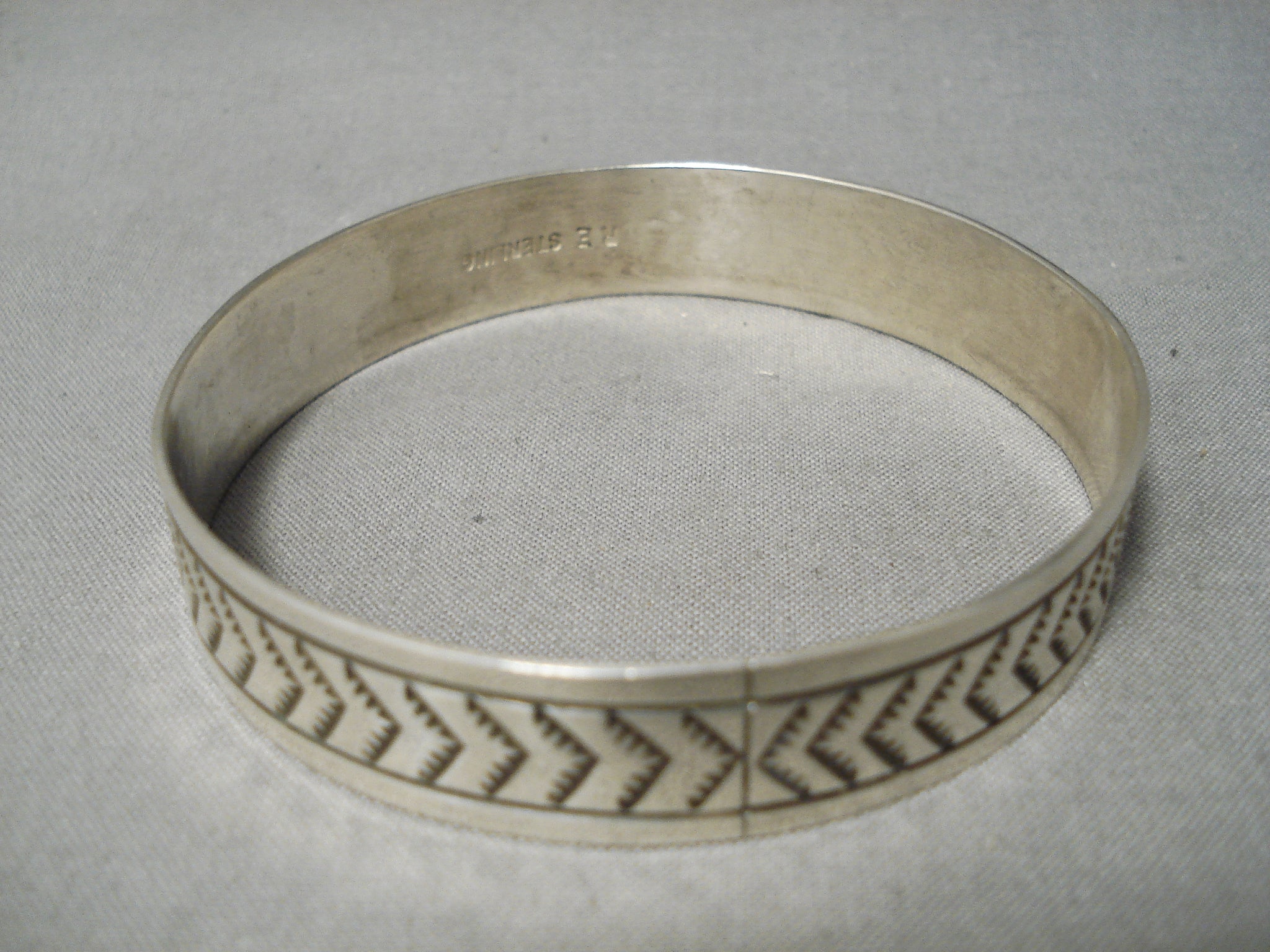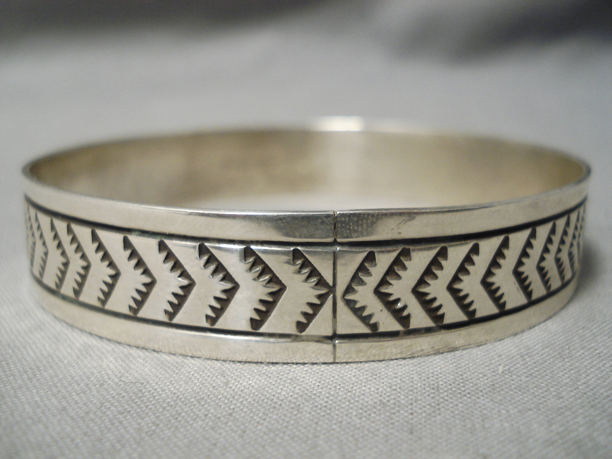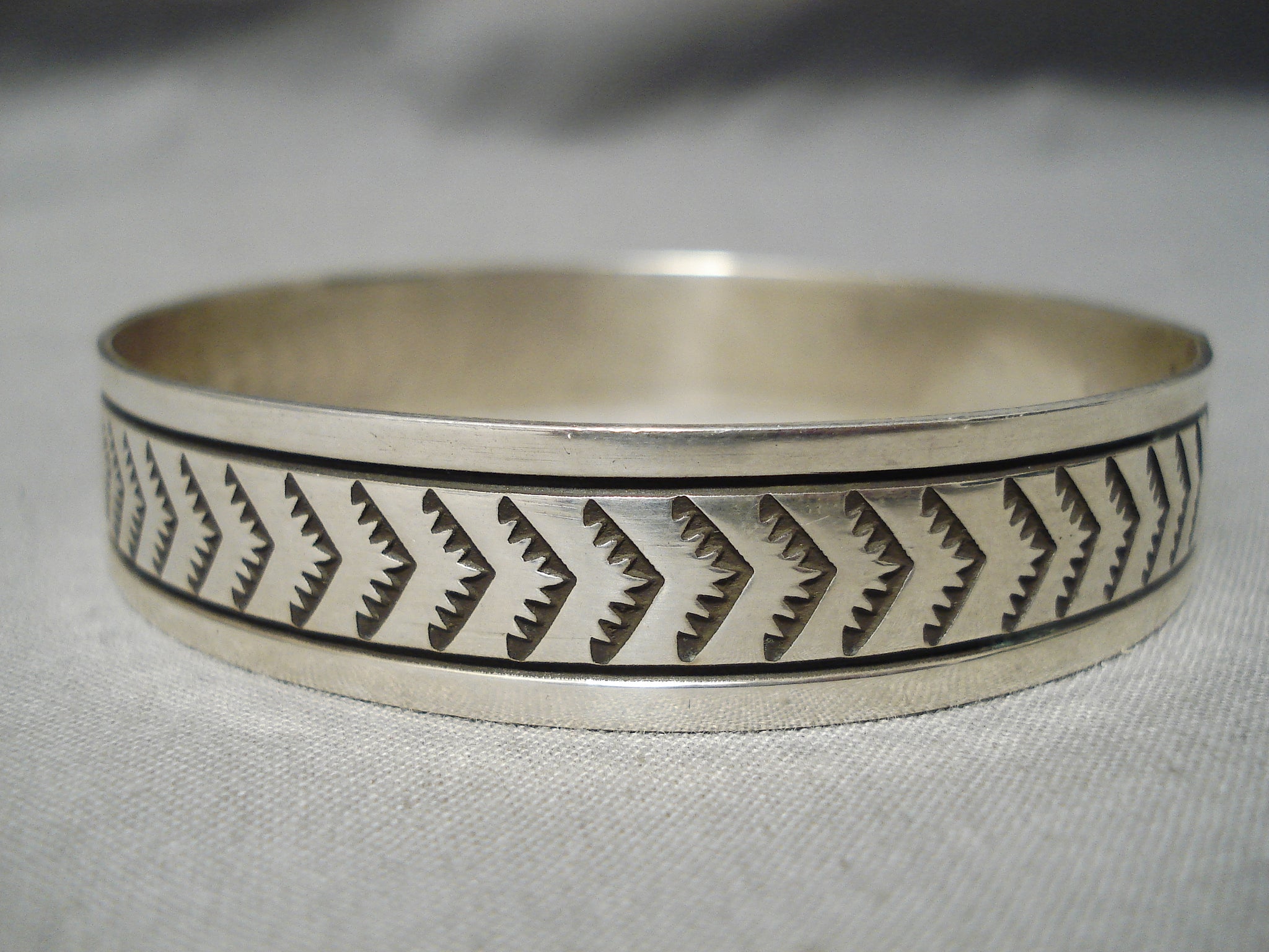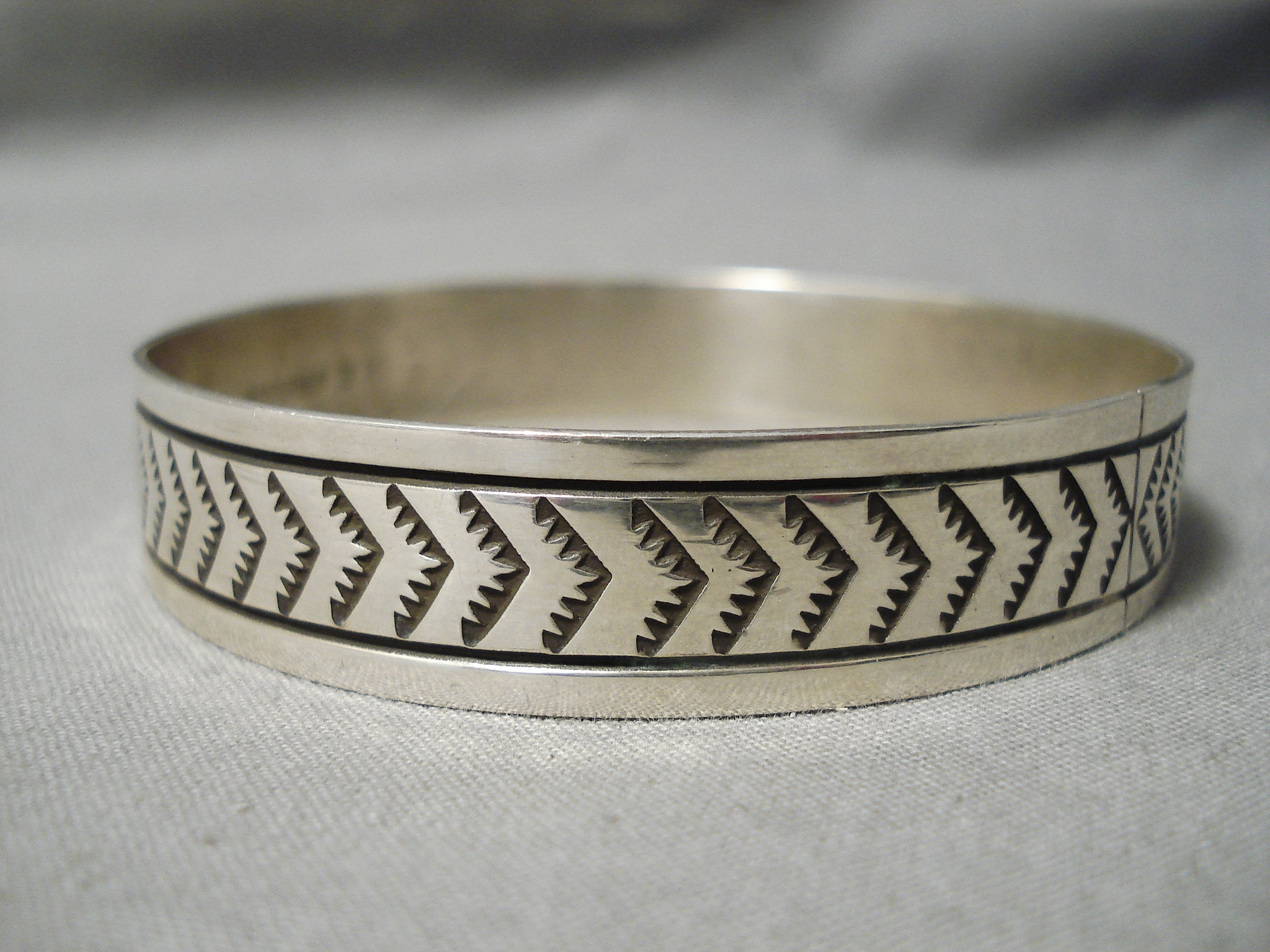 Exceptional Vintage Native American Navajo Hand Tooled Sterling Silver Bangle Bracelet