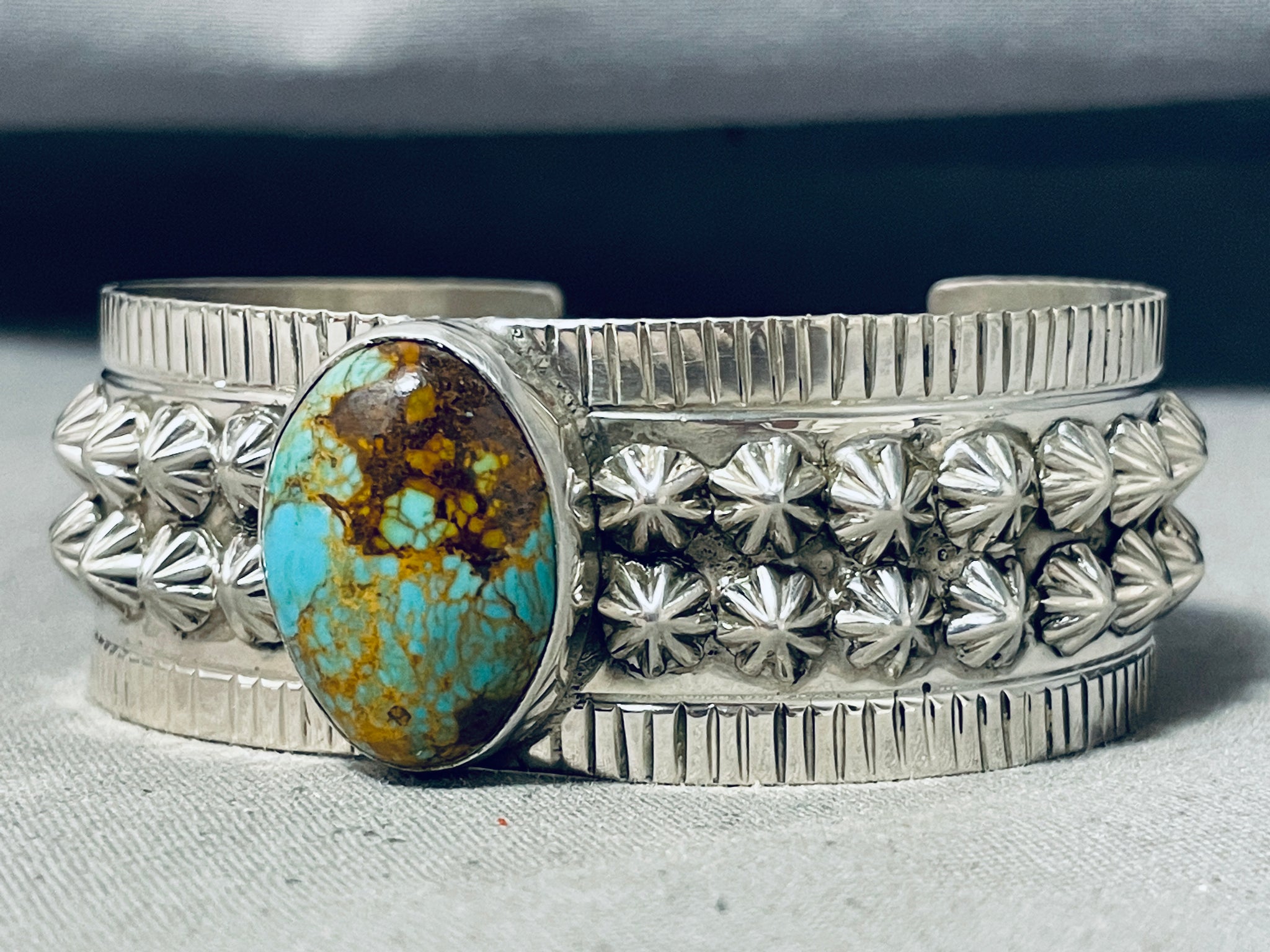 Exceptional Vintage Native American Navajo Royston Turquoise Sterling Silver Bracelet