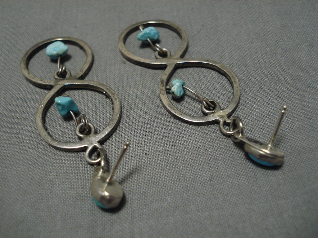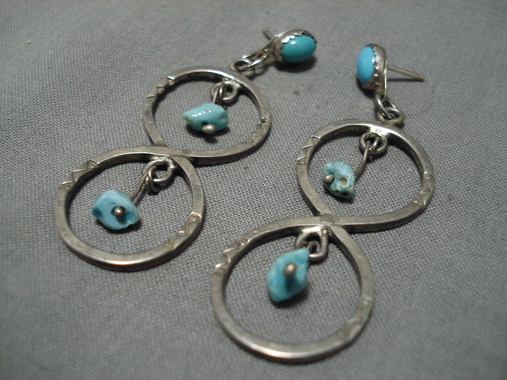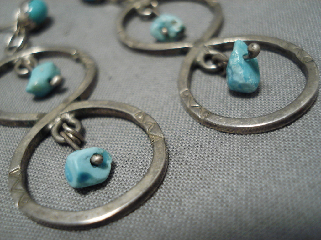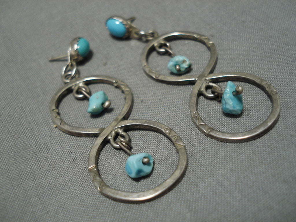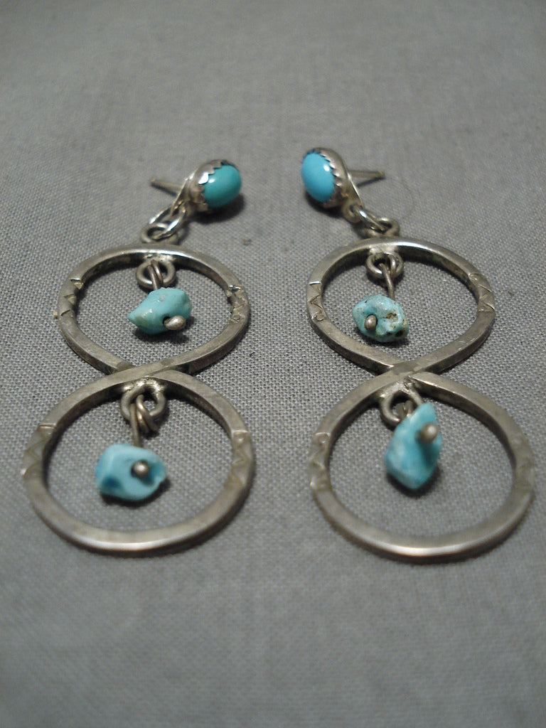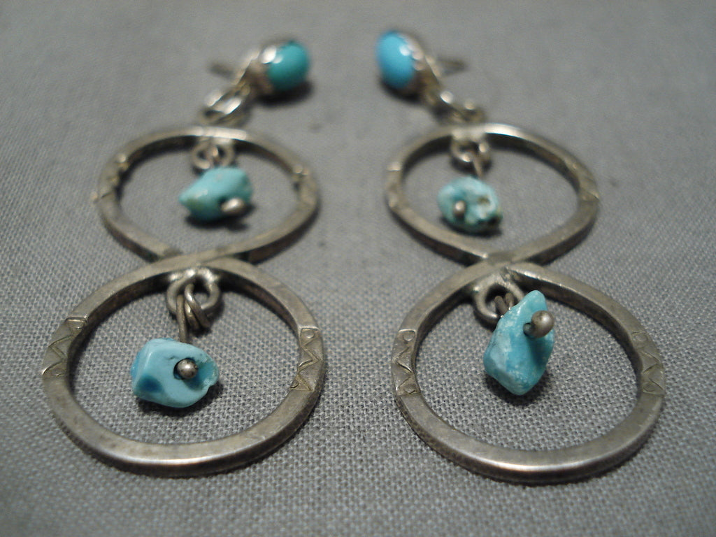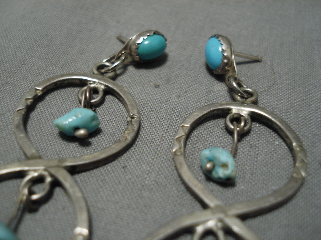 Exceptional Vintage Native American Navajo Turquoise Nugget Sterling Silver Earrings