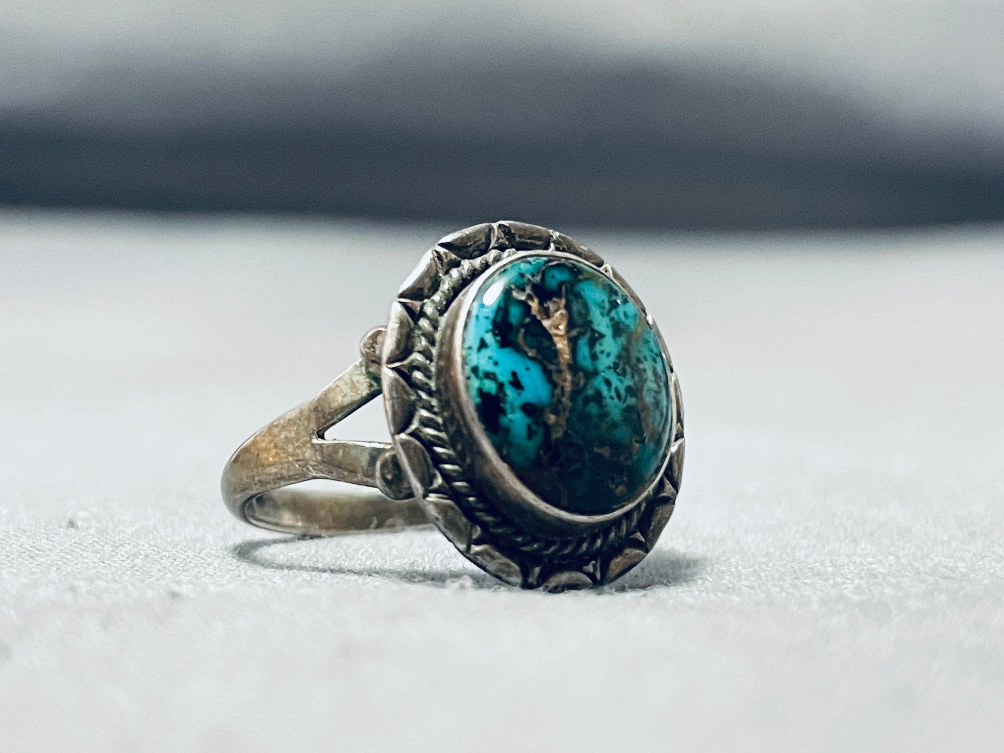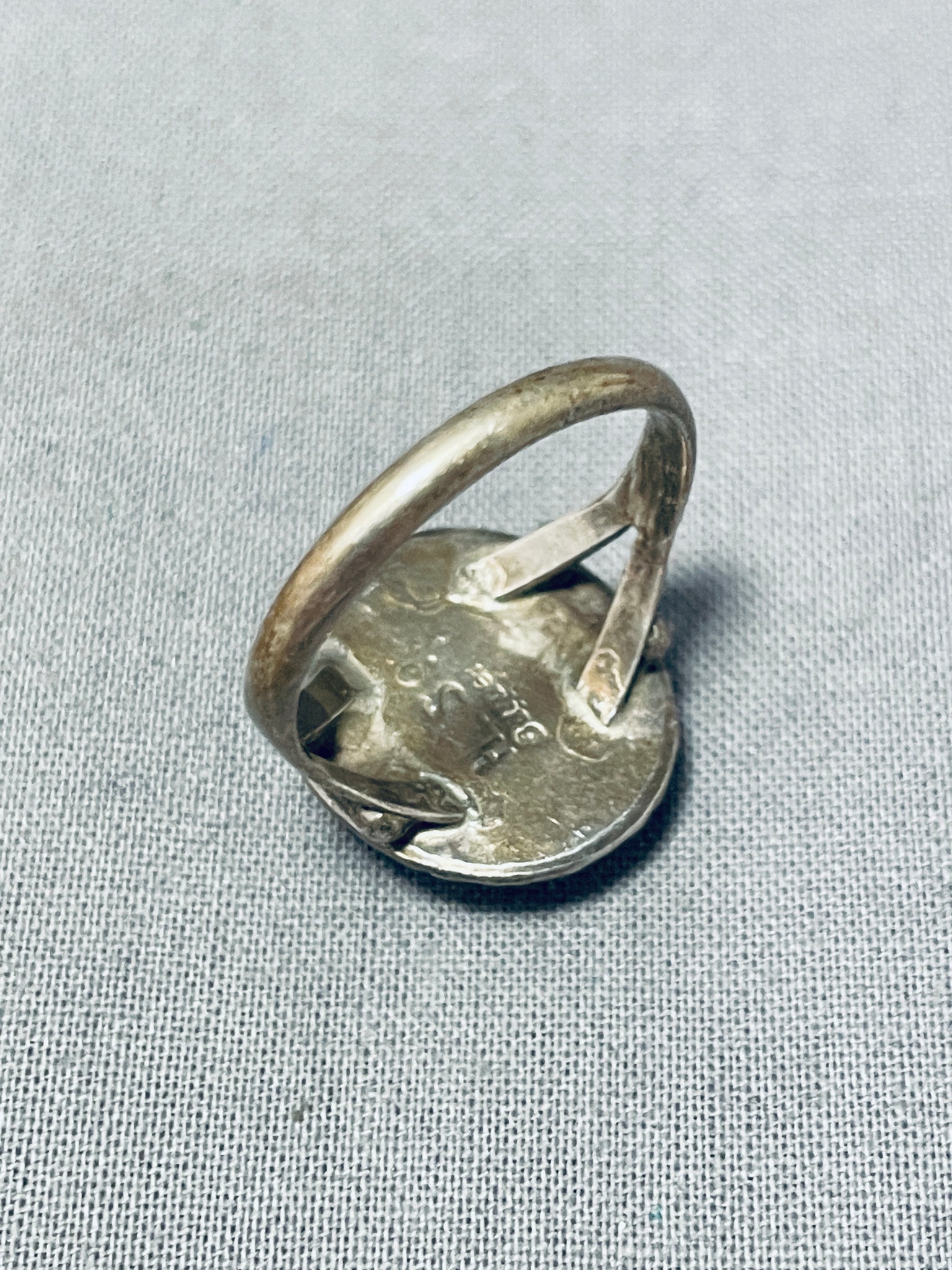 Exceptional Vintage Native American Navajo Turquoise Sterling Silver Ring Signed H. Smith