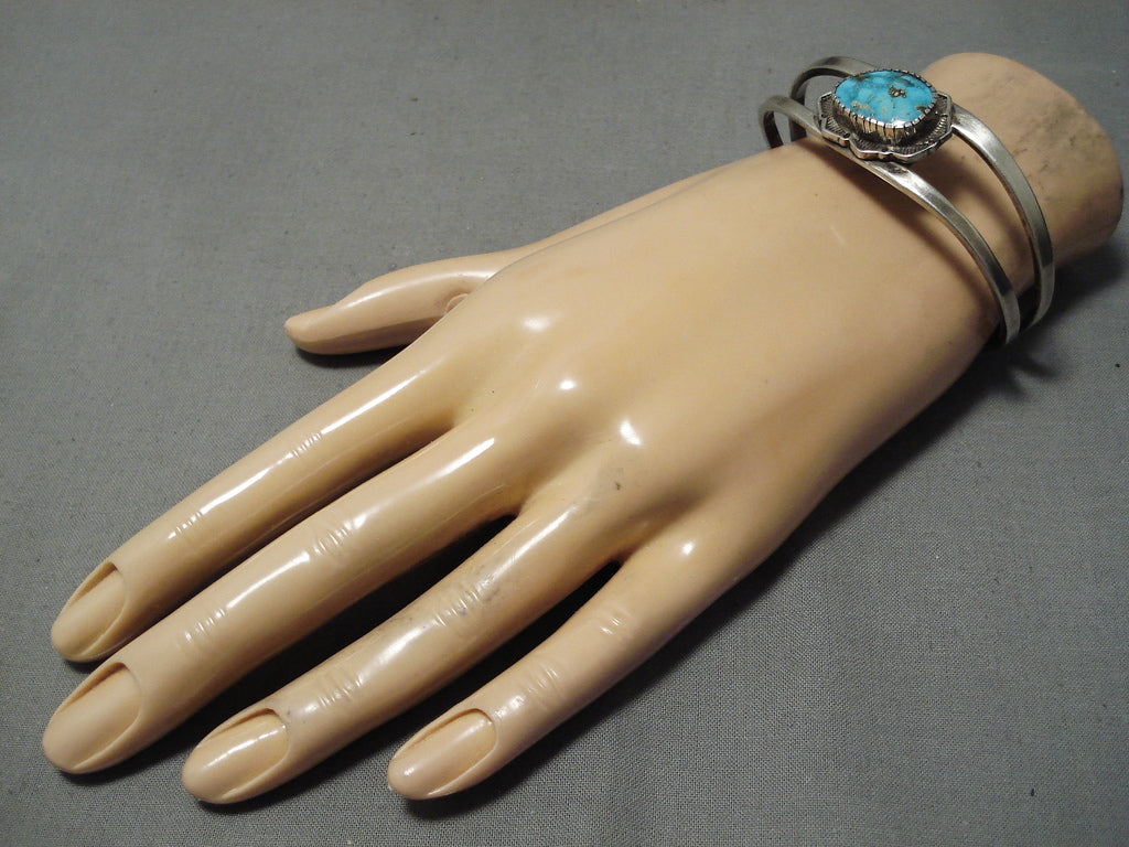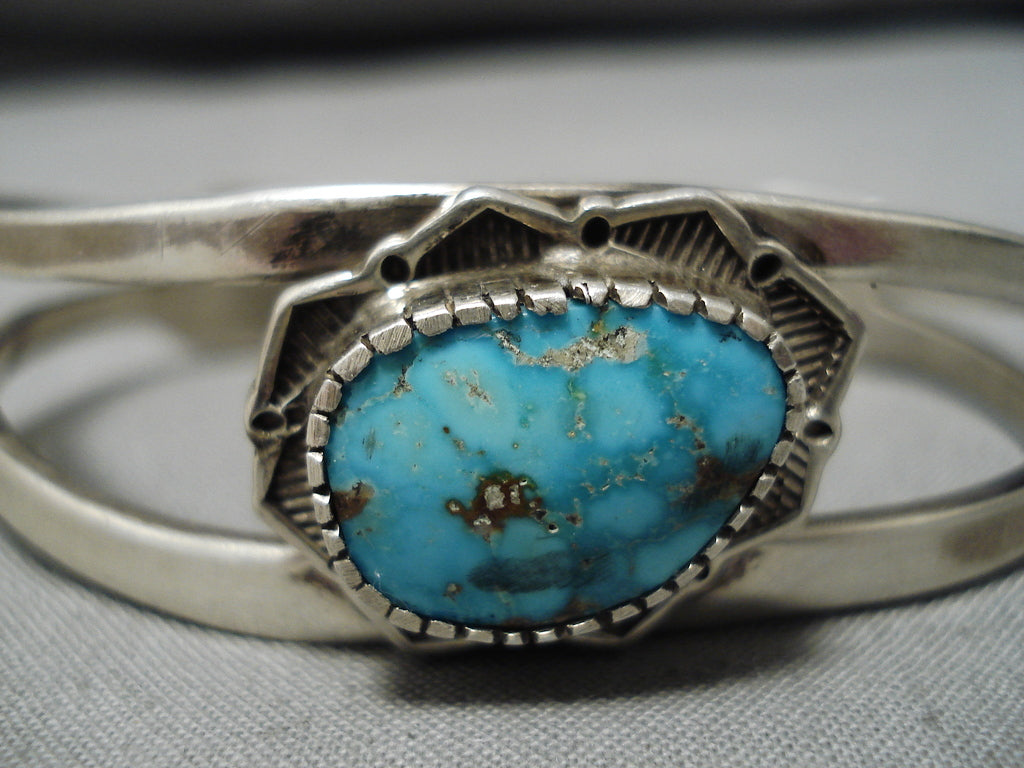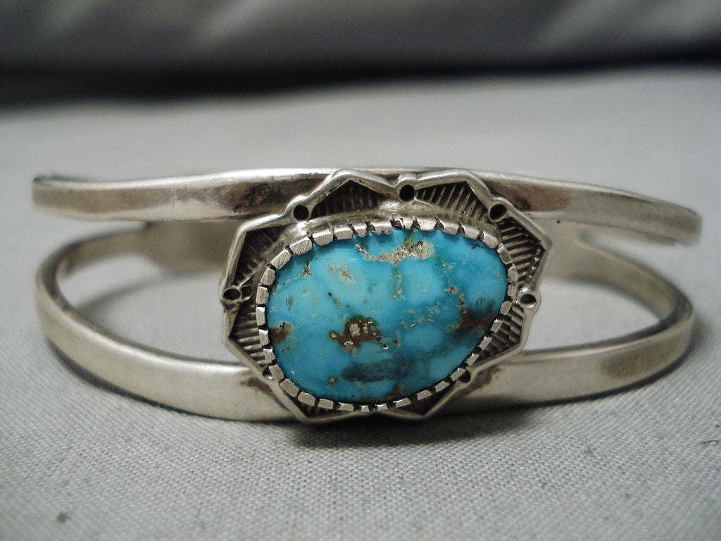Exceptional Vintage Native American Zuni Native Blue Gem Turquoise Sterling Silver Bracelet