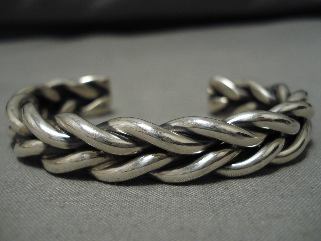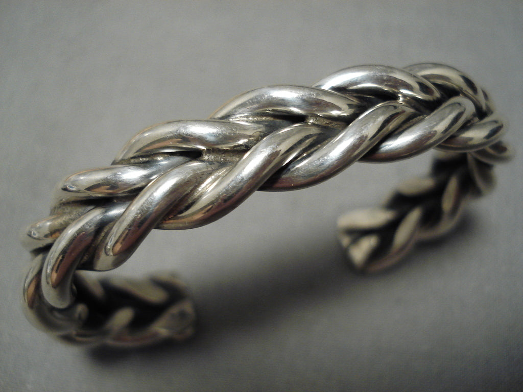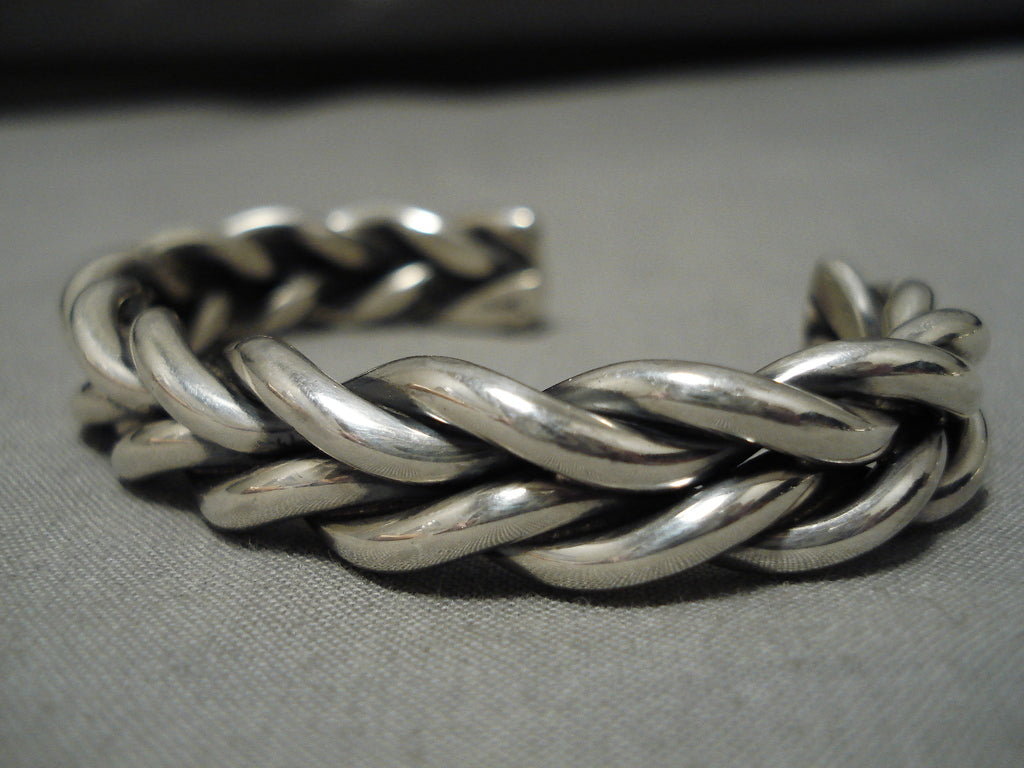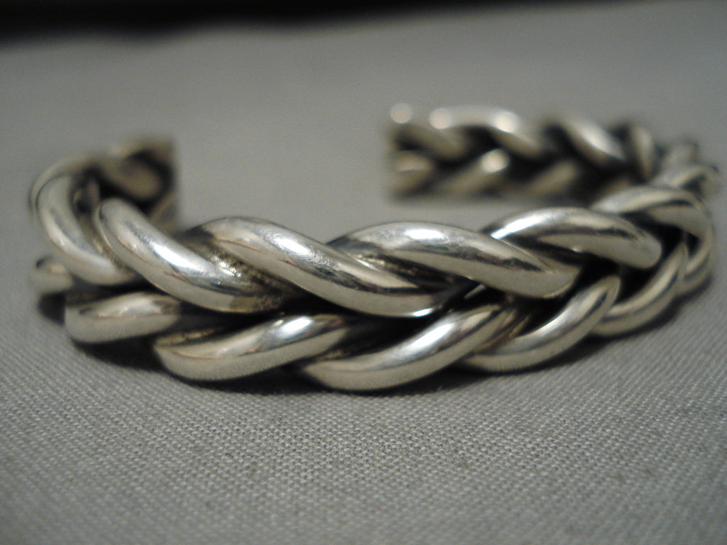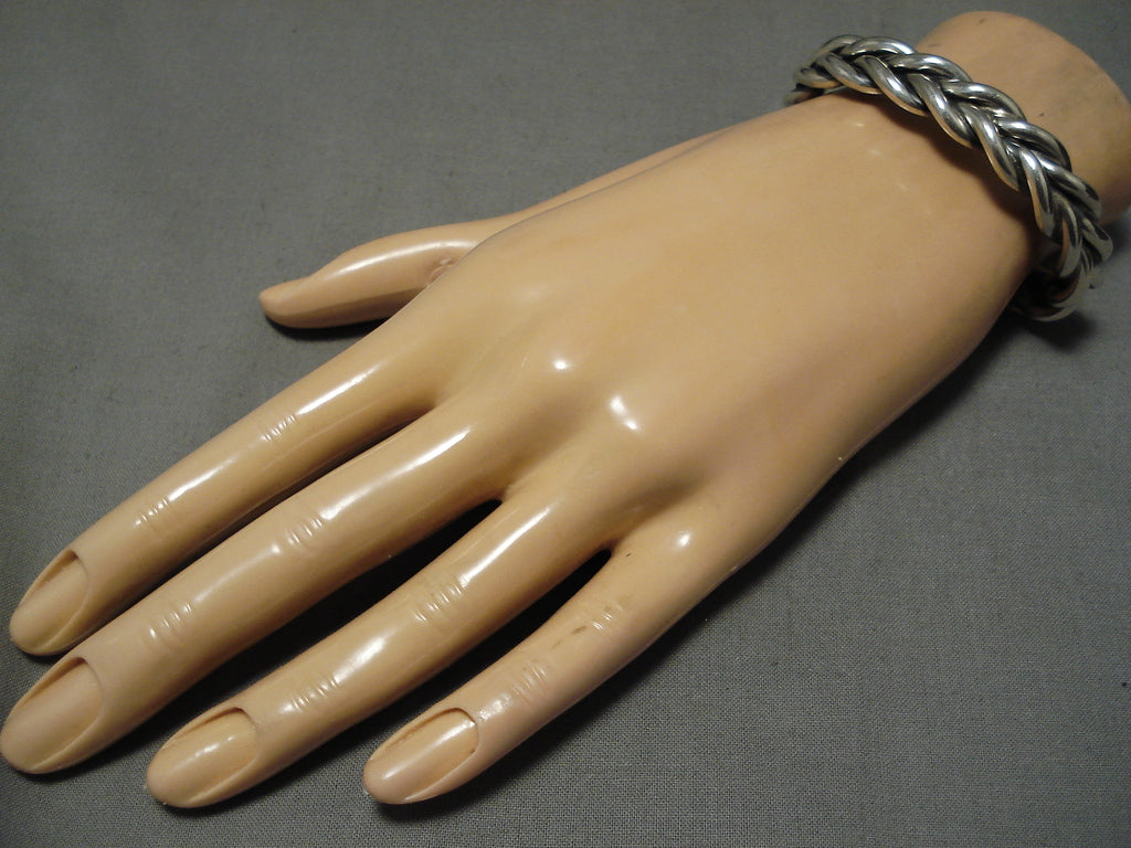 Exceptional Vintage Navajo Chain Heavy Sterling Silver Native American Bracelet