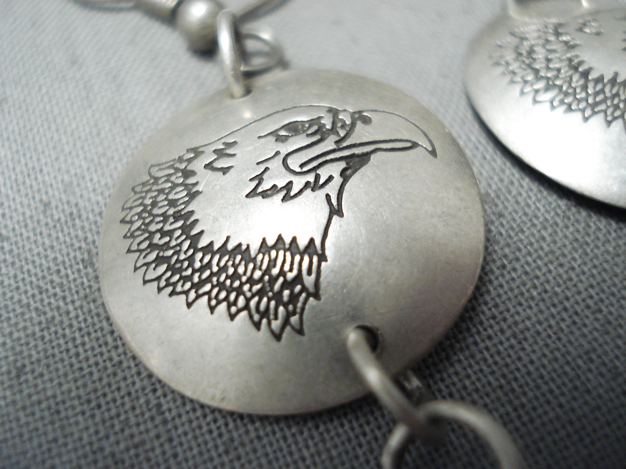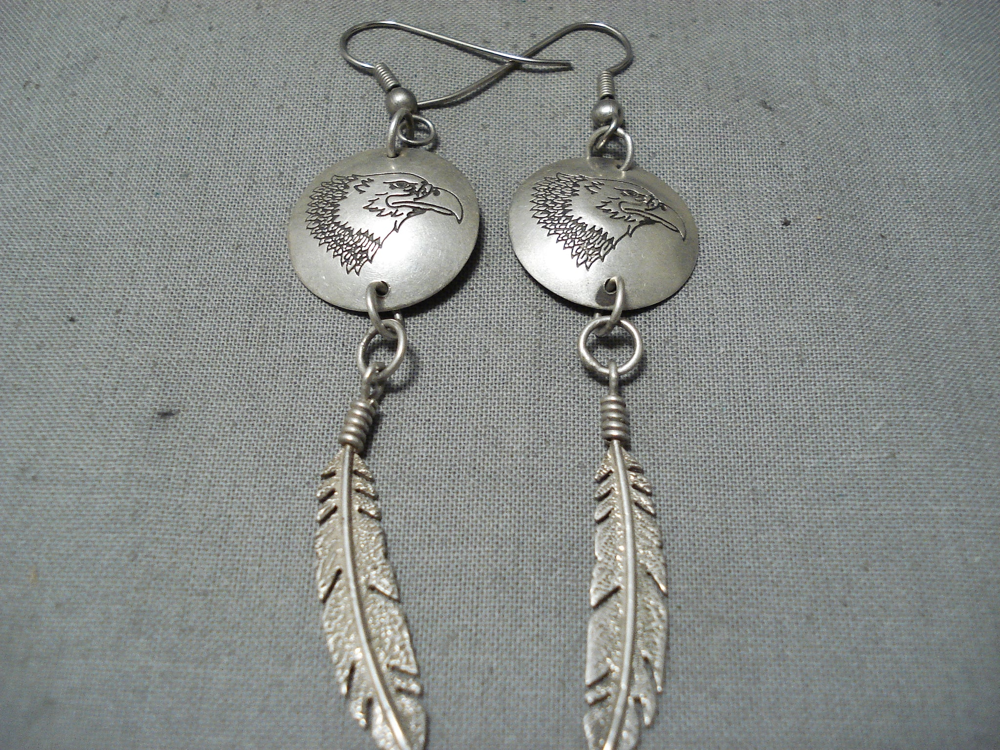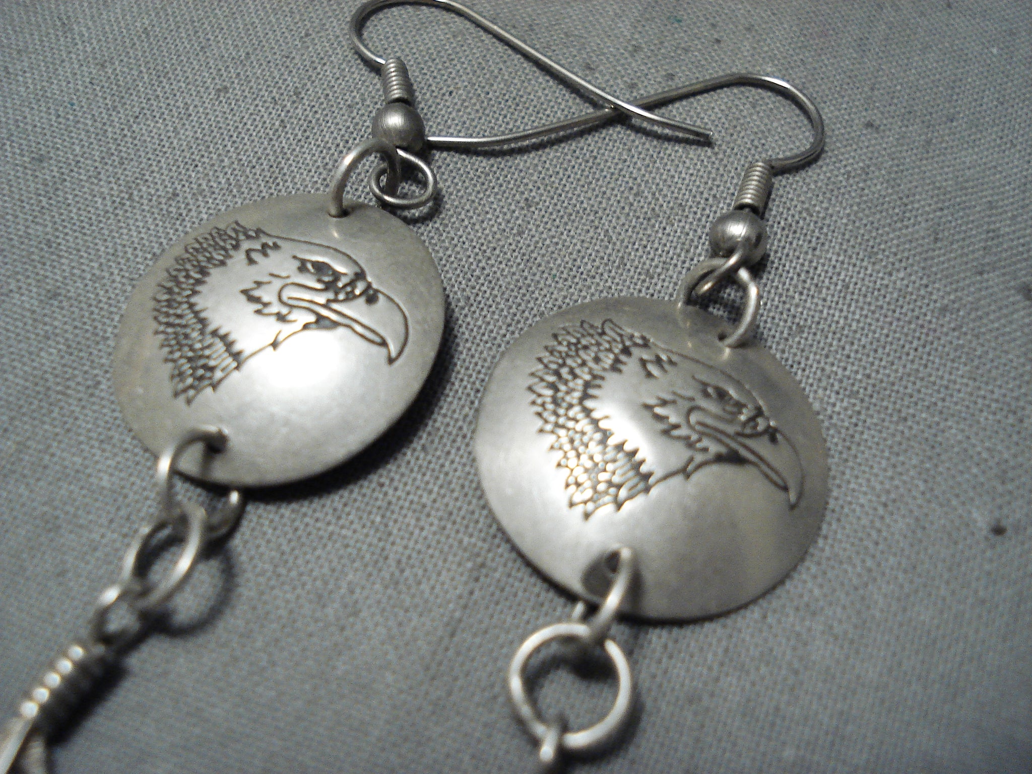 Exceptional Vintage Navajo Sterling Silver Eagle Earrings Old Native American