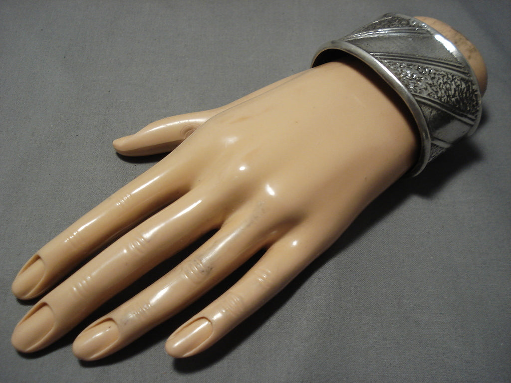 Exceptional Vintage Navajo Sterling Silver Native American Heavy Bracelet