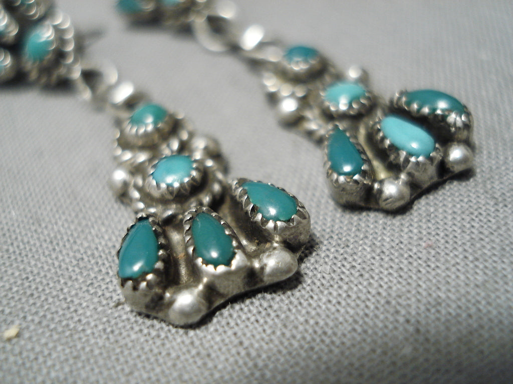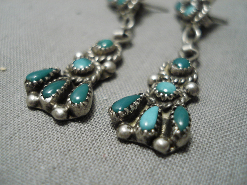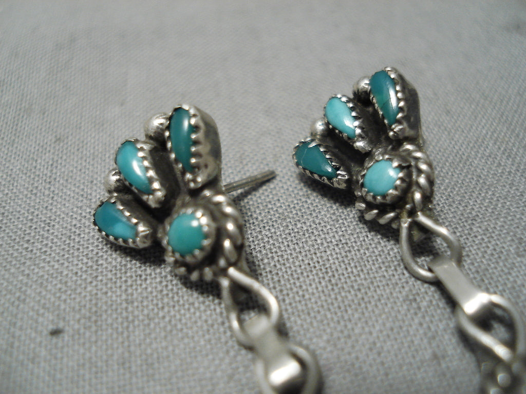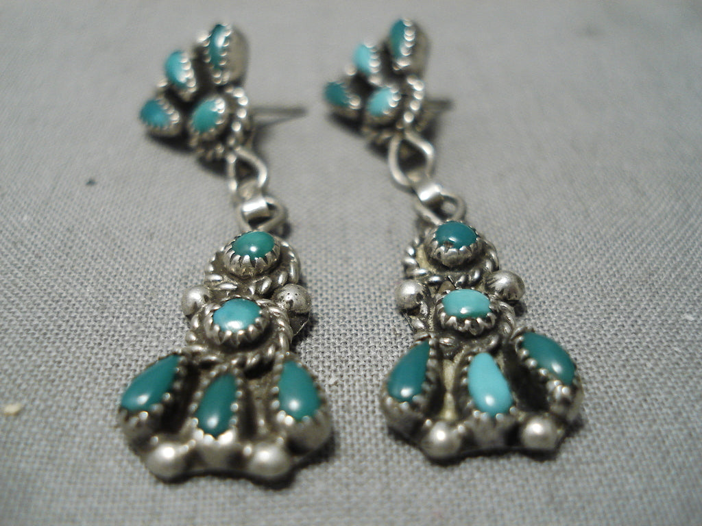 Exceptional Vintage Zuni Native American Turquoise Sterling Silver Earrings Old
