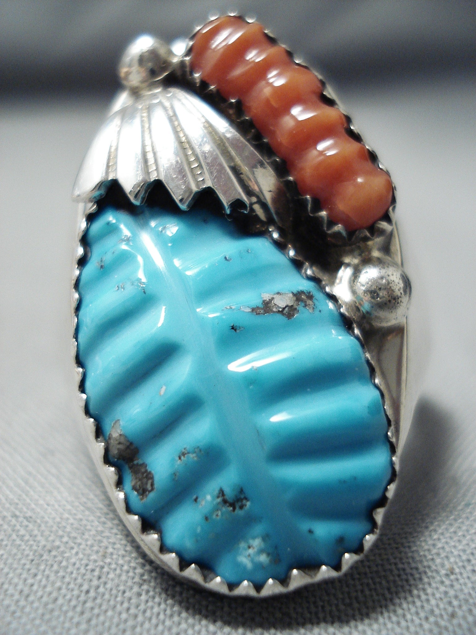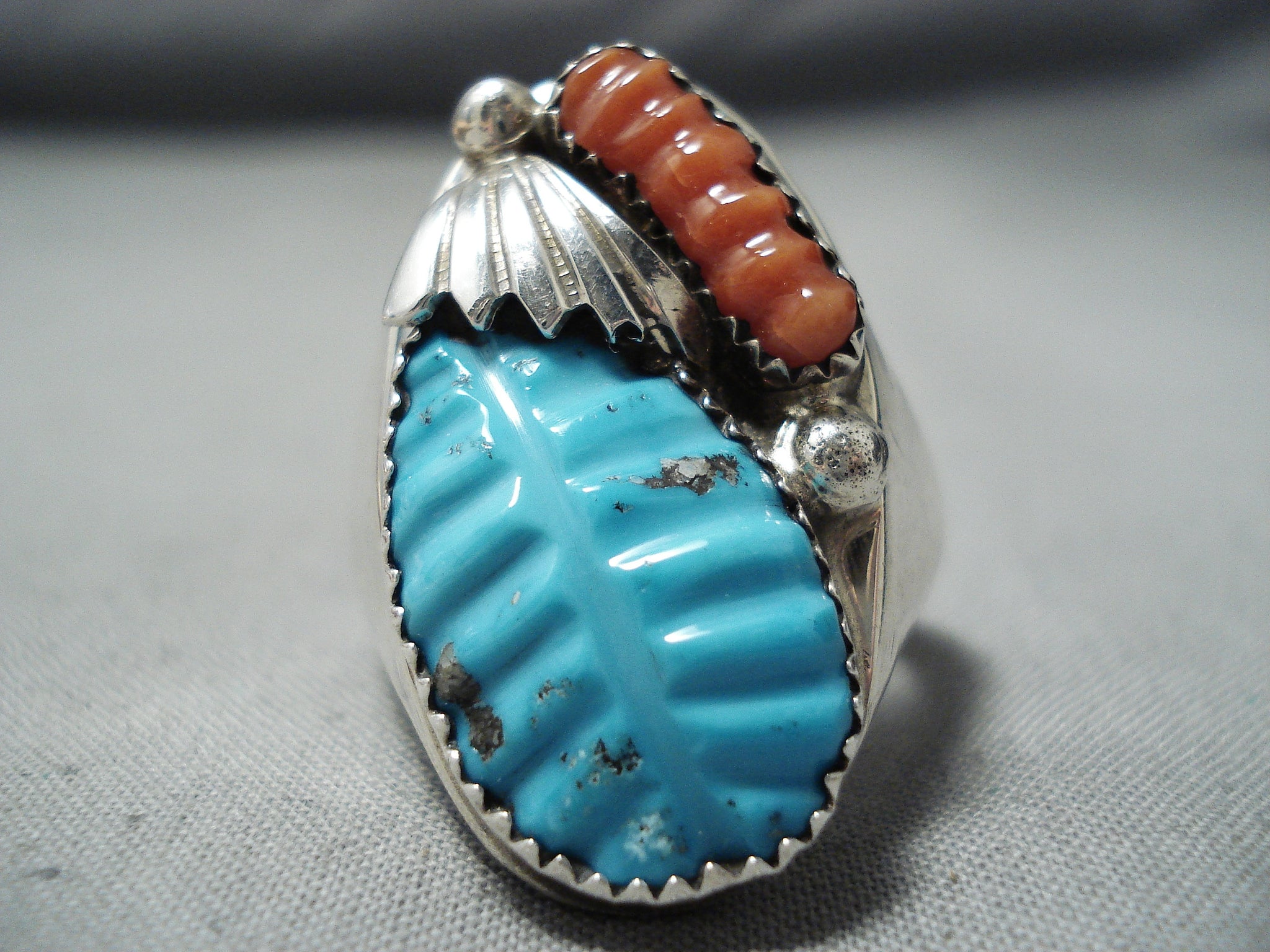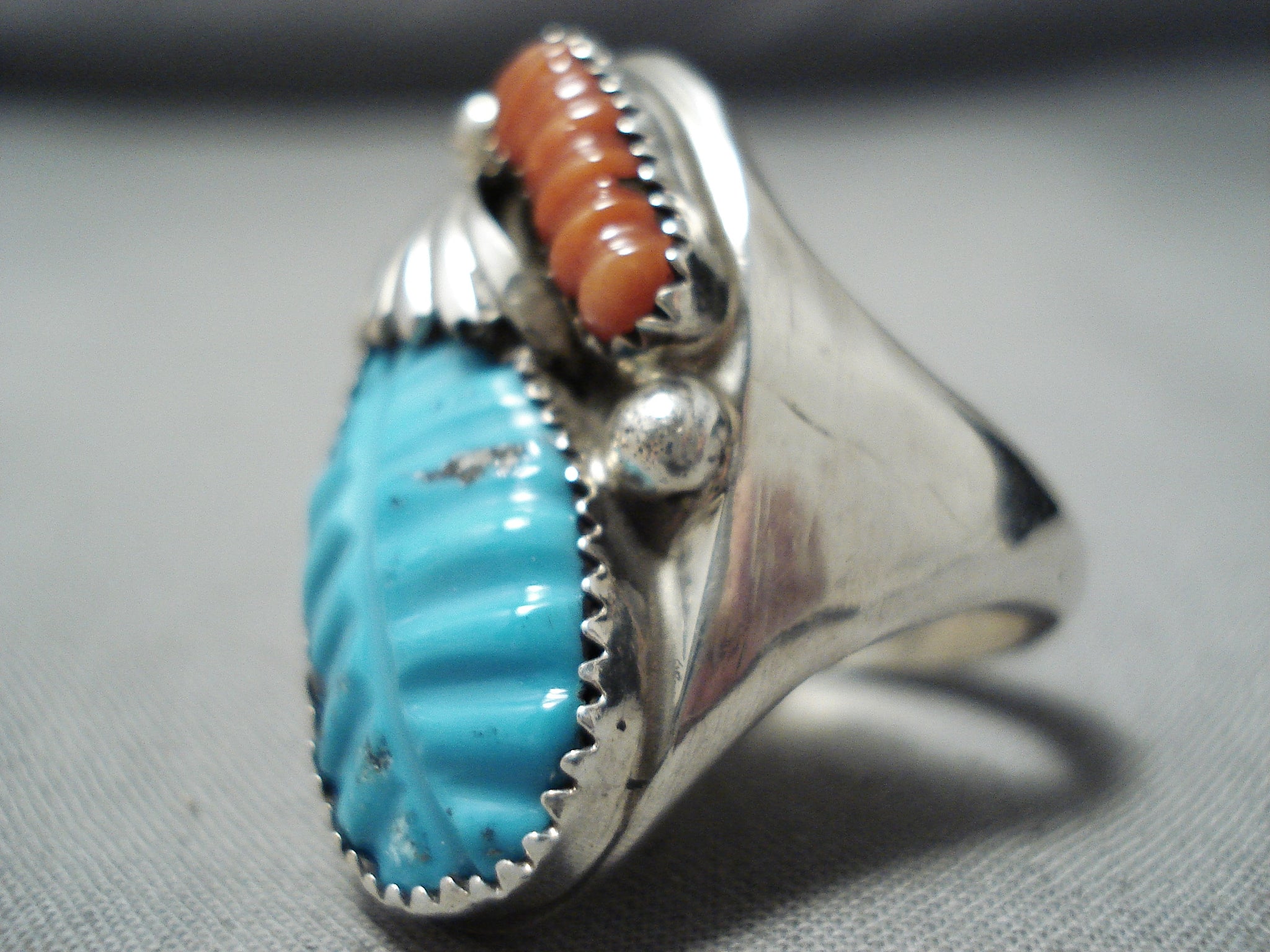 Exceptional Zuni Turquoise Coral Sterling Silver Ring Native American