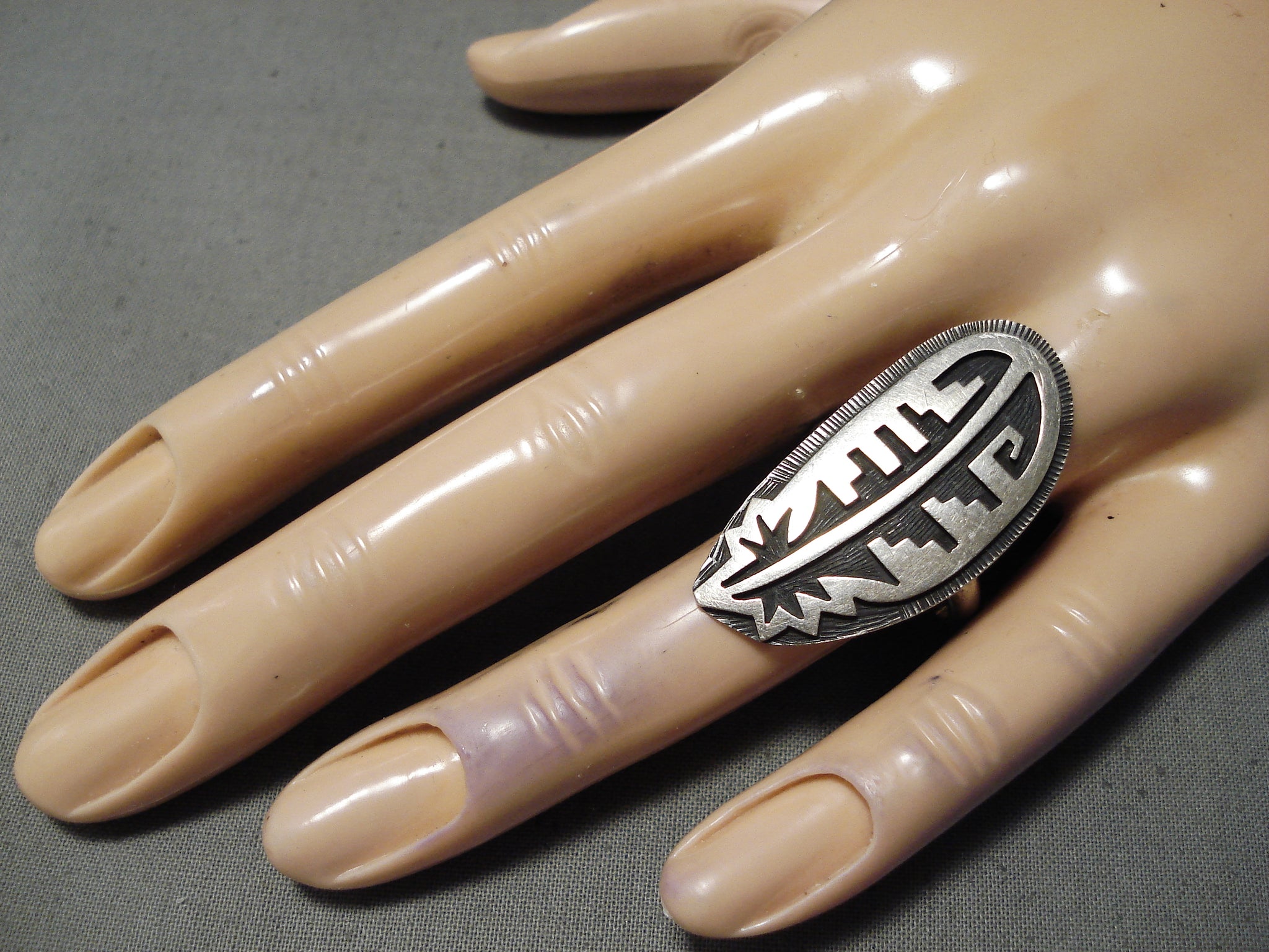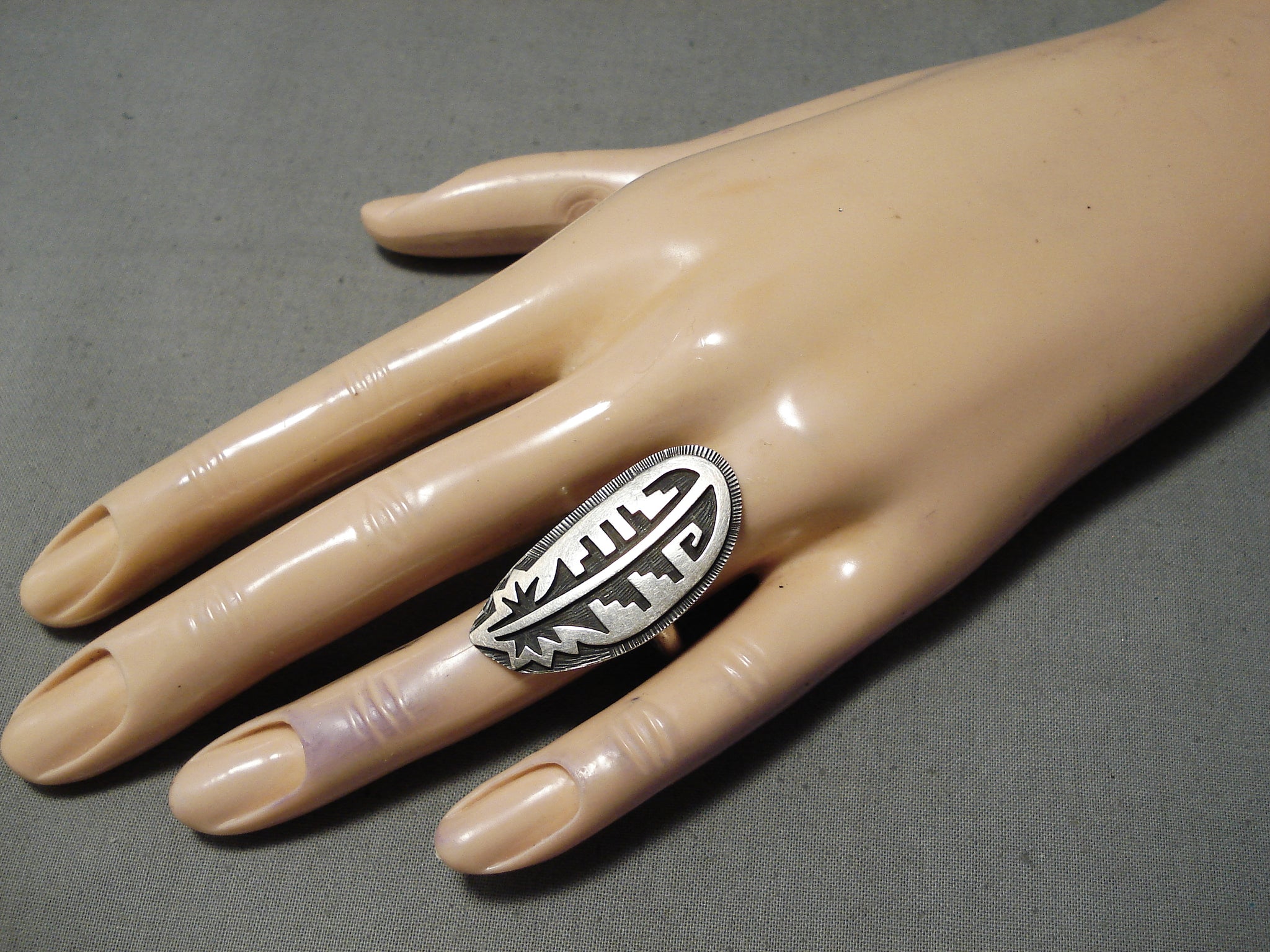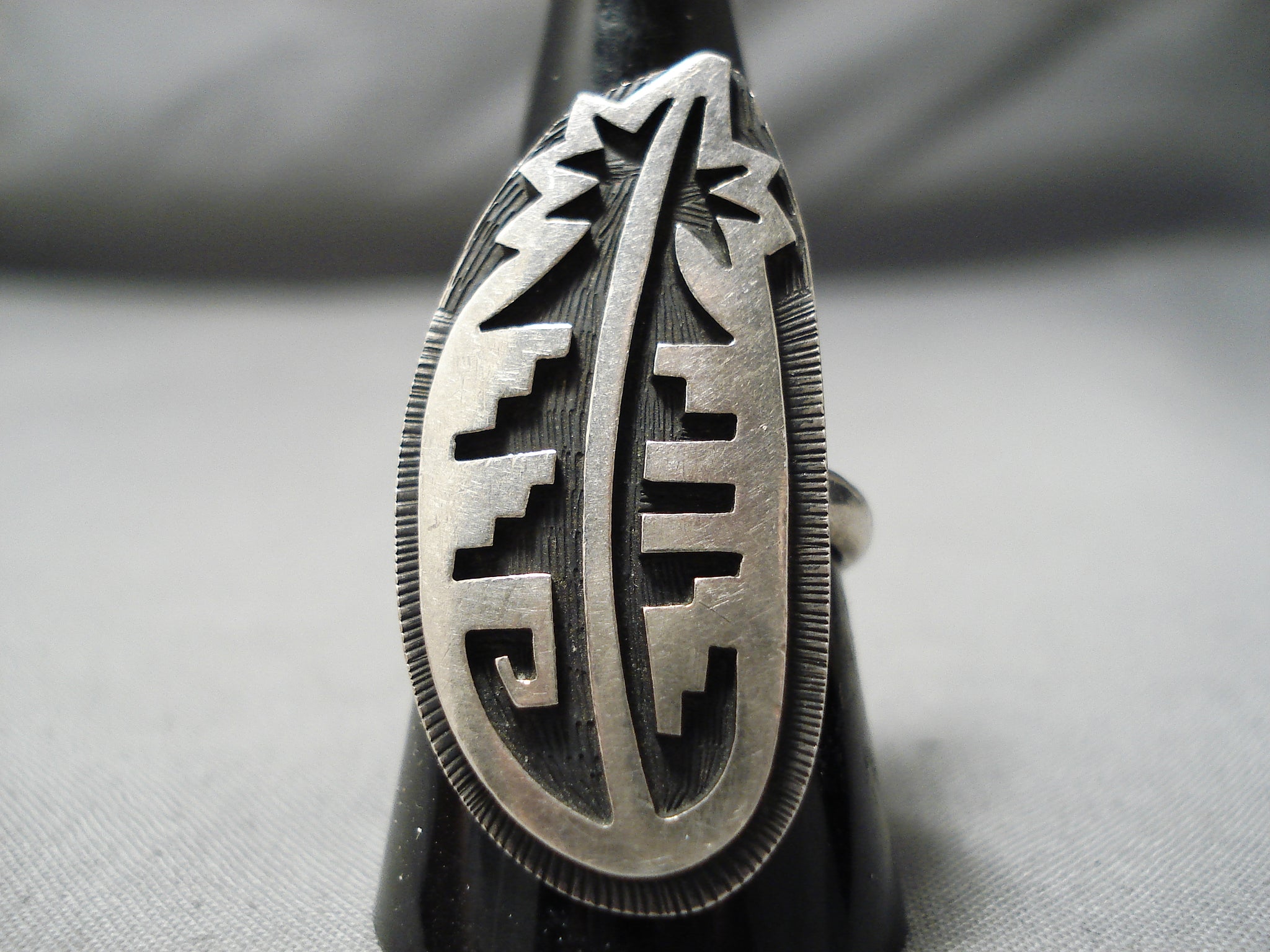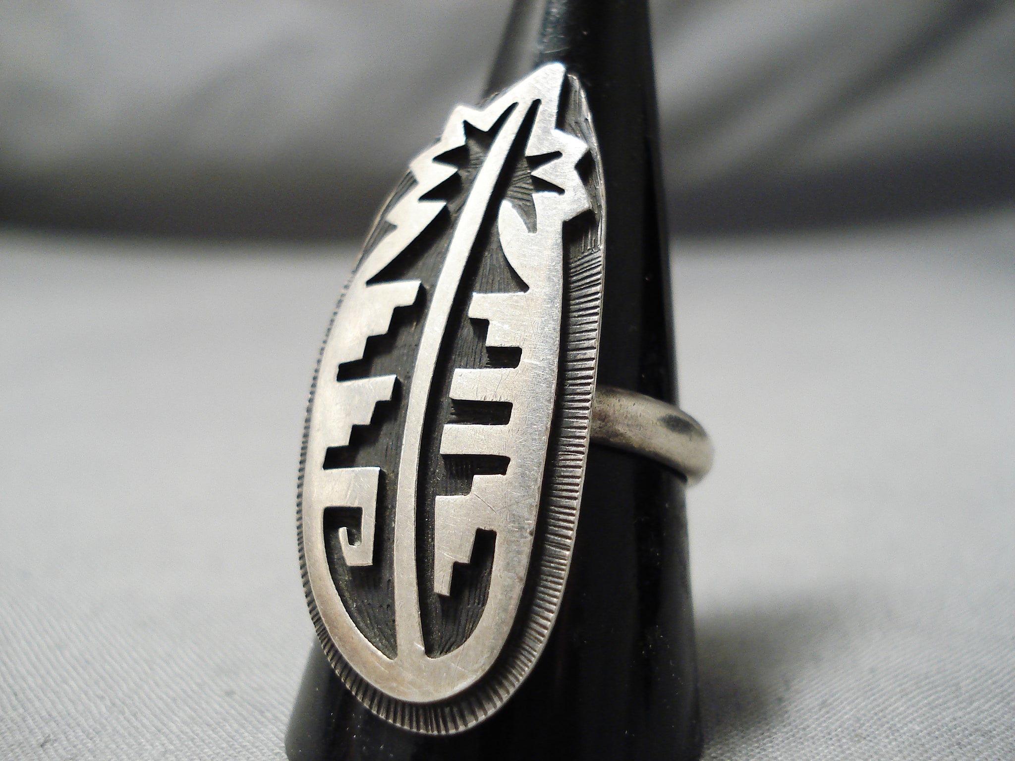 Exceptionally Detailed Vintage Native American Hopi Sterling Silver Geomtric Ring Old