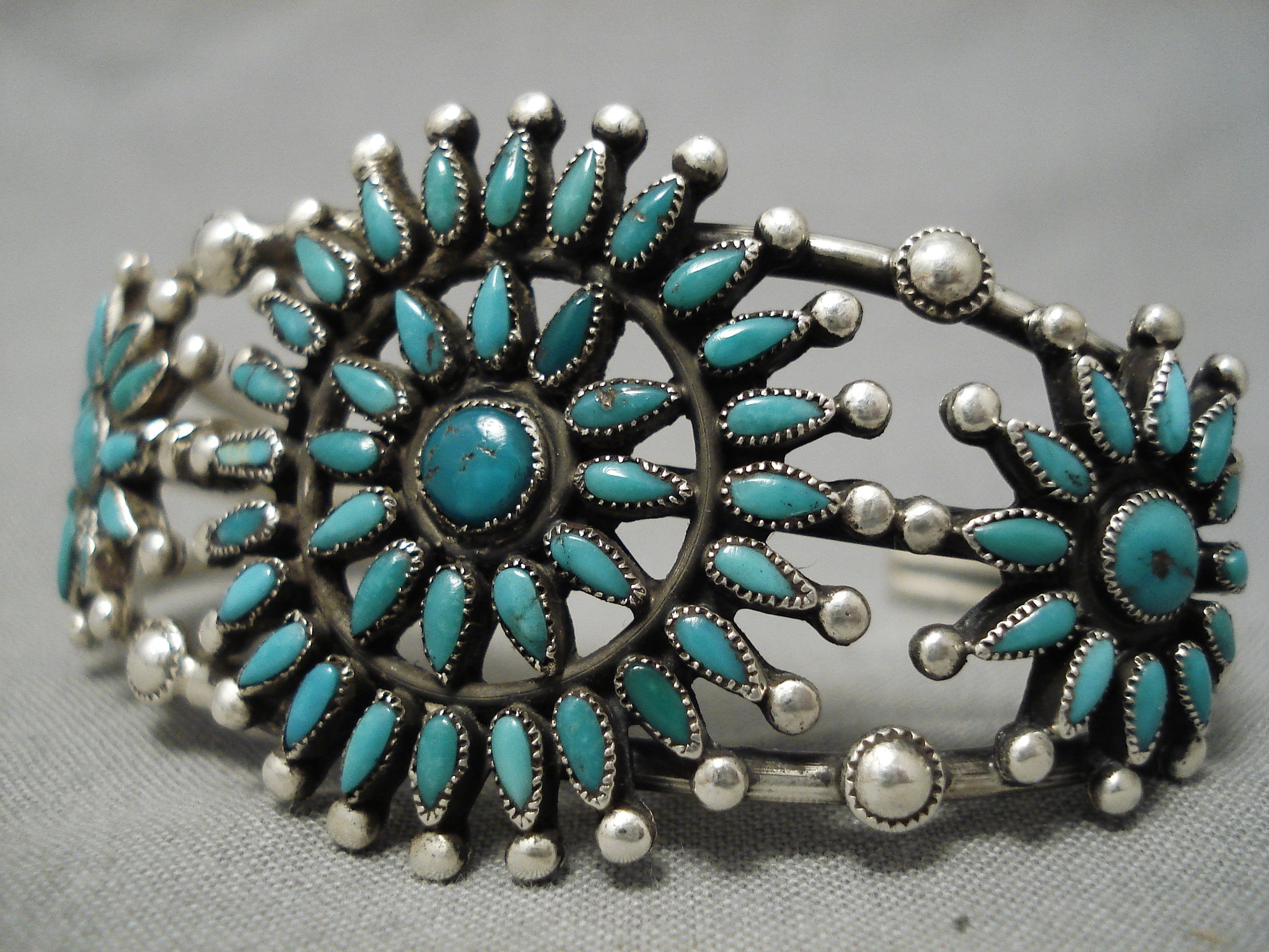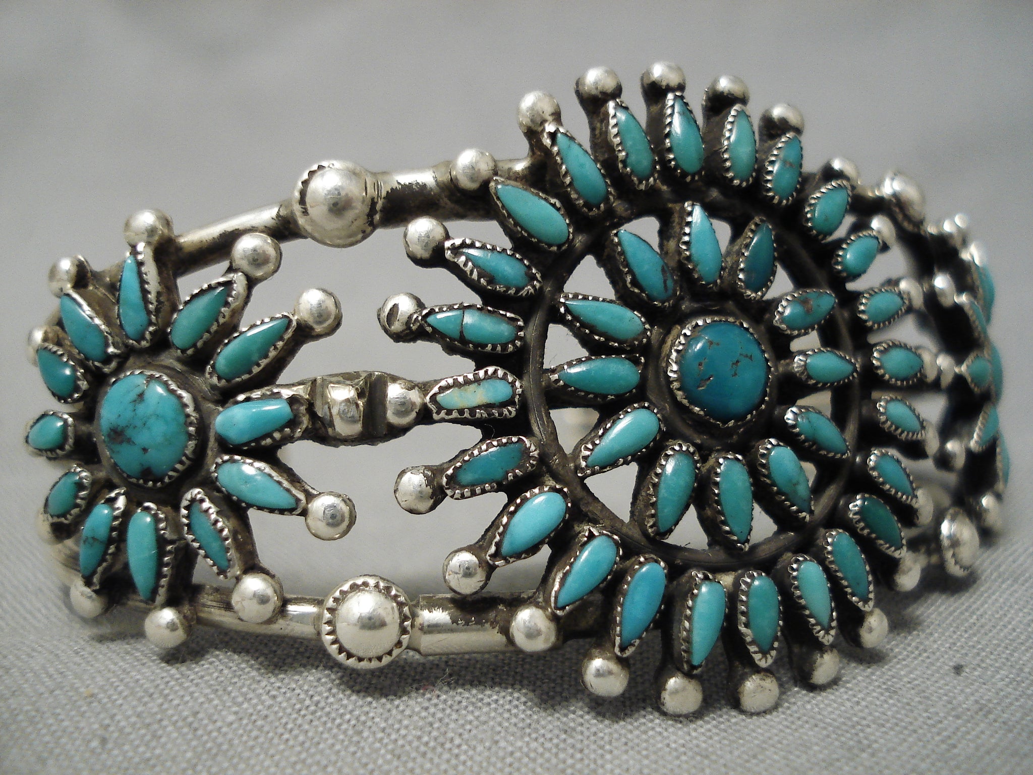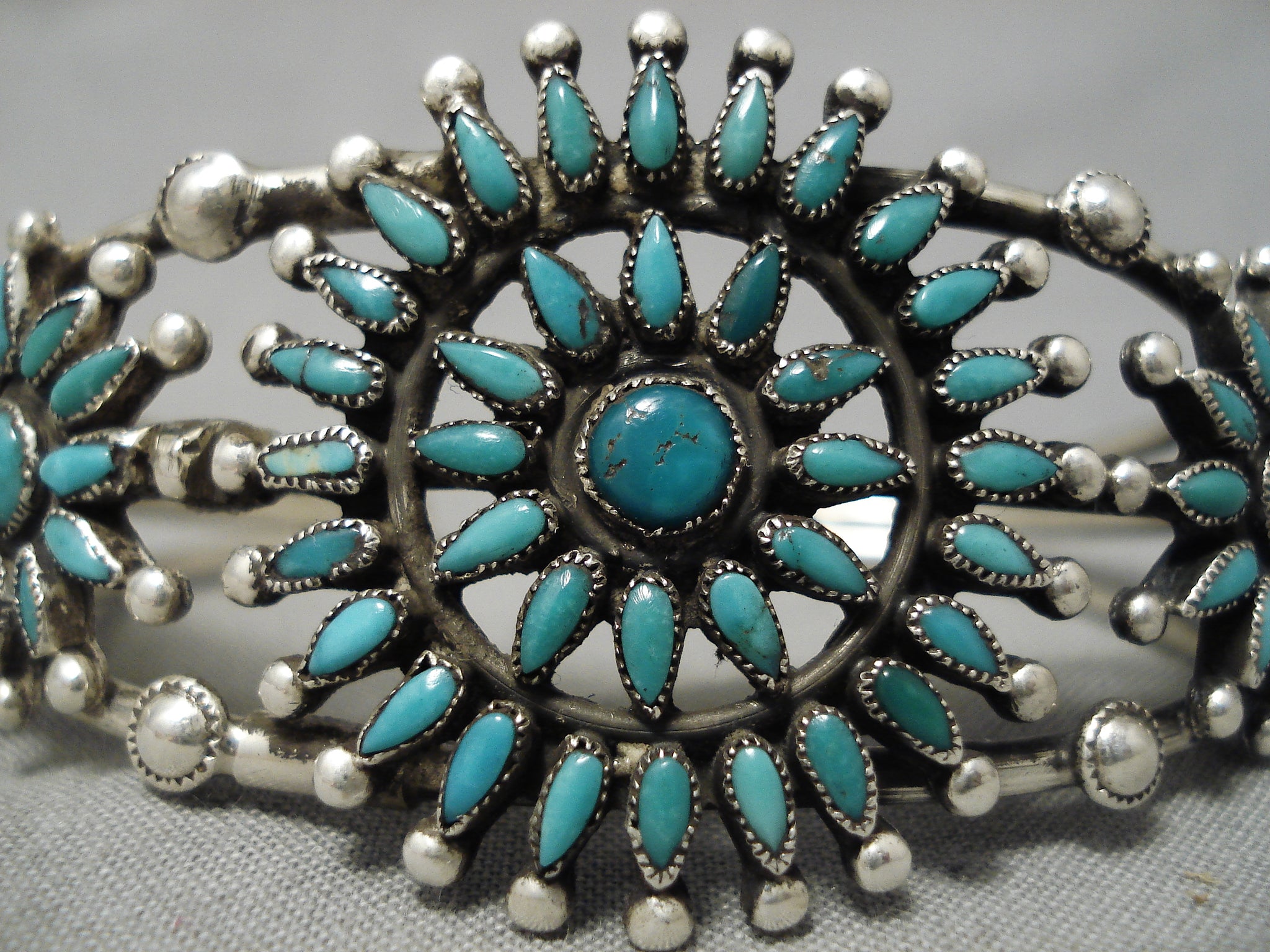 Exceptionally Rare 1930's Vintage Native American Zuni Turquoise Sterling Silver Bracelet