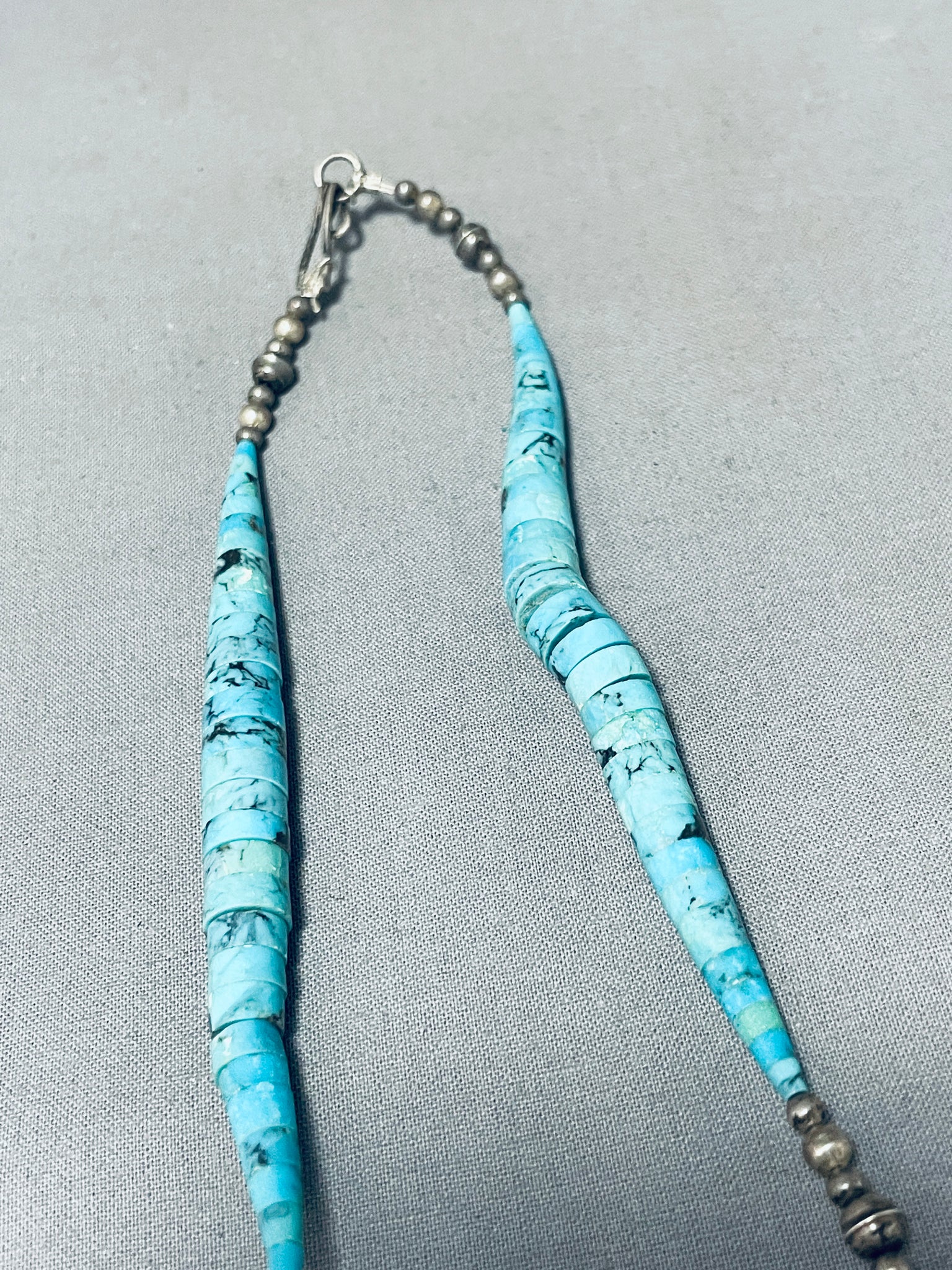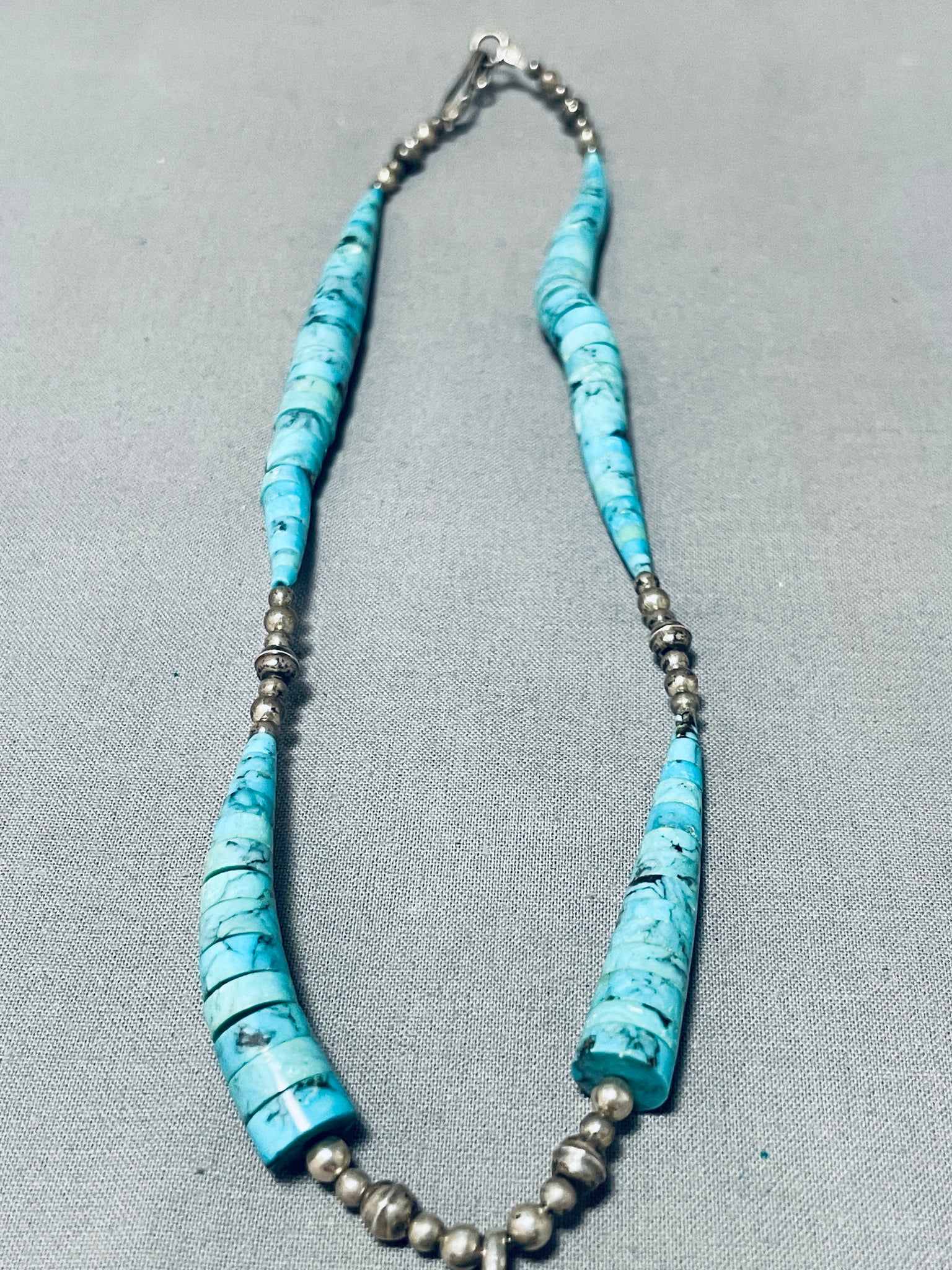 Exotic Turquoise Vintage Native American Navajo Sterling Silver Necklace Old