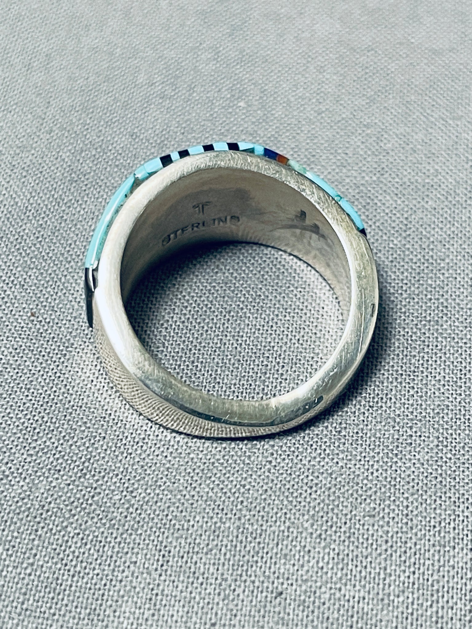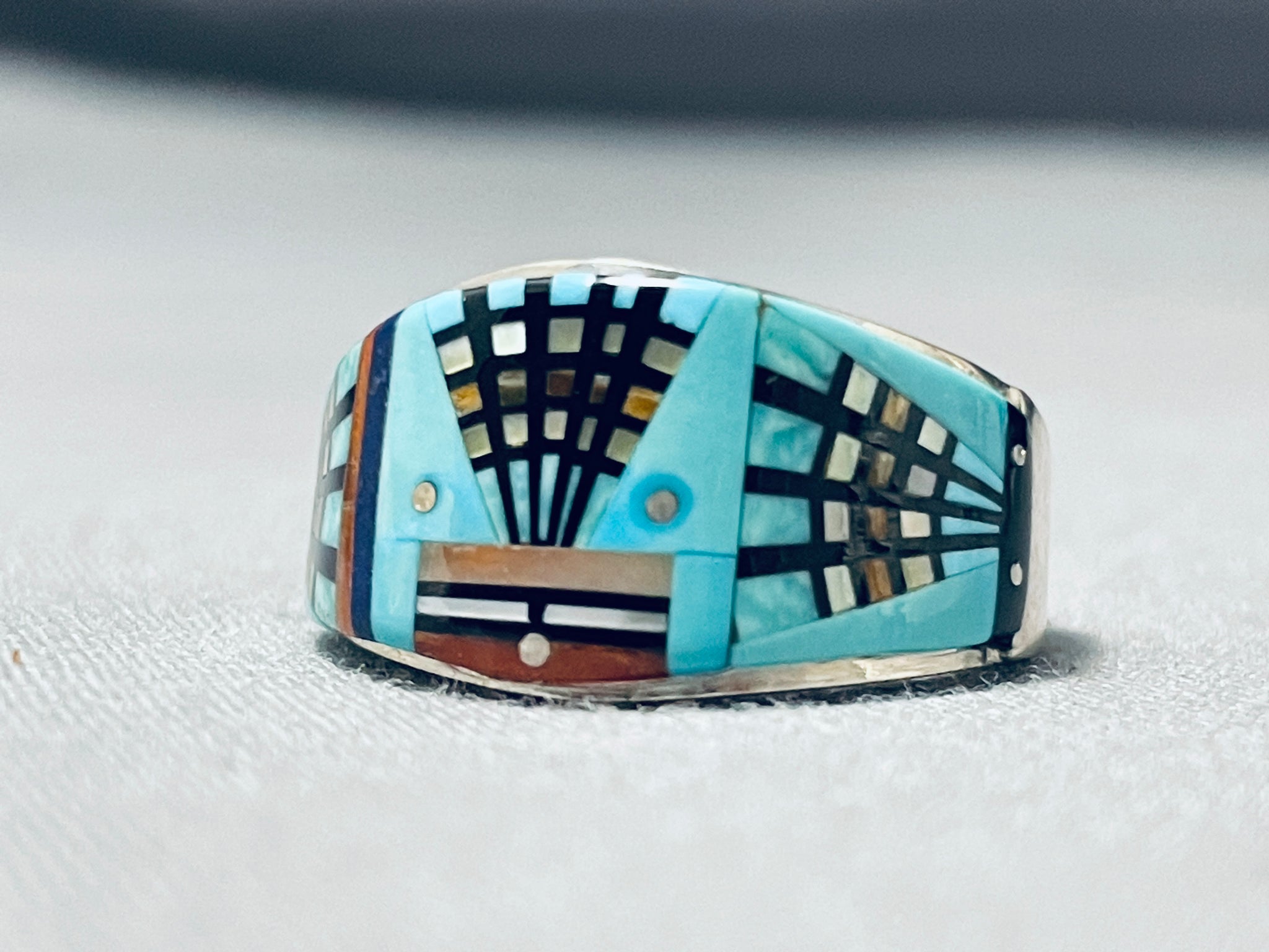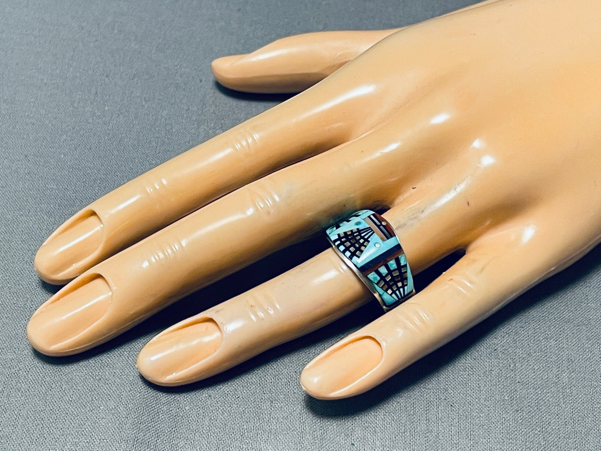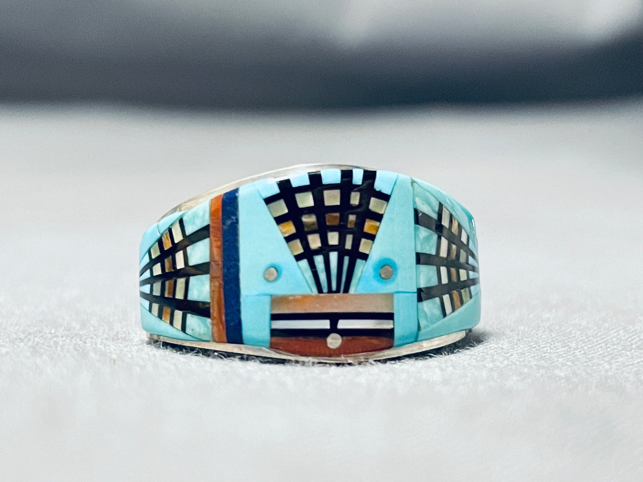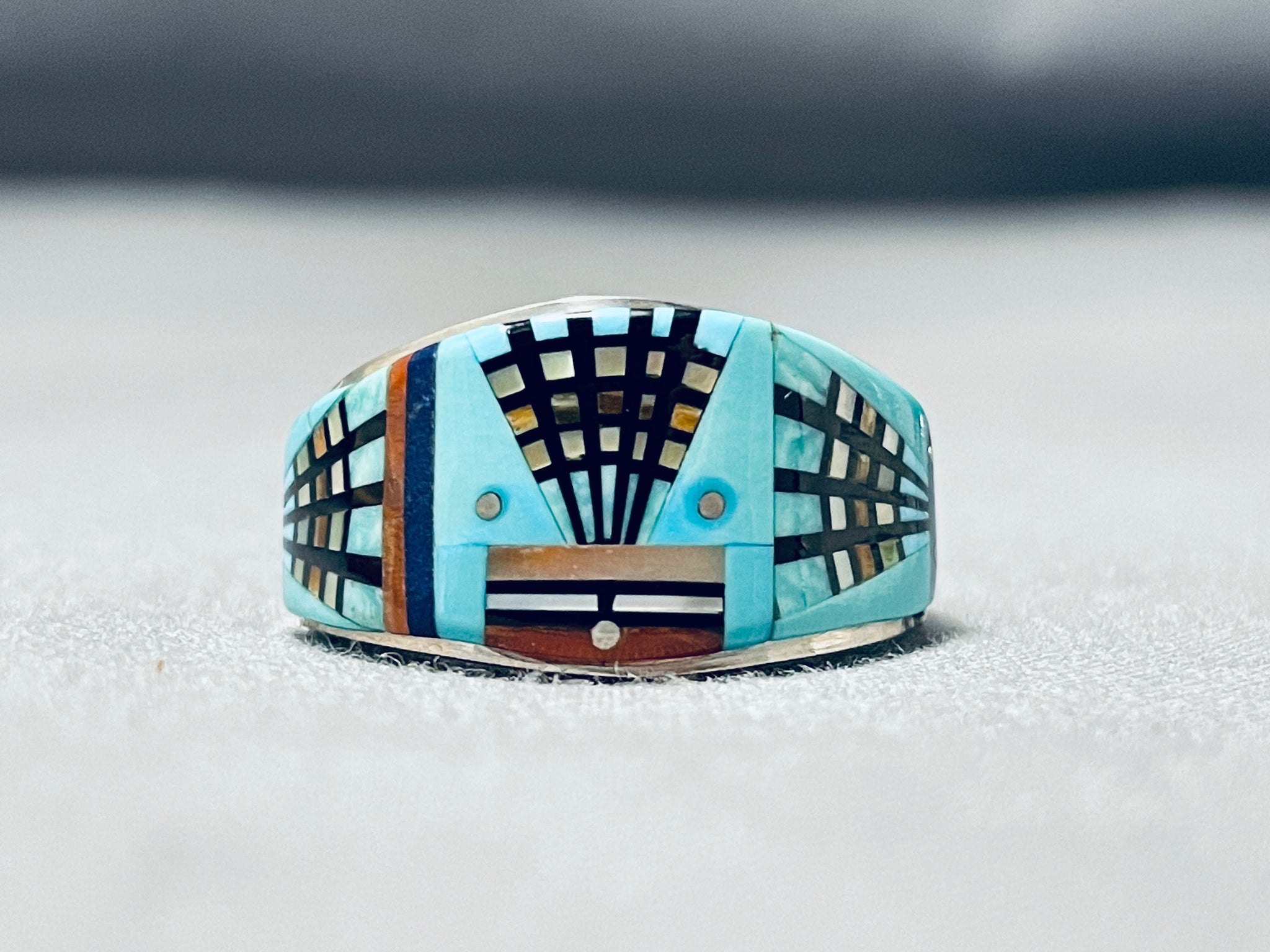 Expert Detailed Native American Navajo Turquoise Kachina Sterling Silver Ring