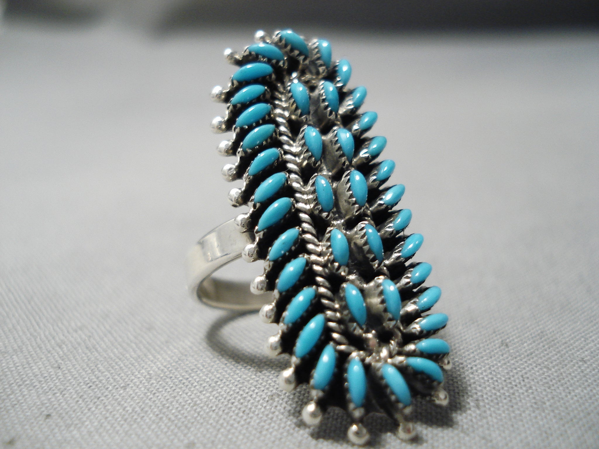 Expert Turquoise Work Vintage Zuni Native American Sterling Silver Ring