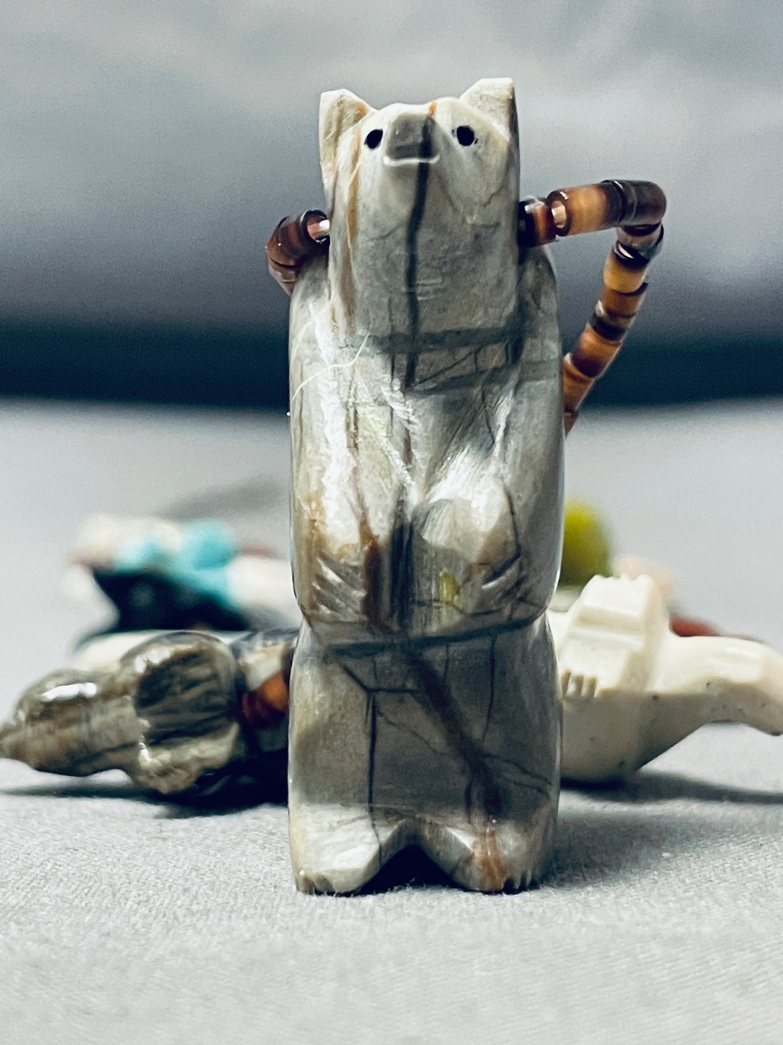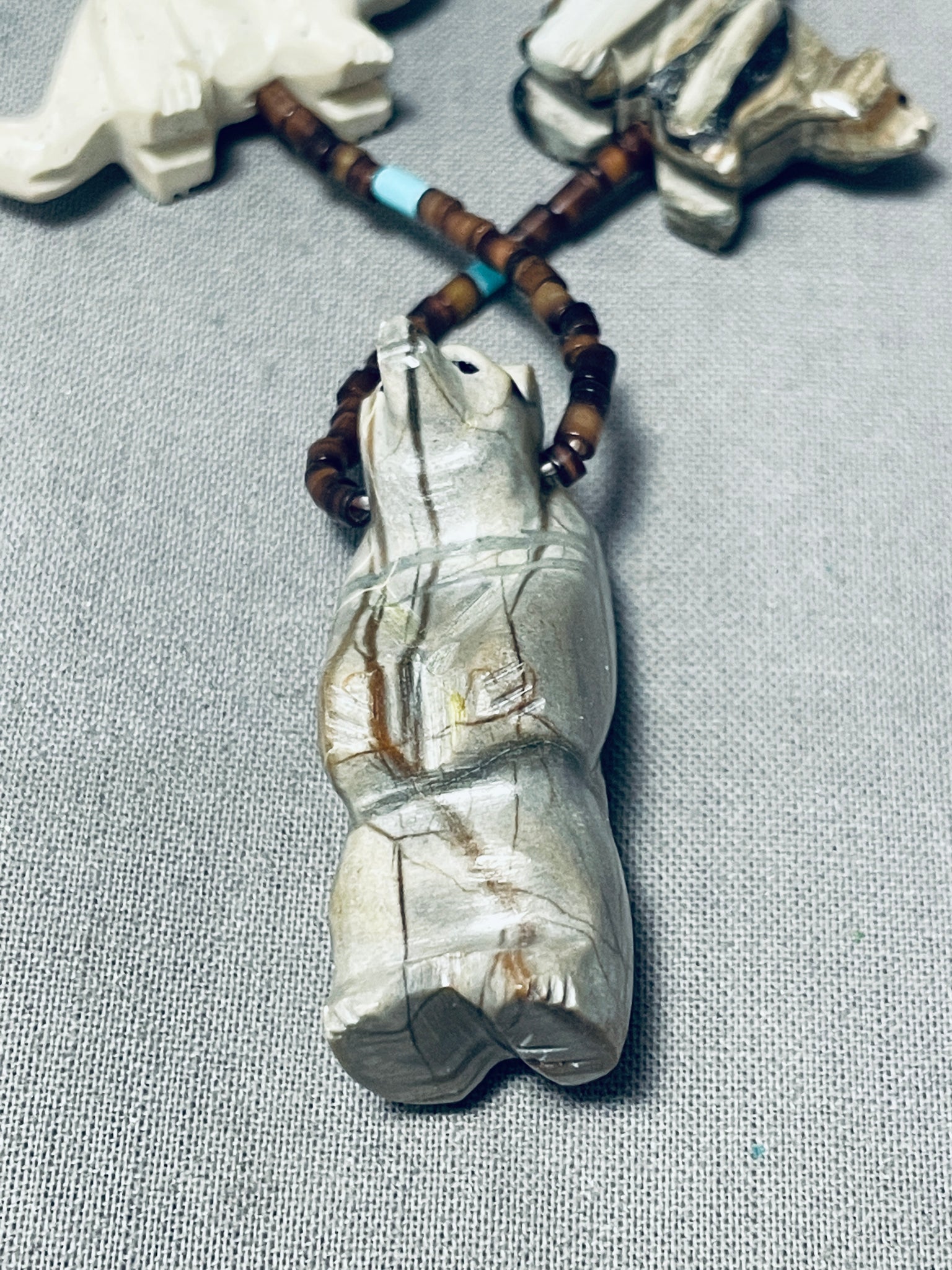 Expressive Grizzly Native American Navajo Turquoise Sterling Silver Necklace