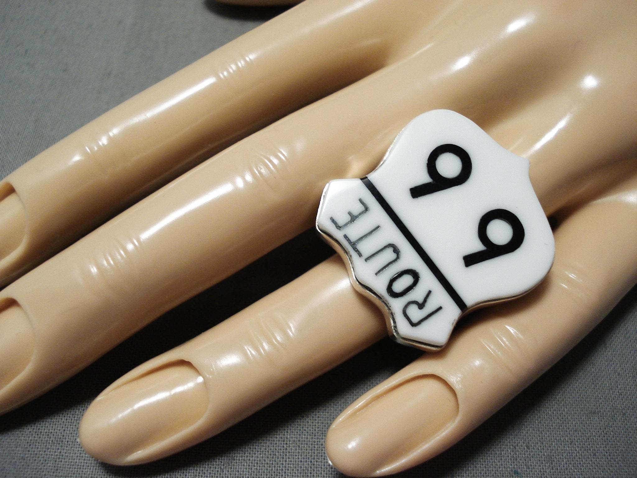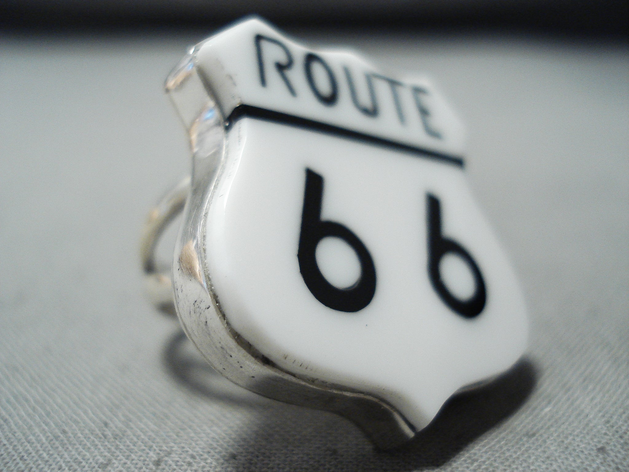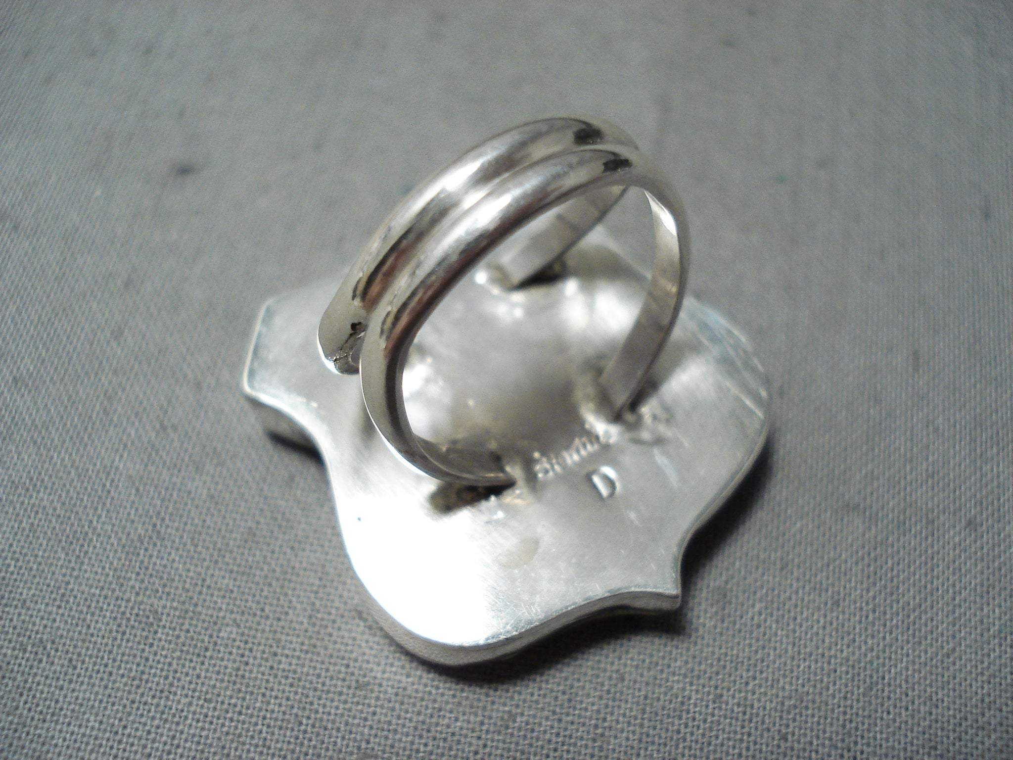 Expressive Navajo Jet Sterling Silver Route. 66 Ring Native American