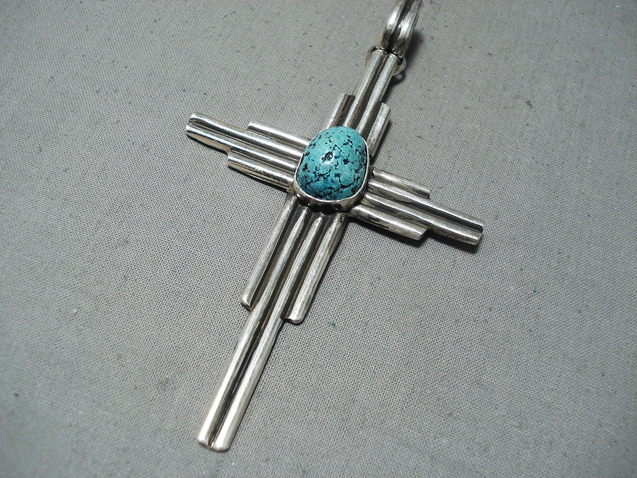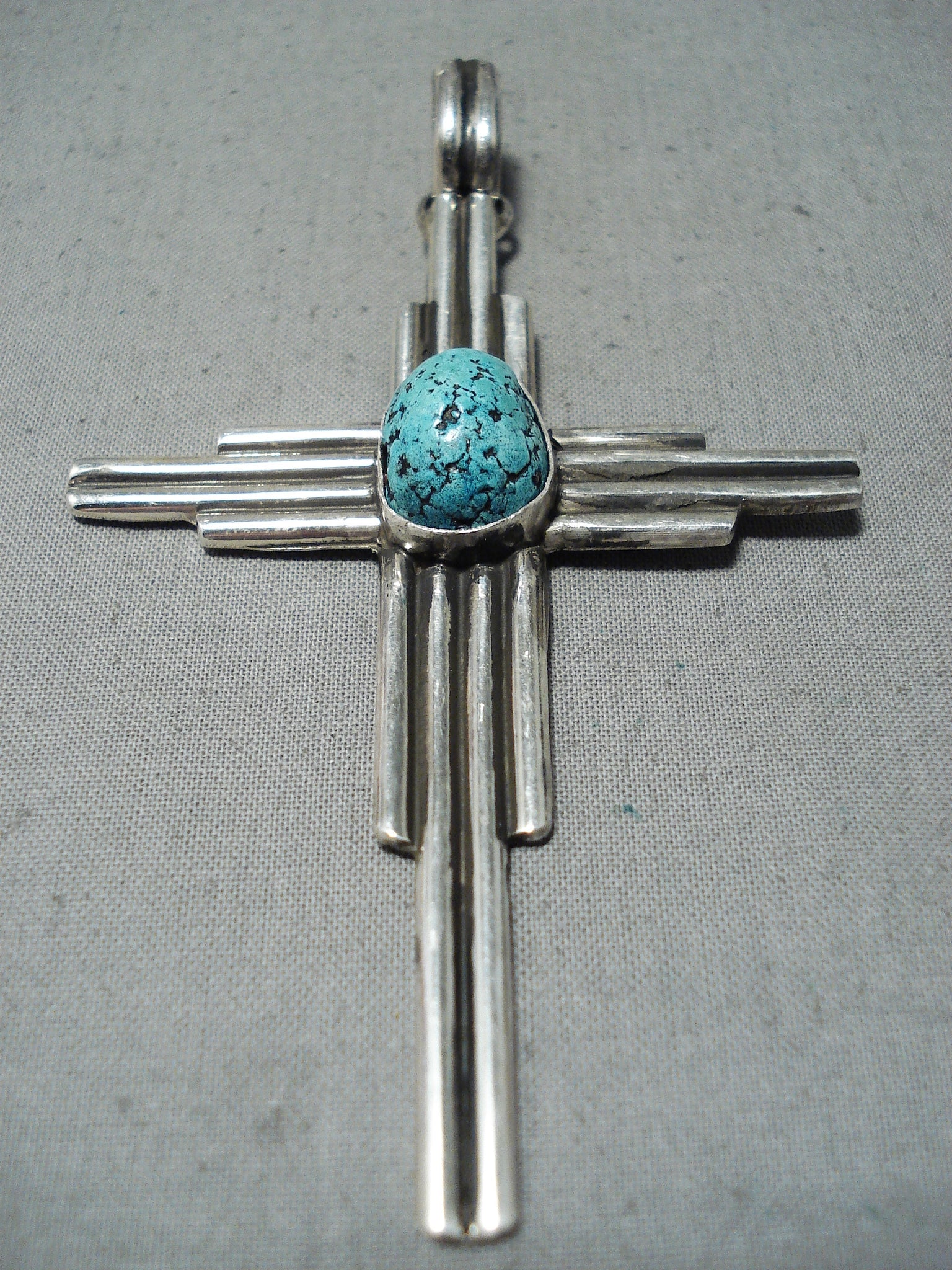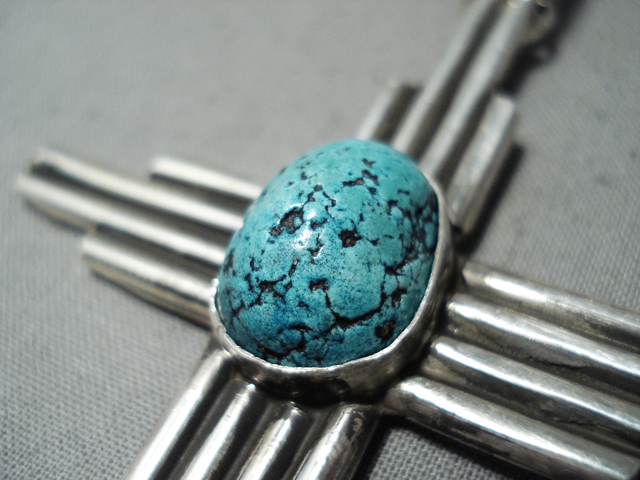 Expressive Navajo Turquoise Sterling Silver Cross Pendant Native American