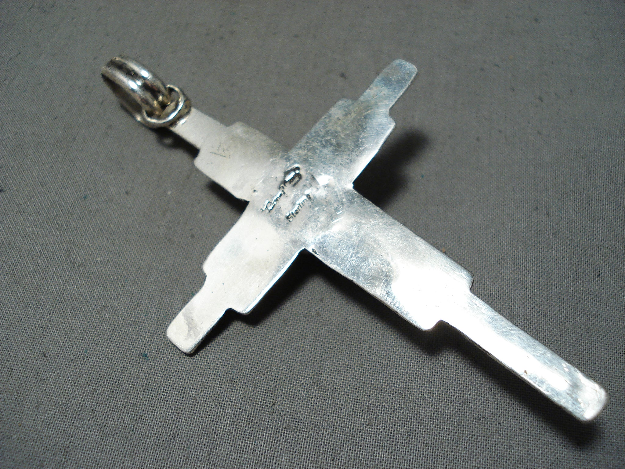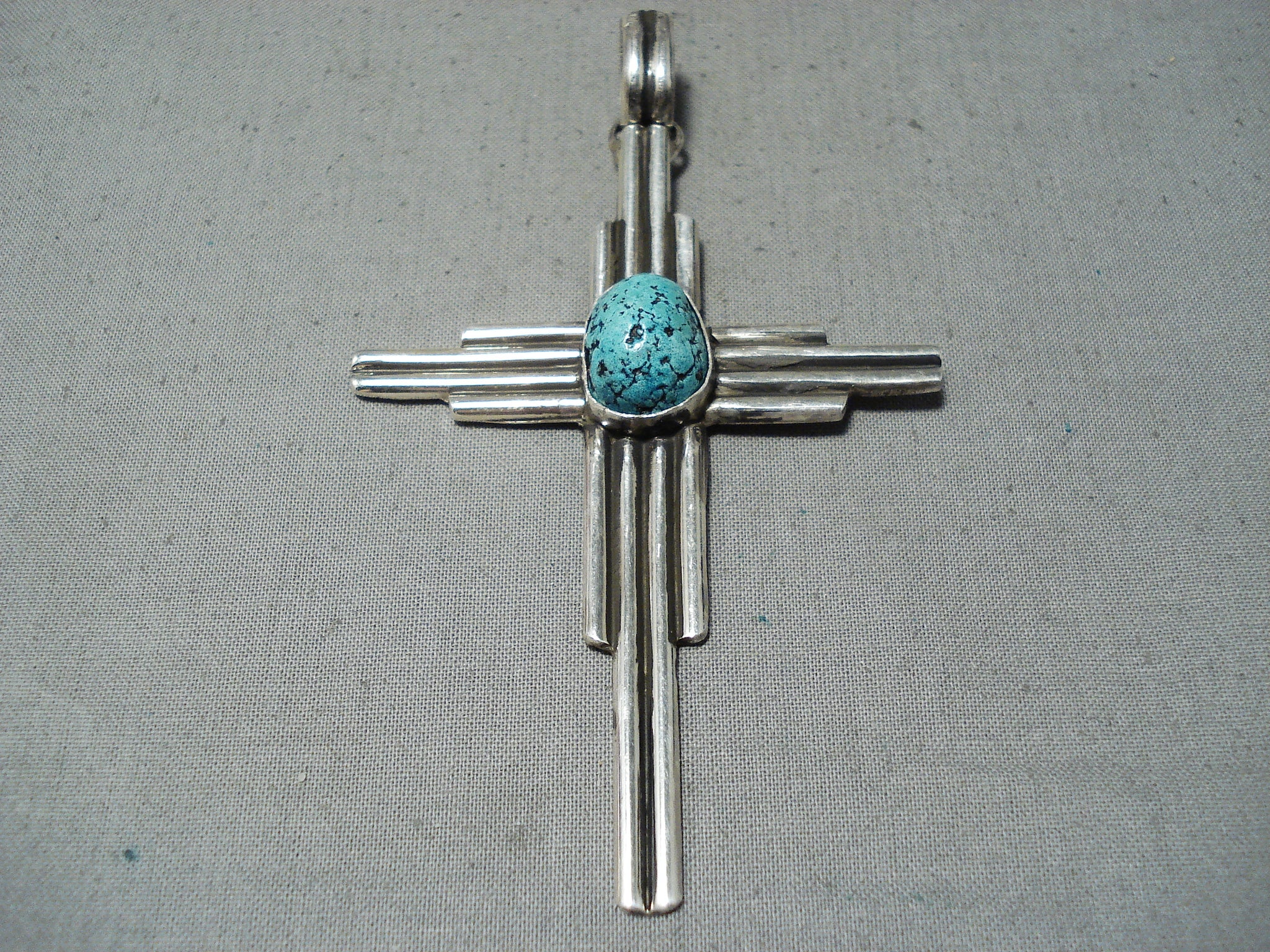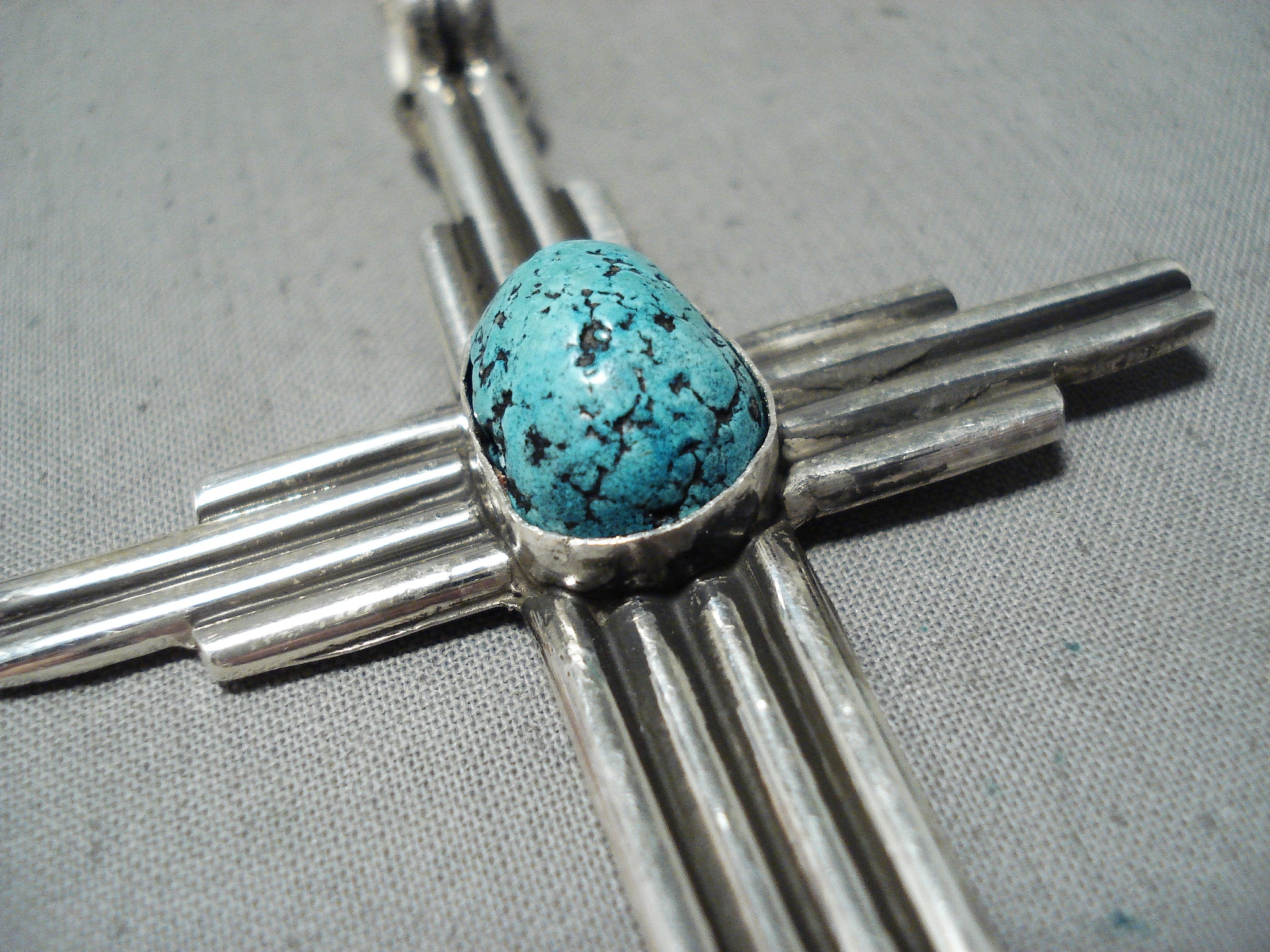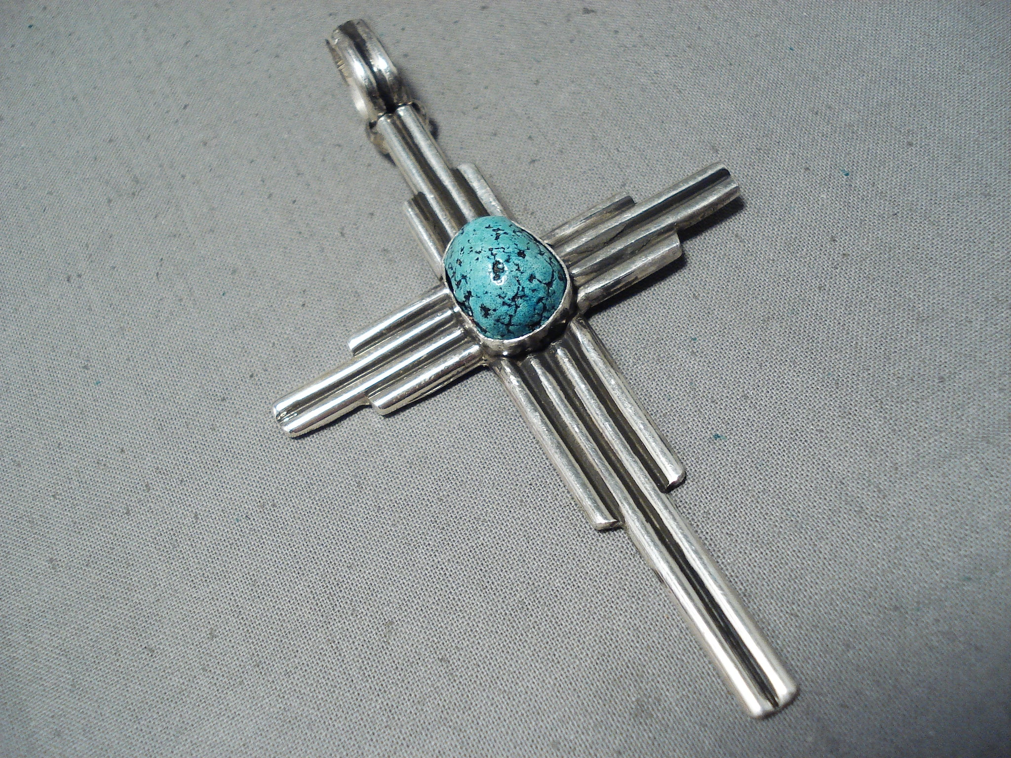 Expressive Navajo Turquoise Sterling Silver Cross Pendant Native American